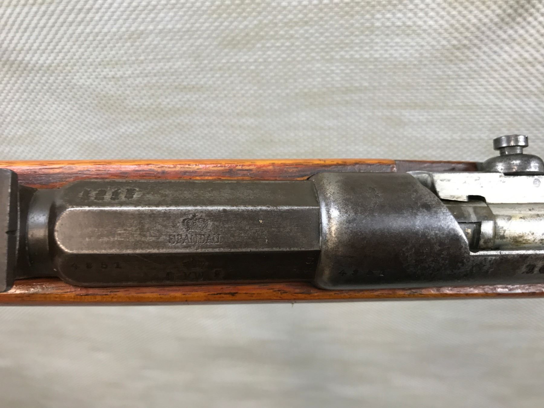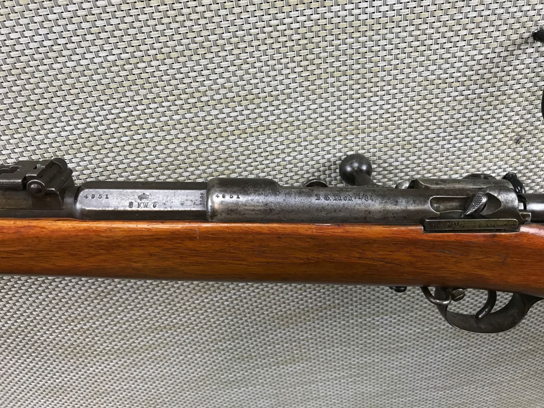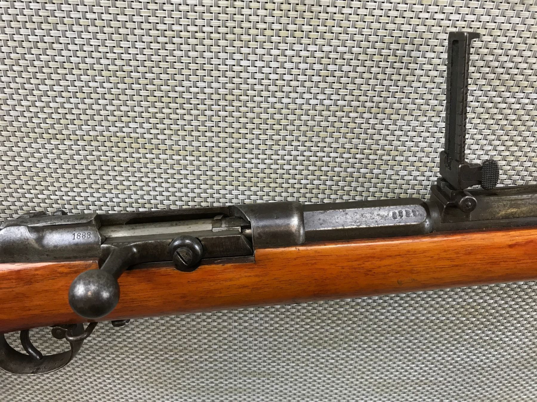 MAUSER , MODEL: 7184 , CALIBER: 43 MAUSER , BORE IS DARK, DOVETAIL FRONT AND ADJUSTABLE REAR SIGHTS RECEIVER IS DATED 1888, SHOWS SOME HANDLING MARKS, STEEL BUTT PLATE, RECEIVER BARREL AND BOLT ARE ALL MATCHING BY SERIAL # , BARREL LENGTH: 32" , SERIAL # 4851 , STOCK # 8170 , CONDITION: 4/10 , CLASS: CANADIAN NON RESTRICTED CLASS