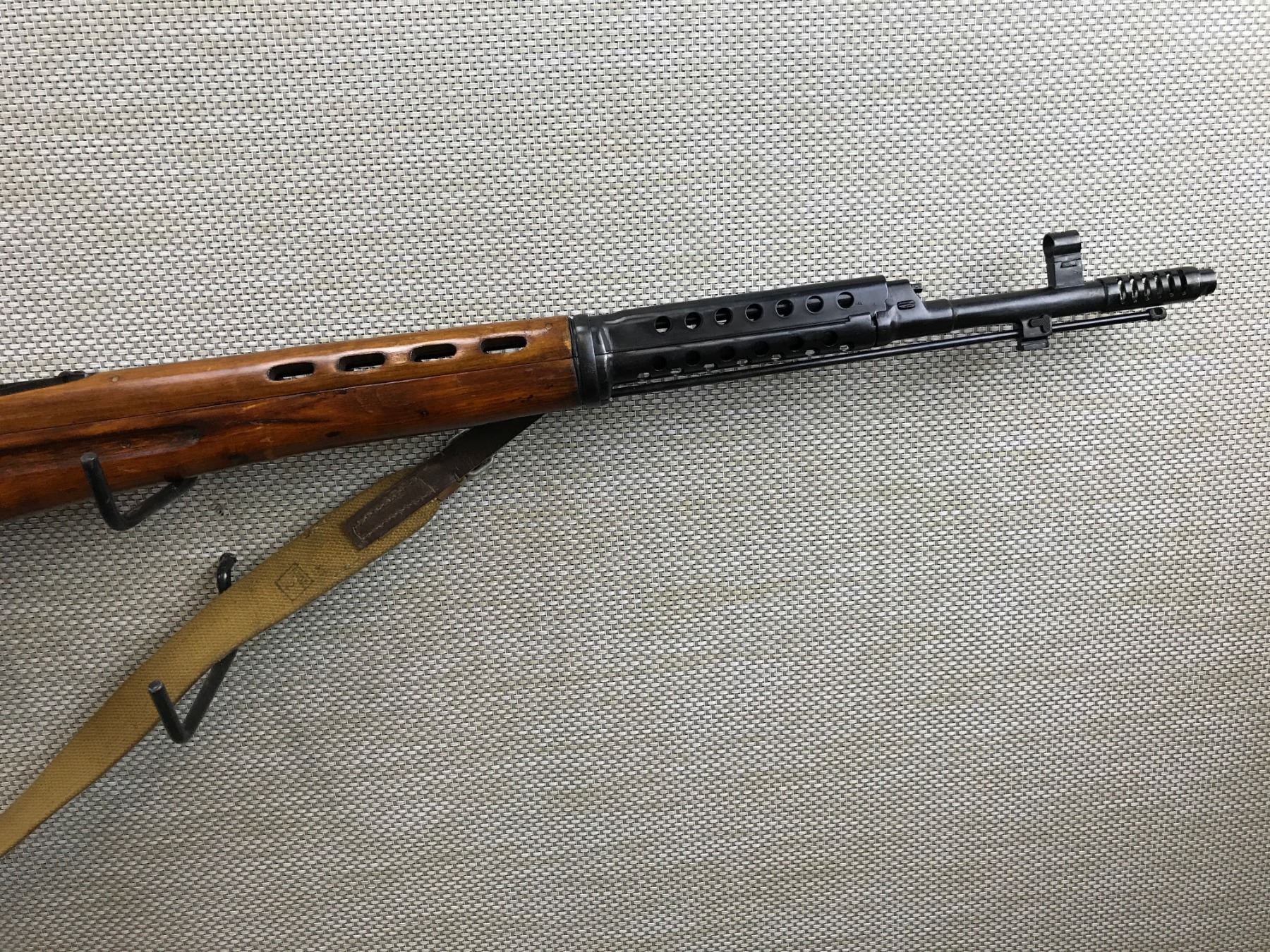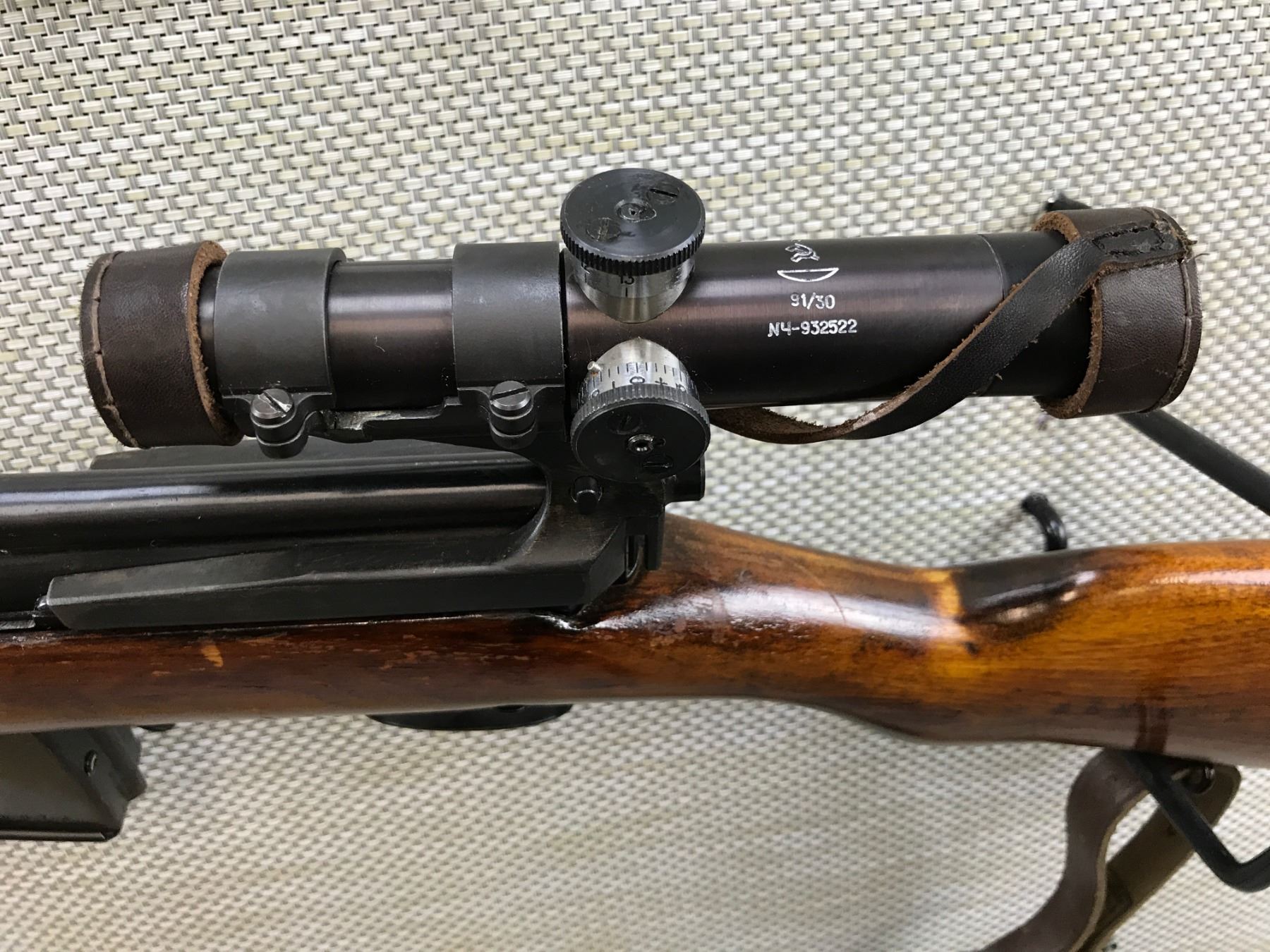 WWII ERA, TOKAREV , MODEL: SVT 40 SNIPER , CALIBER: 7.62 X 54R , COMES WITH MAGAZINE THAT HAS BEEN PINNED, MATCHING RECEIVER AND BOLT BY SERIAL #, WWII ERA RECEIVER IS DATED 1940,BOLT APPEARS TO HAVE BEEN REBLUED, HAS A RUSSIAN MARKED 91/30 PU SCOPE WITH LEATHER COVER AND MOUNT, HOODED FRONT SIGHT AND ADJUSTABLE REAR SIGHT, EXCELLENT BORE, COMES WITH ORIGINAL CANVAS AND LEATHER SLING, SHOWS SOME HANDLING MARKS, RETAINS FULL MILITARY CONFIGURATION , BARREL LENGTH: 26" , SERIAL # 9B1807 , STOCK # 8180 , CONDITION: 8/10 , CLASS: CANADIAN NON RESTRICTED CLASS