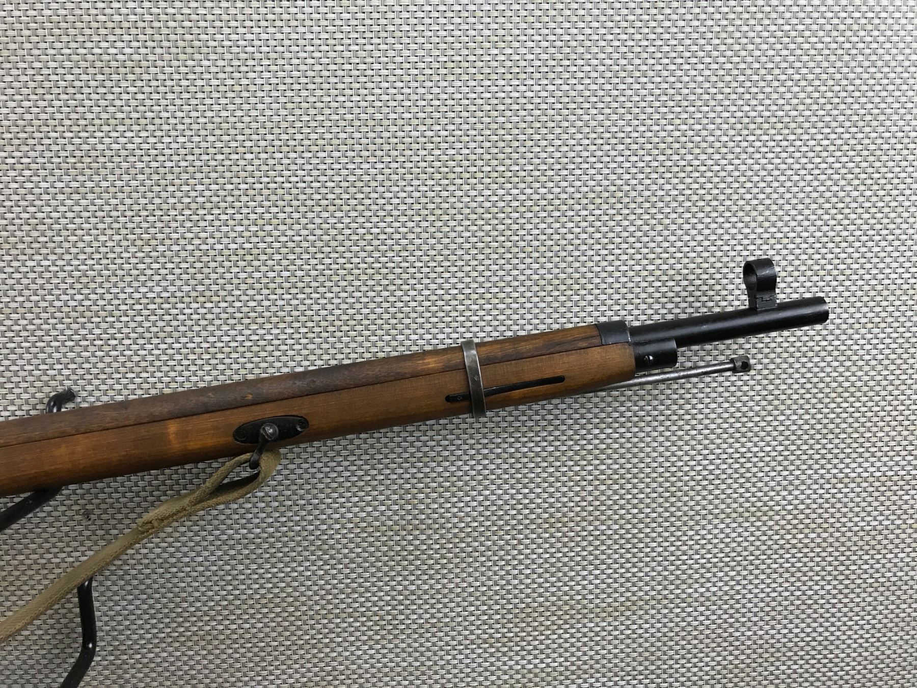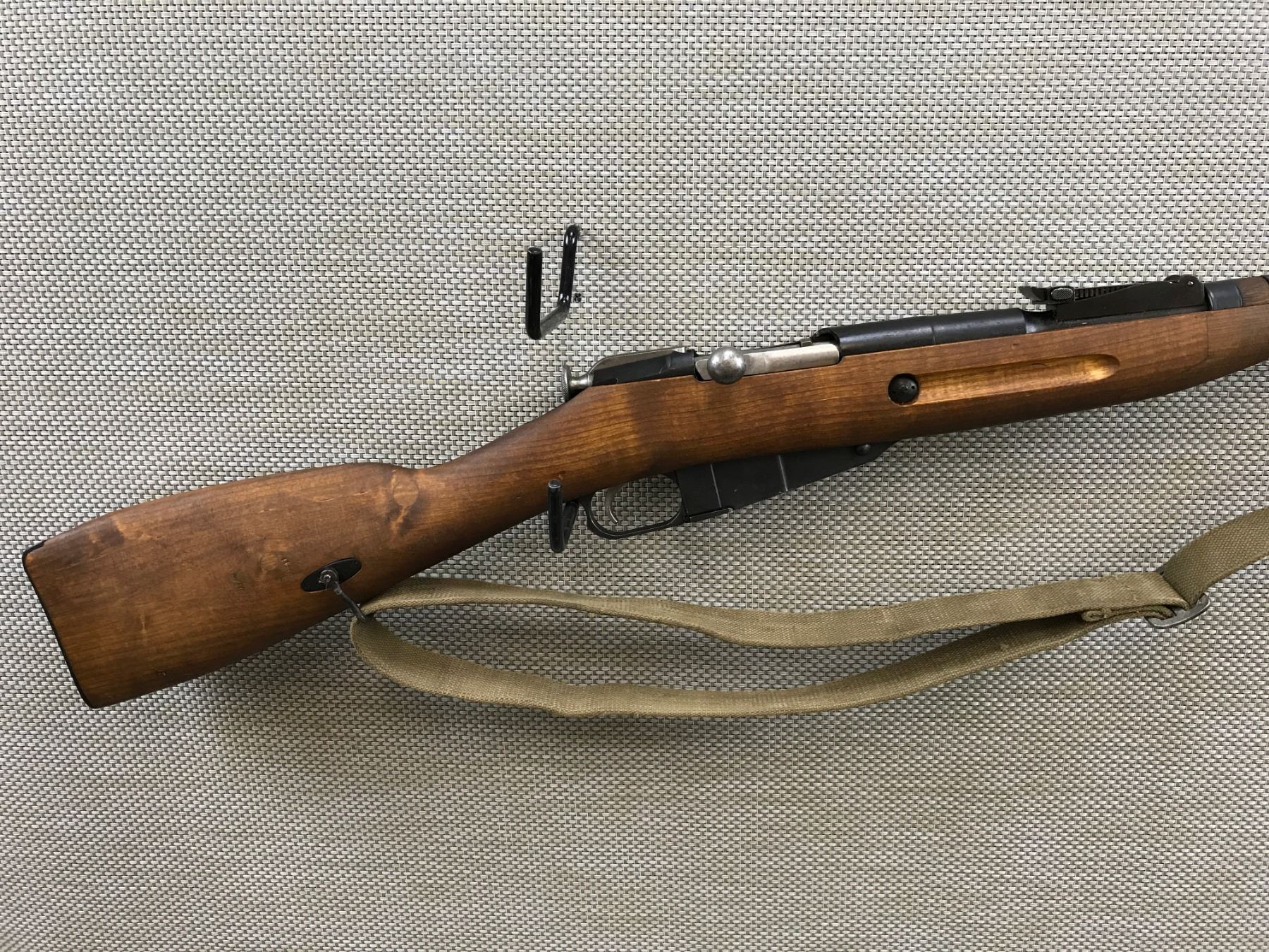 MOSIN NAGANT , MODEL: 91/30 , CALIBER: 7.62 X 54R , MANUFACTURED BY ISEVSK ARSENAL DATED 1936, BOLT AND RECEIVER ARE NOT MATCHING BY SERIAL #, RESTOCKED BY FINNS WITH BIRCH FINGER-JOINT STOCK AND FINNISH WIRE SLING SWIVELS, SHOWS SOME HANDLING MARKS, RETAINS FULL MILITARY CONFIGURATION, HOODED FRONT AND ADJUSTABLE REAR SIGHTS, BORE IS DARK, HAS A CANVAS SLING , BARREL LENGTH: 30" , SERIAL # 121979 BOLT IS 1779, STOCK # 8189 , CONDITION: 7/10 , CLASS: CANADIAN NON RESTRICTED CLASS