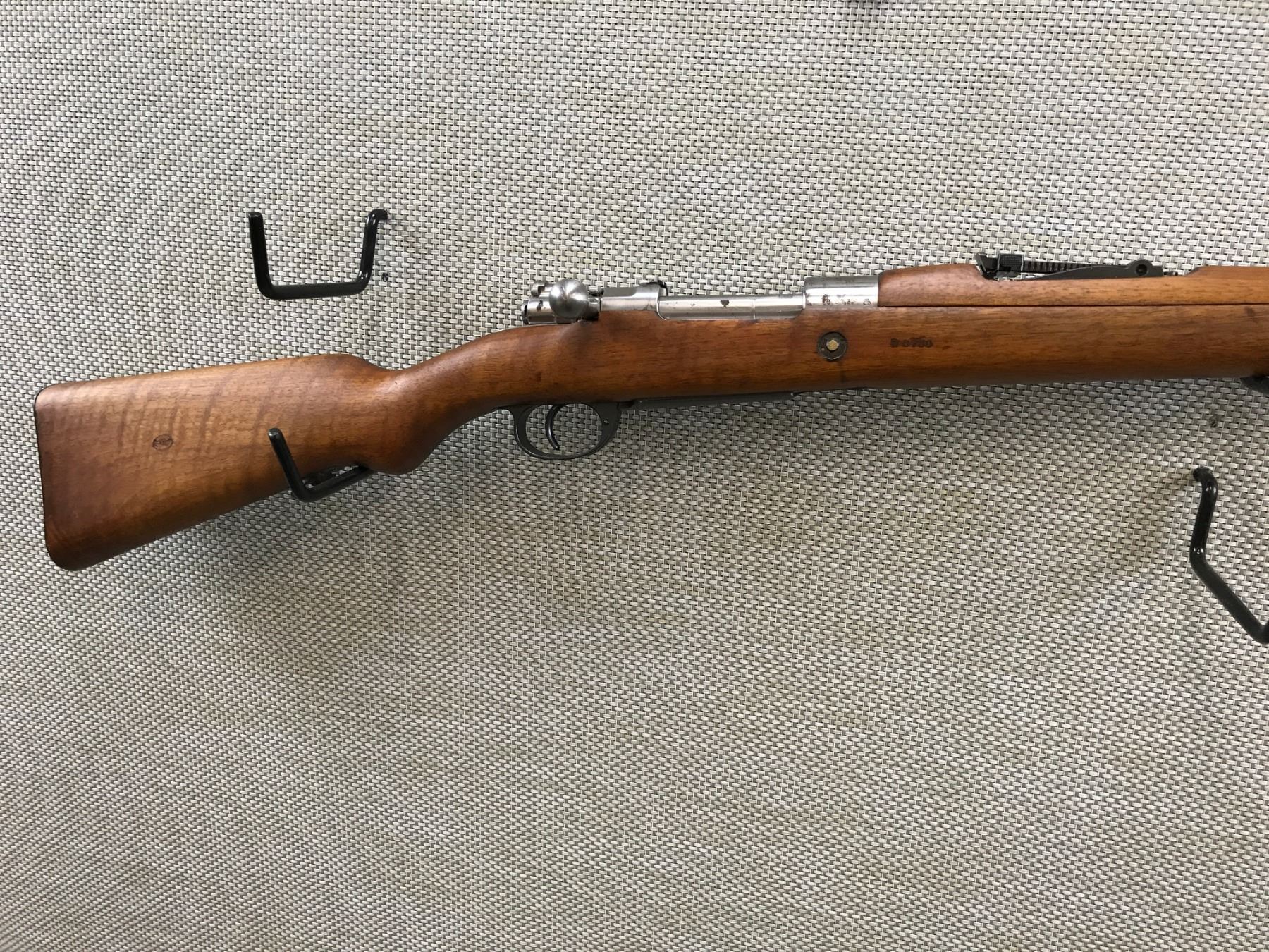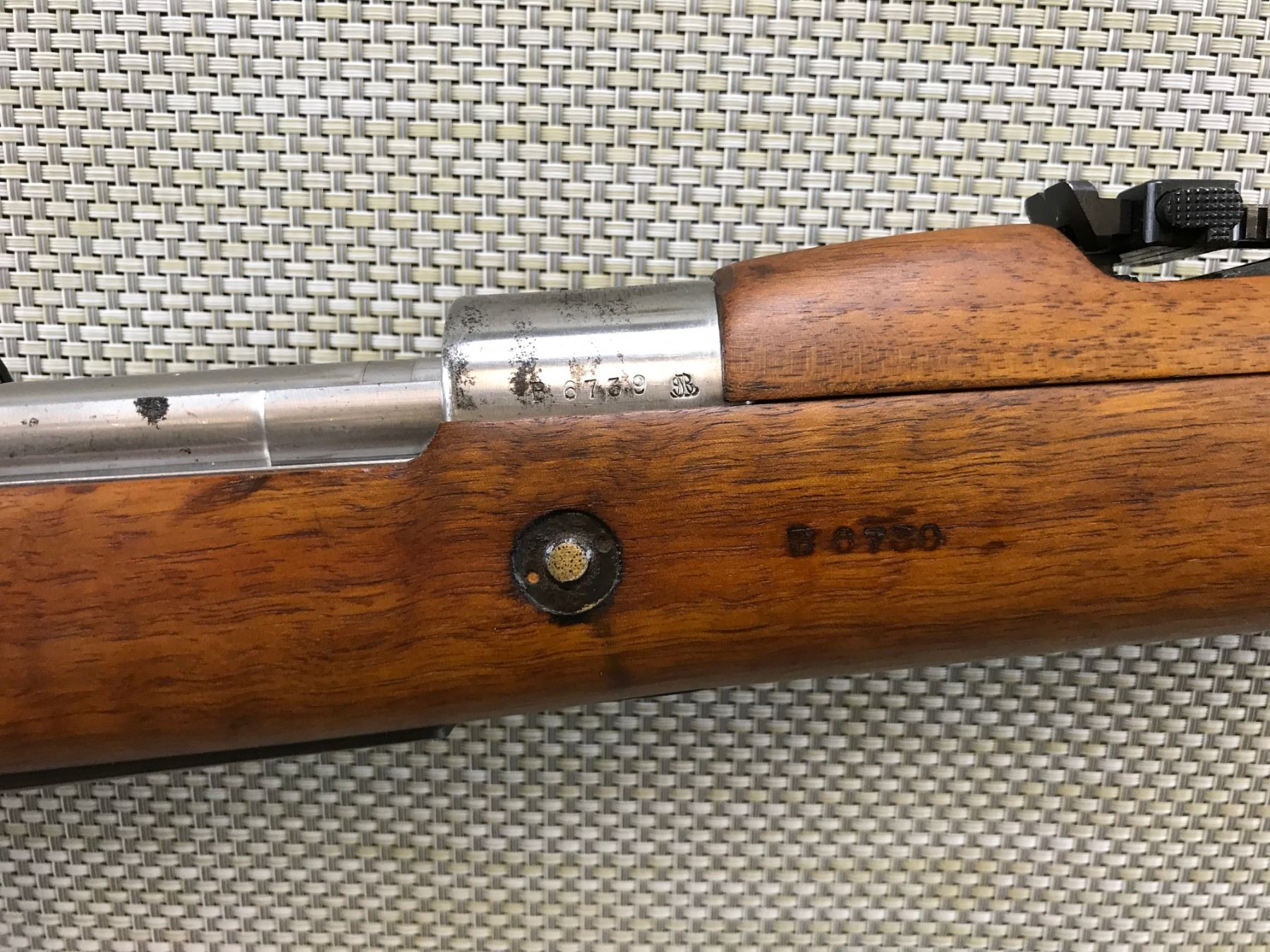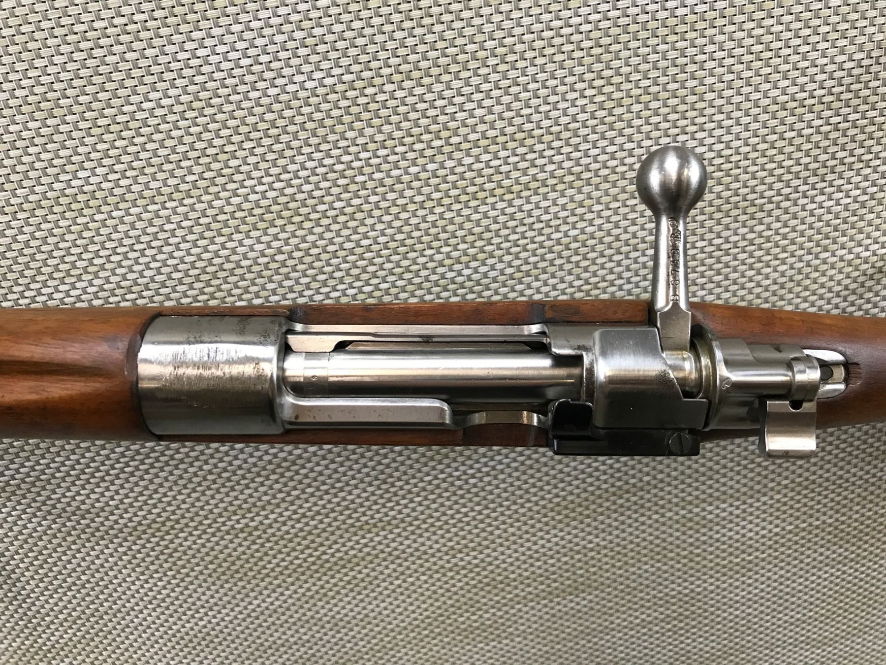 ARGENTINE MAUSER , MODEL: 1909 , CALIBER: 7.65MM MAUSER , BOLT AND RECEIVER MATCH BY SERIAL #, INCLUDES A MUZZLE CAP, BORE IS VERY GOOD, RETAINS FULL MILITARY CONFIGURATION, MISSING THE CLEANING ROD,RECEIVER IS FINISHED IN THE WHITE, CREST HAS BEEN GROUND, SHOWS SOME HANDLING MARKS , BARREL LENGTH: 29 1/2" , SERIAL # 6739 , STOCK # 8212 , CONDITION: 7/10 , CLASS: CANADIAN NON RESTRICTED CLASS