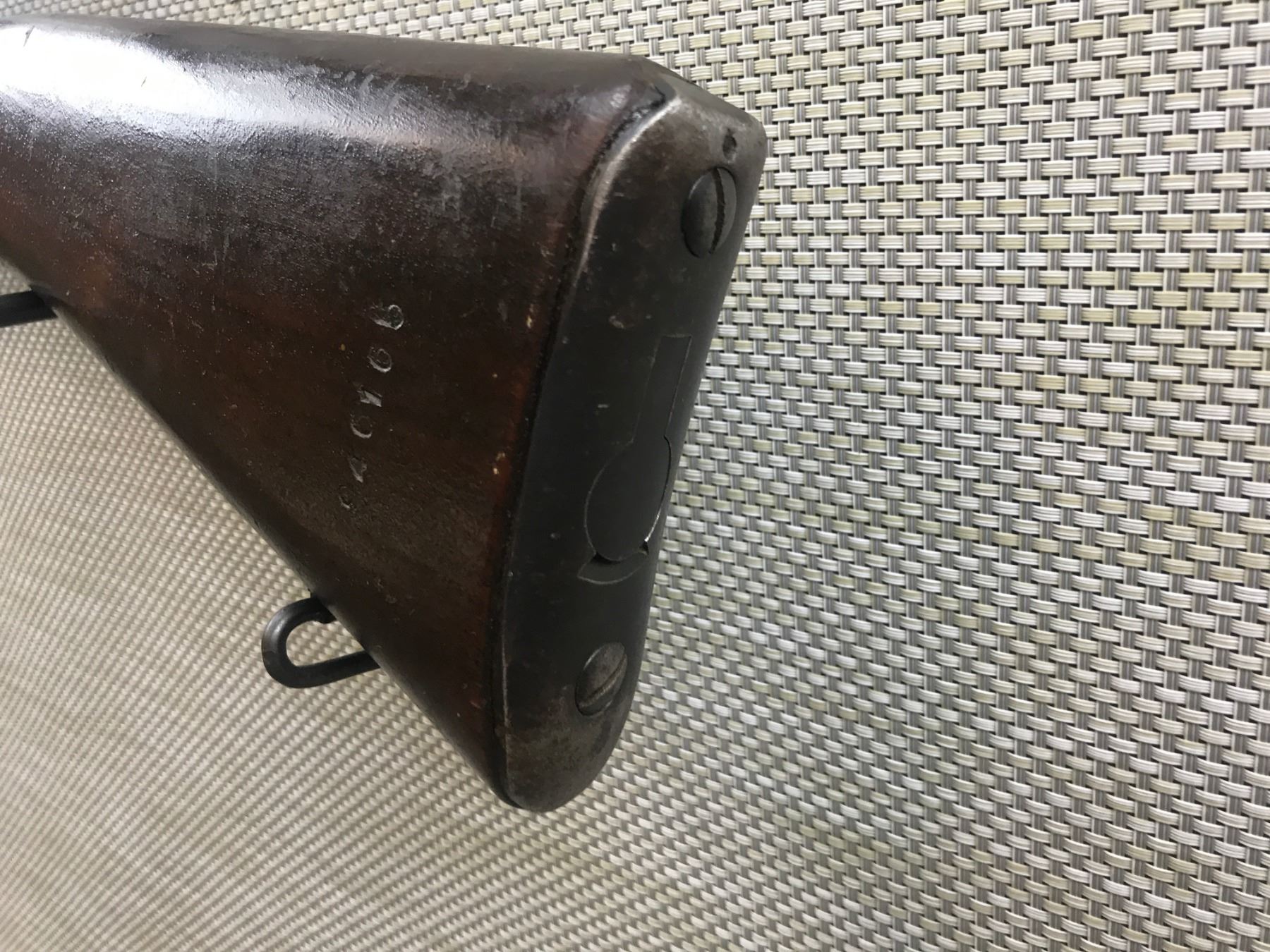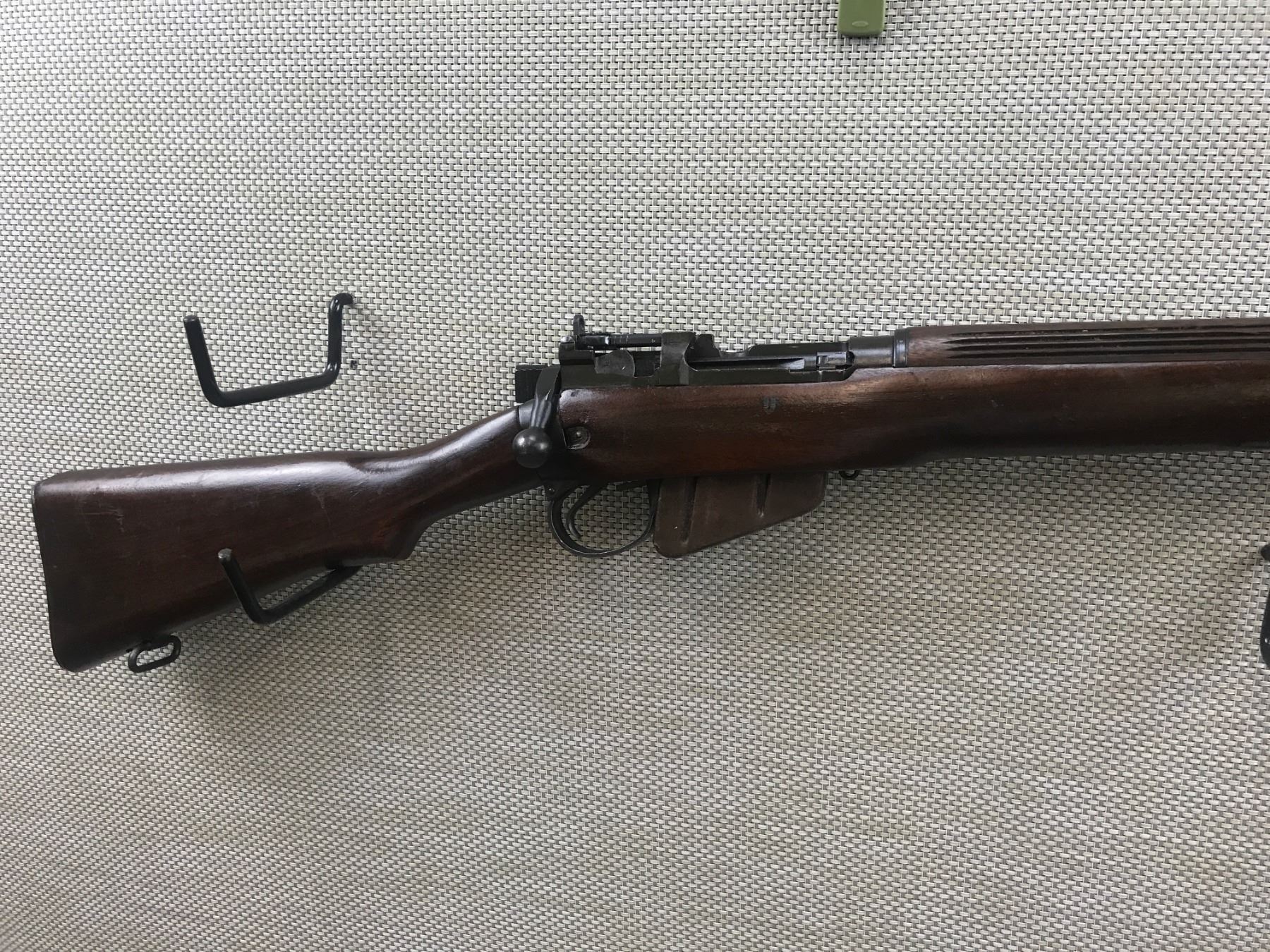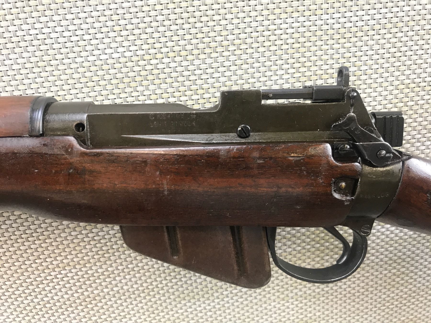 LEE ENFIELD , MODEL: NO 4 MKI * , CALIBER: 303 BR , COMES WITH MAGAZINE, MADE IN LONGBRANCH DATED 1950, MATCHING RECEIVER, STOCK AND BOLT BY SERIAL #, VERY GOOD BORE, RETAINS FULL MILITARY CONFIGURATION, STEEL BUTT PLATE, SHOWS VERY LITTLE HANDLINGMARKS, TOP WOOD MAY BE REPLACEMENT, BARLEY CORN FRONT AND PEEP ADJUSTABLE REAR SIGHTS , BARREL LENGTH: 25 1/2" , SERIAL # 94L8165 , STOCK # 8234 , CONDITION: 8/10 , CLASS: CANADIAN NON RESTRICTED CLASS