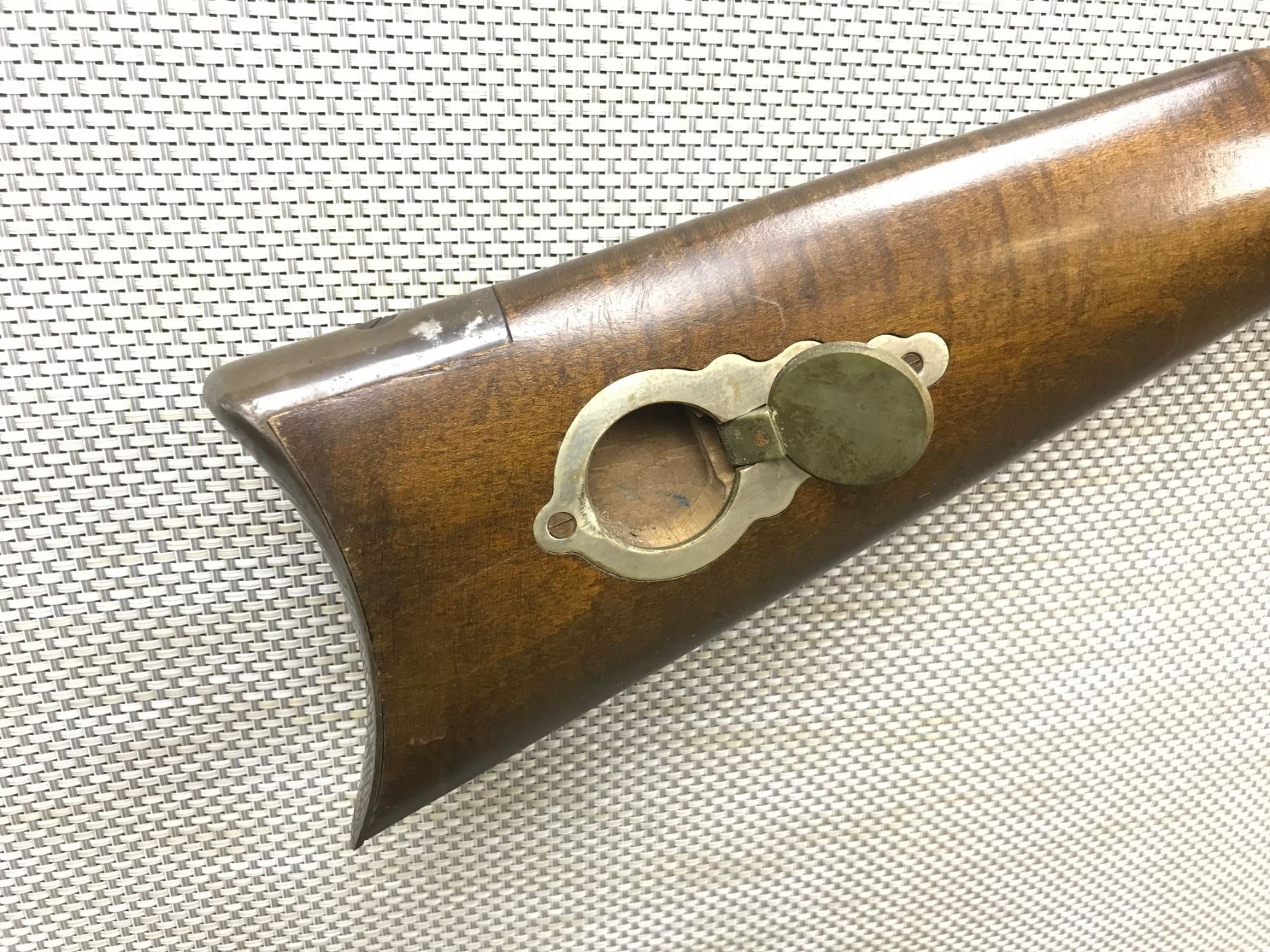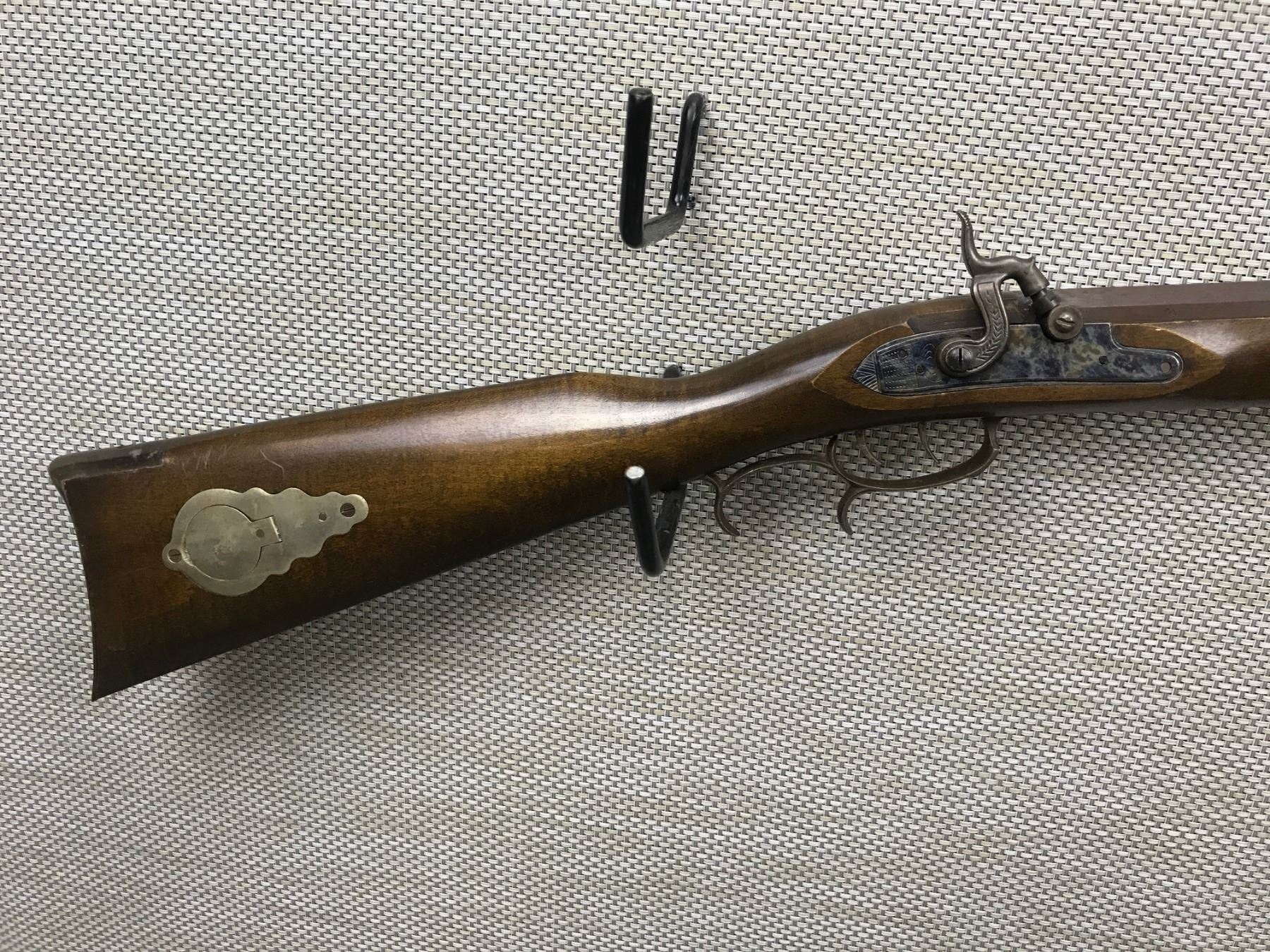 CONNECTITCUTT VALLEY ARMS , MODEL: BLACK POWDER PERCUSSION , CALIBER: 50 CAL PERC , BLADE FRONT AND ADJUSTABLE REAR SIGHT, OCTAGONAL BARREL IS DRILLED AND TAPPED FOR SCOPE MOUNTS, CASE HARDENED LOCK PLATE, BRASS PATCH BOX, MISSING 1 TRANSVERSE WEDGE, AND MISSING RAM ROD BROWN FINISH, SHOWS SOME HANDLING MARKS, FEATURES A SET TRIGGER , BARREL LENGTH: 31" , SERIAL # 038520 , STOCK # 8277 , CONDITION: 6/10 , CLASS: CANADIAN NON RESTRICTED CLASS