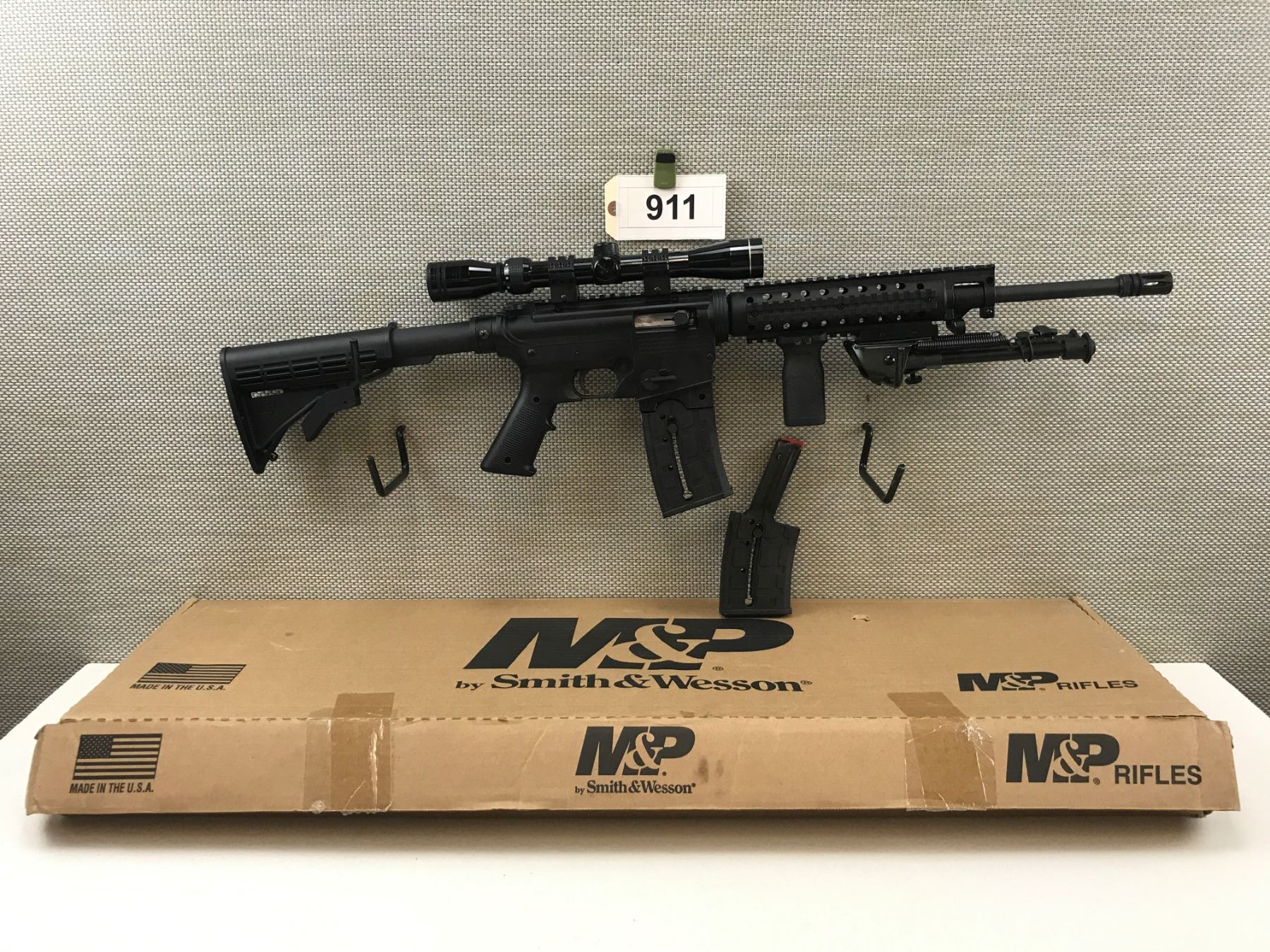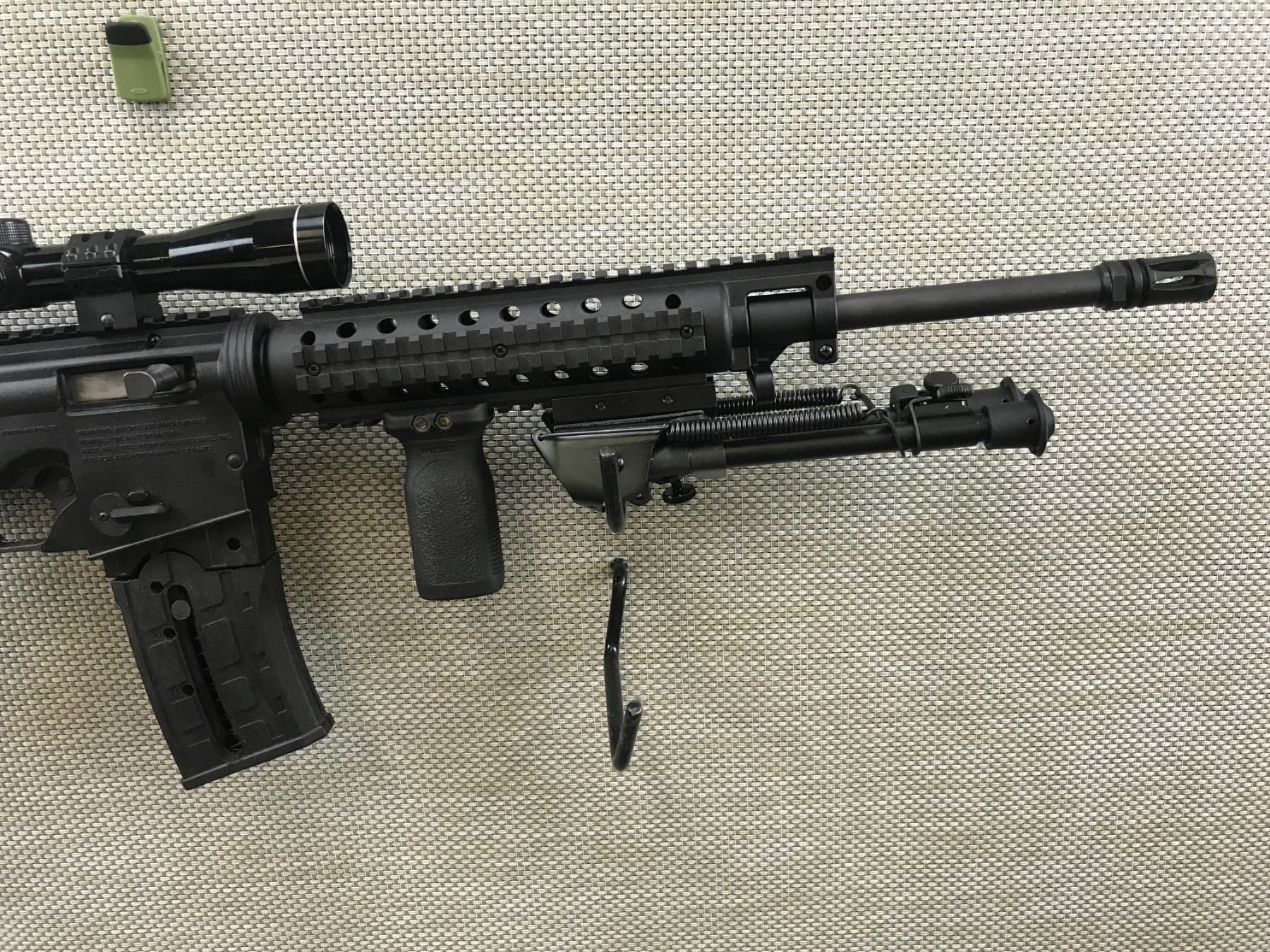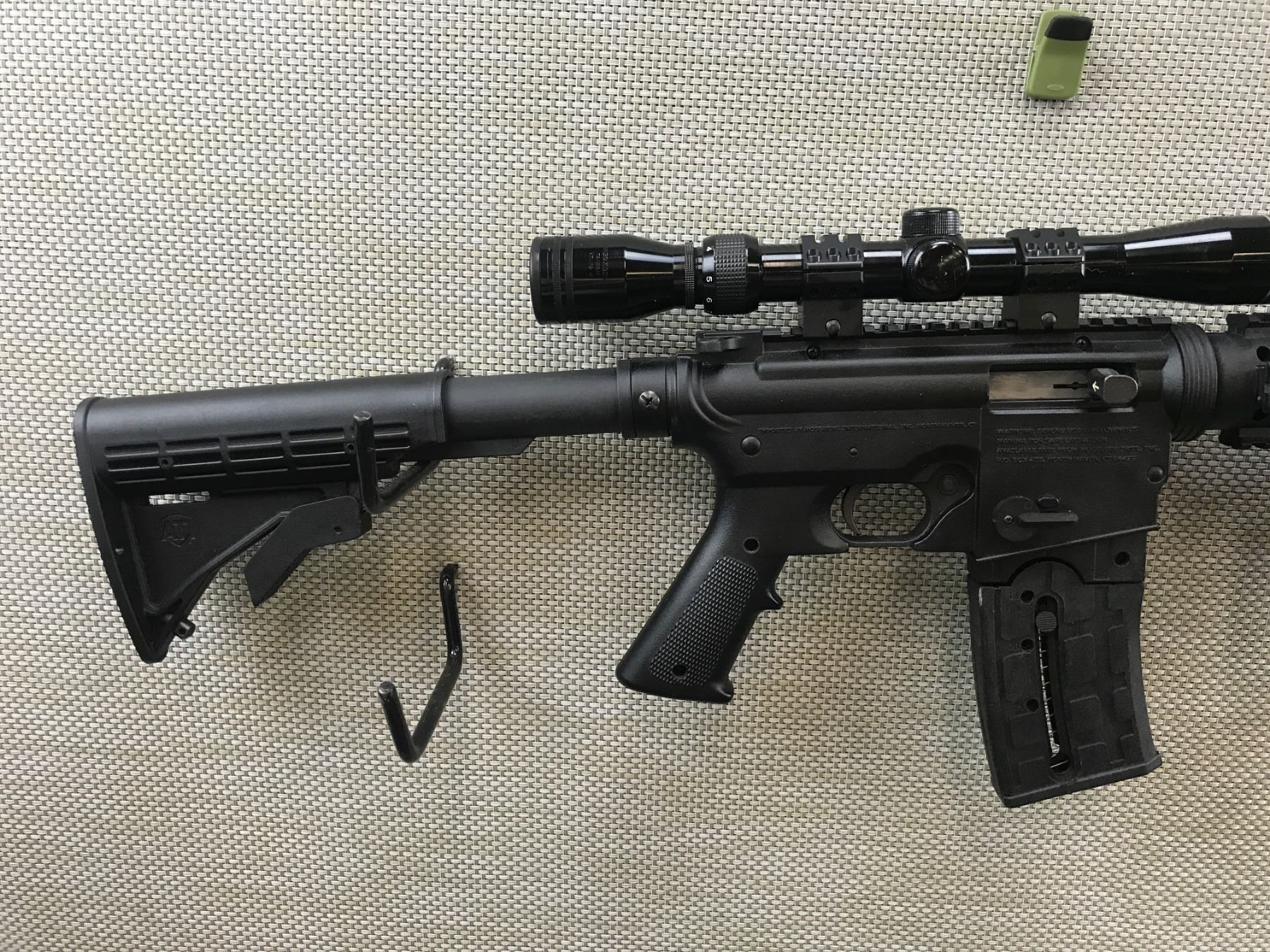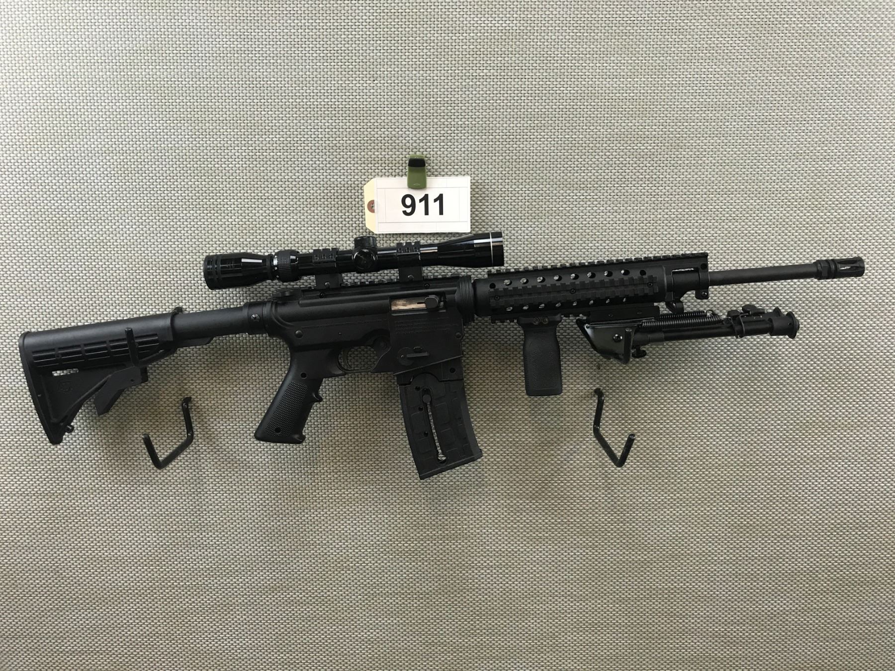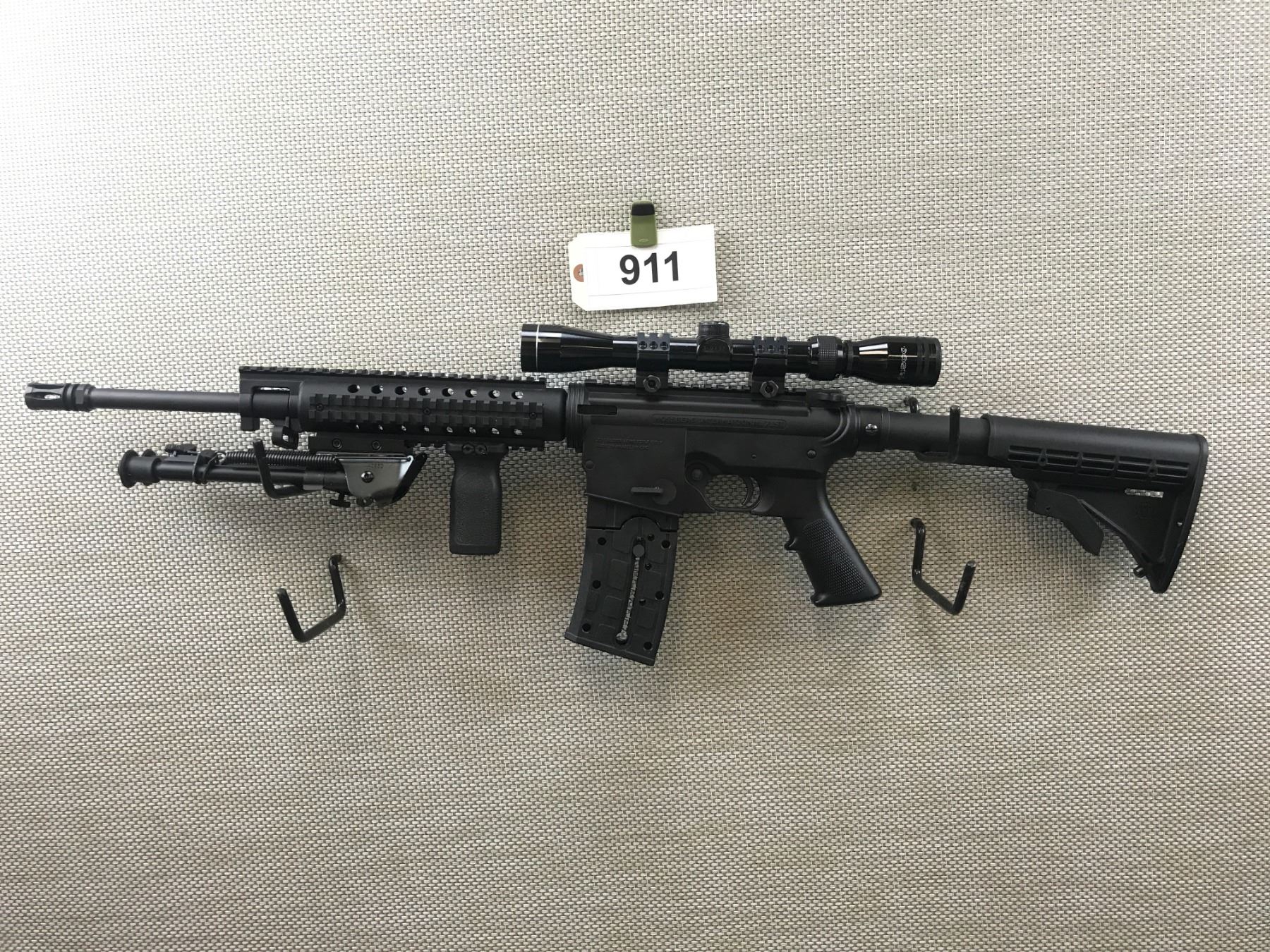 MOSSBERG , MODEL: 715T , CALIBER: 22 LR , COMES WITH BOX AND 2 MAGAZINES,BORES,APPEARS AS UNFIRED, FEATURES A 3 X 9 TASCO SCOPE, BLACK SYNTHETIC STOCK, QUAD RAIL FOREND WITH BIPOD AND FULL PISTOL GRIP, COLLAPSABLE ATI BUTT STOCK, BIRD CAGE FLASH HIDER , BARREL LENGTH: 18" , SERIAL # 3585014 , STOCK # 8280 , CONDITION: 9/10 , CLASS: CANADIAN NON RESTRICTED CLASS