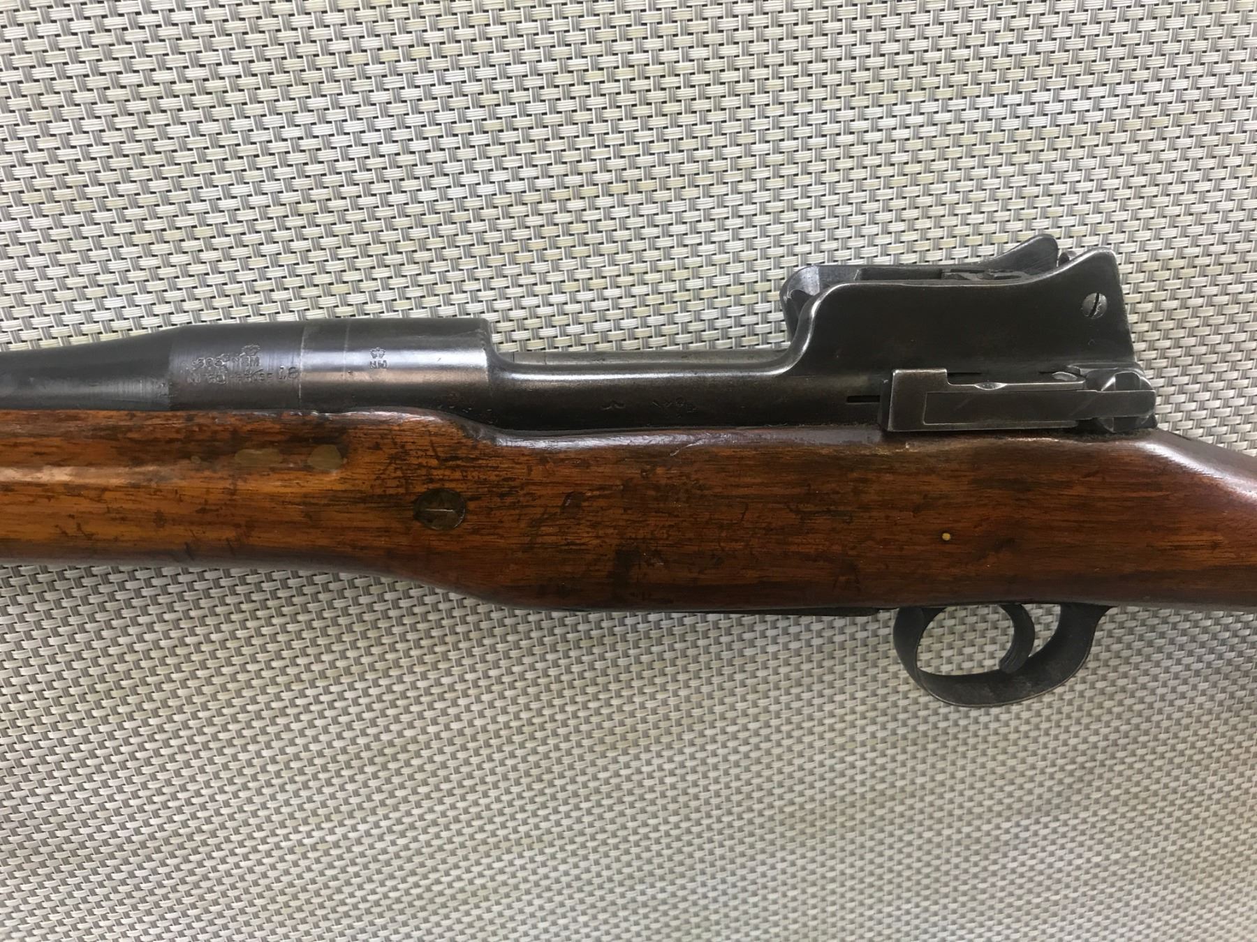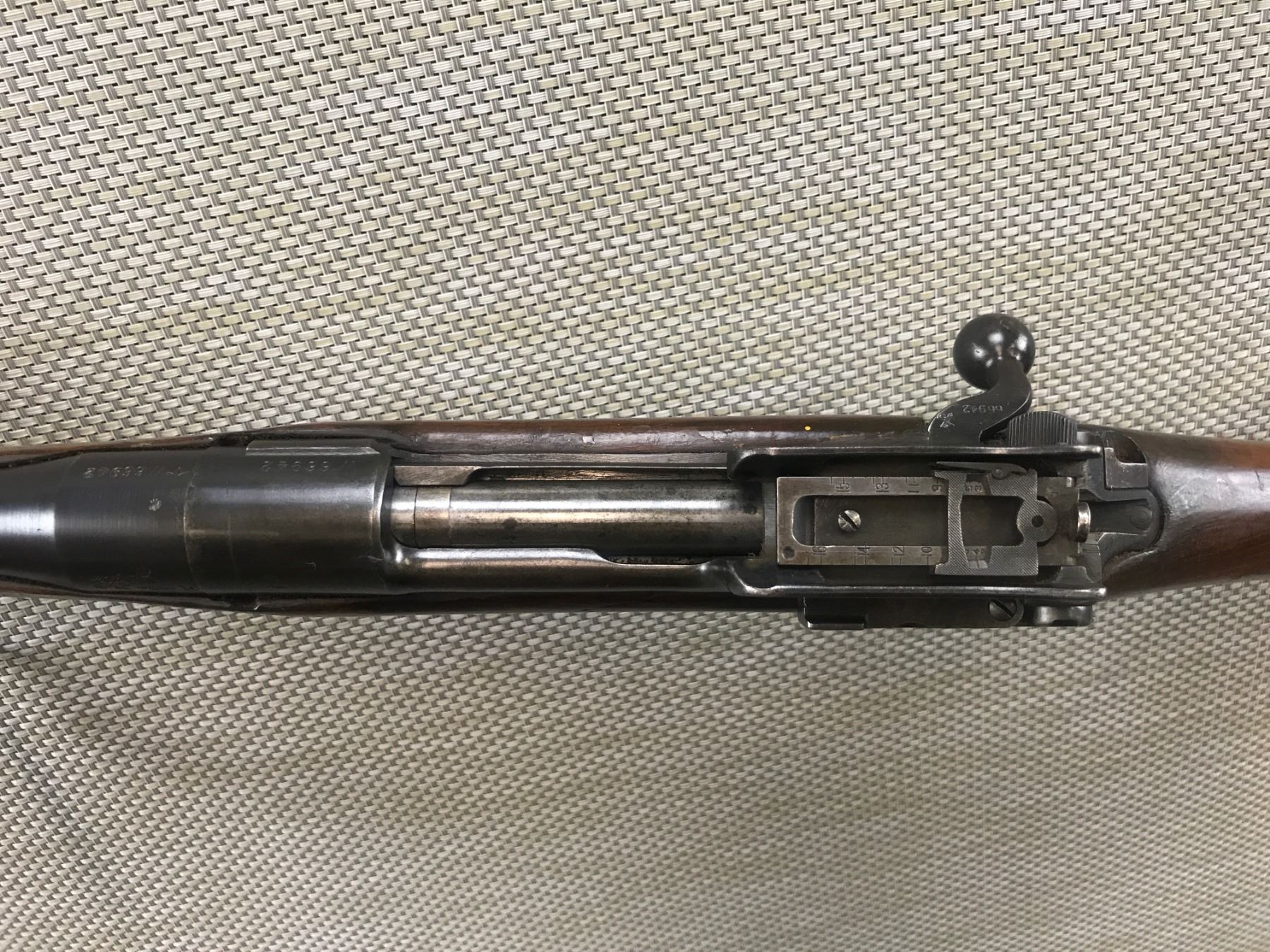 ENFIELD , MODEL: P14 , CALIBER: 303 BR , BOLT IS STRIPPED AND MISSING THE FIRING PIN, BUT DOES MATCH BY SERIAL #, BORE IS DARK, BARLEY CORN FRONT AND FULLY ADJUSTABLE REAR SIGHT, SPORTERIZED STOCK, EXTENSIVE MILITARY MARKINGS, SHOWS SOME HANDLING MARKS , BARREL LENGTH: 26" , SERIAL # W66942 , STOCK # 8307 , CONDITION: 5/10 , CLASS: CANADIAN NON RESTRICTED CLASS