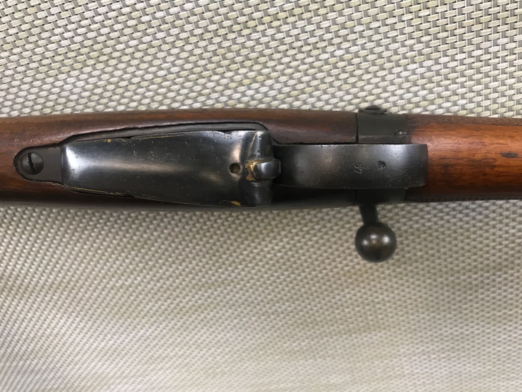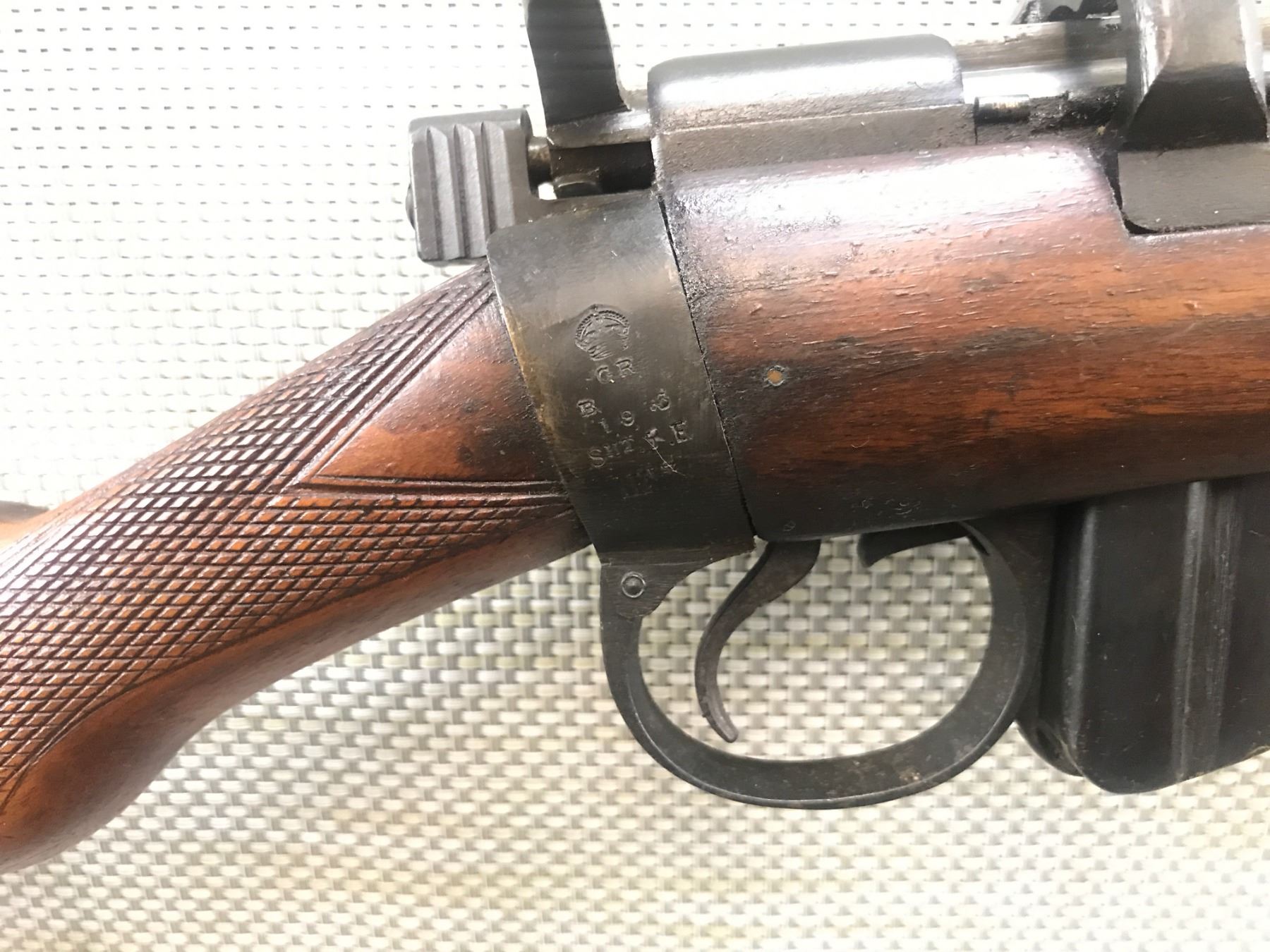 LEE ENFIELD , MODEL: MK III SPORTER , CALIBER: 303 BR , COMES WITH MAGAZINE, STAMP OF DATE IS UNREADABLE, GOOD BORE, MATCHING #'S, CHECKERED FOREND AND SEMI PISTOL GRIP BUTT STOCK, SHOWS SOME HANDLING MARKS, RAISED FRONT AND ADJUSTABLE REAR SIGHT, BRASS BUTT PLATE , BARREL LENGTH: 25" , SERIAL # 65408 , STOCK # 8309 , CONDITION: 5/10 , CLASS: CANADIAN NON RESTRICTED CLASS