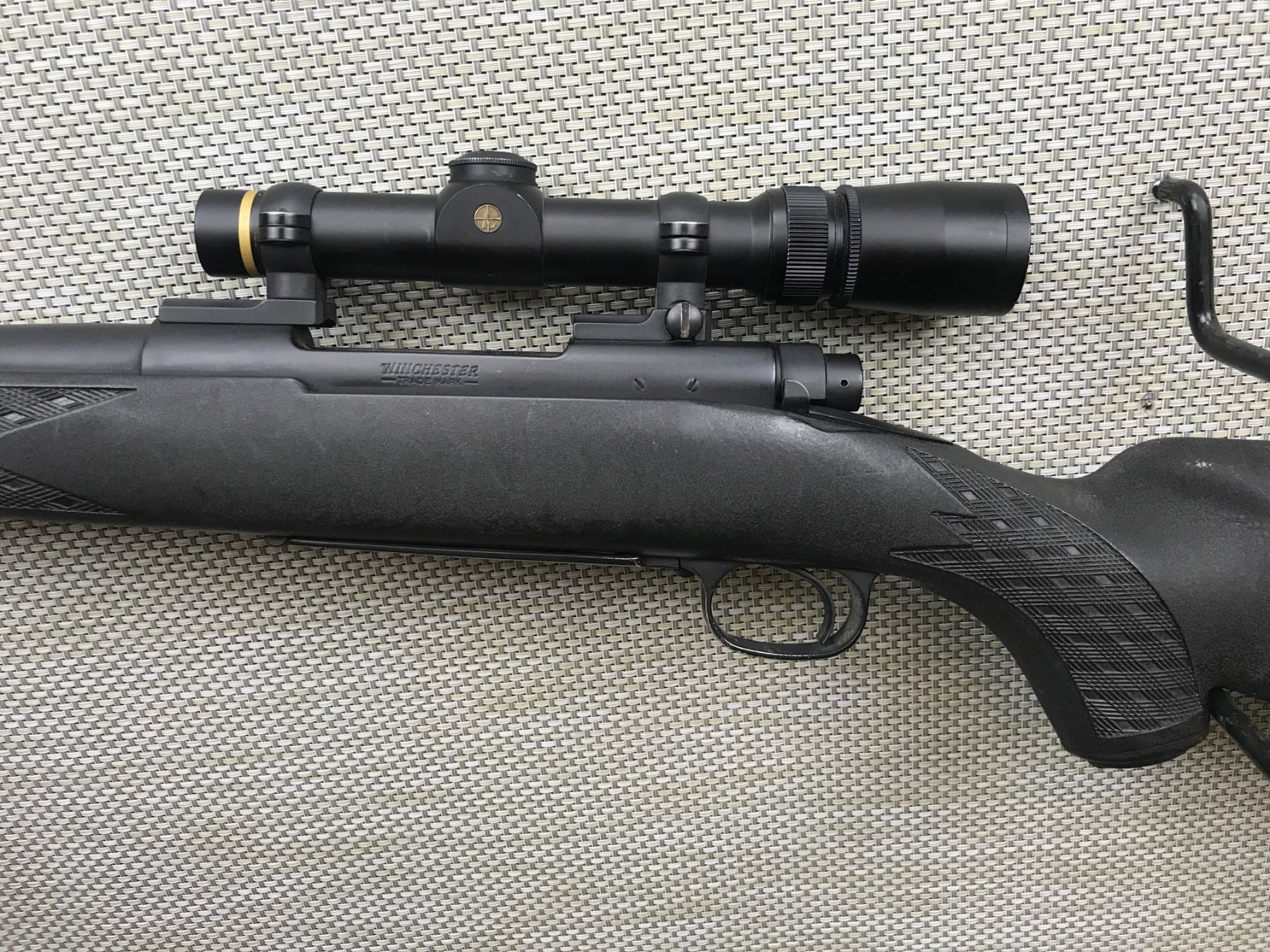 WINCHESTER , MODEL: 70 , CALIBER: 300 WIN MAG , FEATURE A LEUPOLD 1.5 - 5 POWER SCOPE , PORTED BARREL, EXCELLENT BORE, NO SIGHTS, SYNTHETIC CAPPED PISTOL GRIP BUTT STOCK WITH NYLON AMMO SLEEVE ATTACHED TO BUTT, SHOWS VERY LITTLE HANDLING MARKS , BARREL LENGTH: 24" , SERIAL # G999396 , STOCK # 8321 , CONDITION: 8/10 , CLASS: CANADIAN NON RESTRICTED CLASS