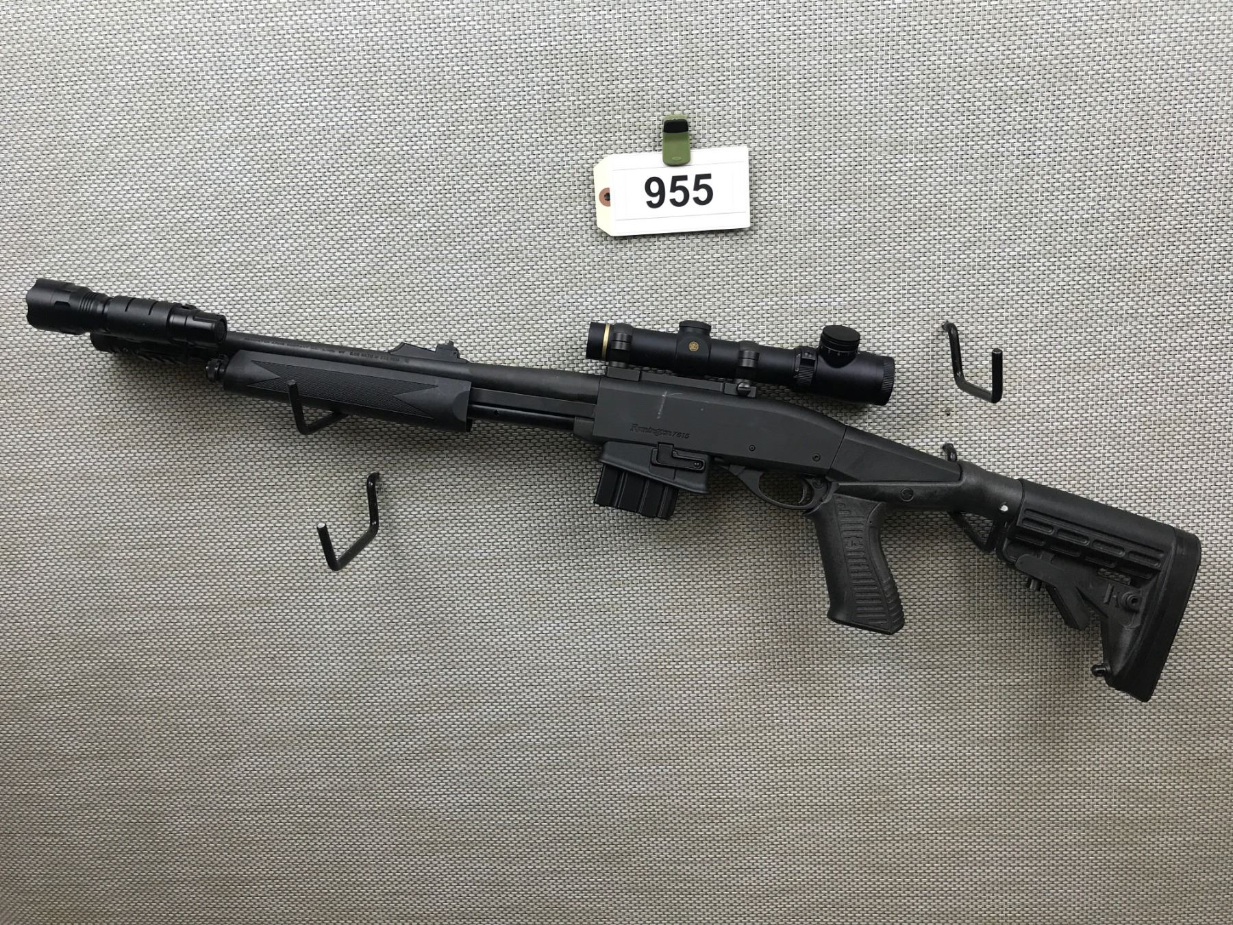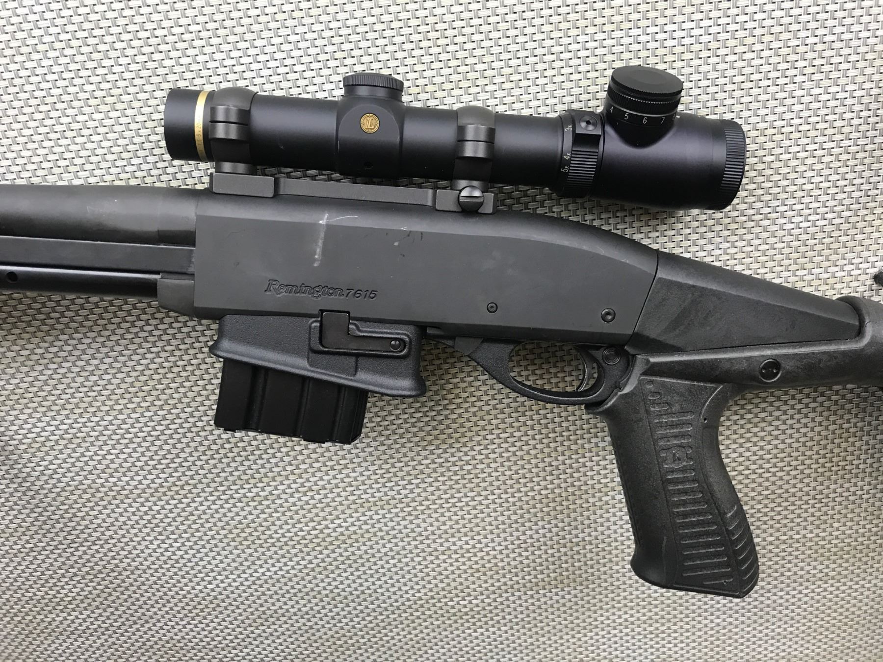 REMINGTON , MODEL: 7615 , CALIBER: 5.56 NATO OR 223 REM , COMES WITH A MAGAZINE, FEATURES LEUPOLD VX III SCOPE, FRONT SIGHT RAIL WITH OPTICS, ADJUSTABLE REAR SIGHT, COLLAPSABLE BUTT WITH FULL PISTOL GRIP, BORE IS EXCELLENT, SYNTHETIC STOCK , BARREL LENGTH: 17" , SERIAL # B8553224 , STOCK # 8324 , CONDITION: 8/10 , CLASS: CANADIAN NON RESTRICTED CLASS