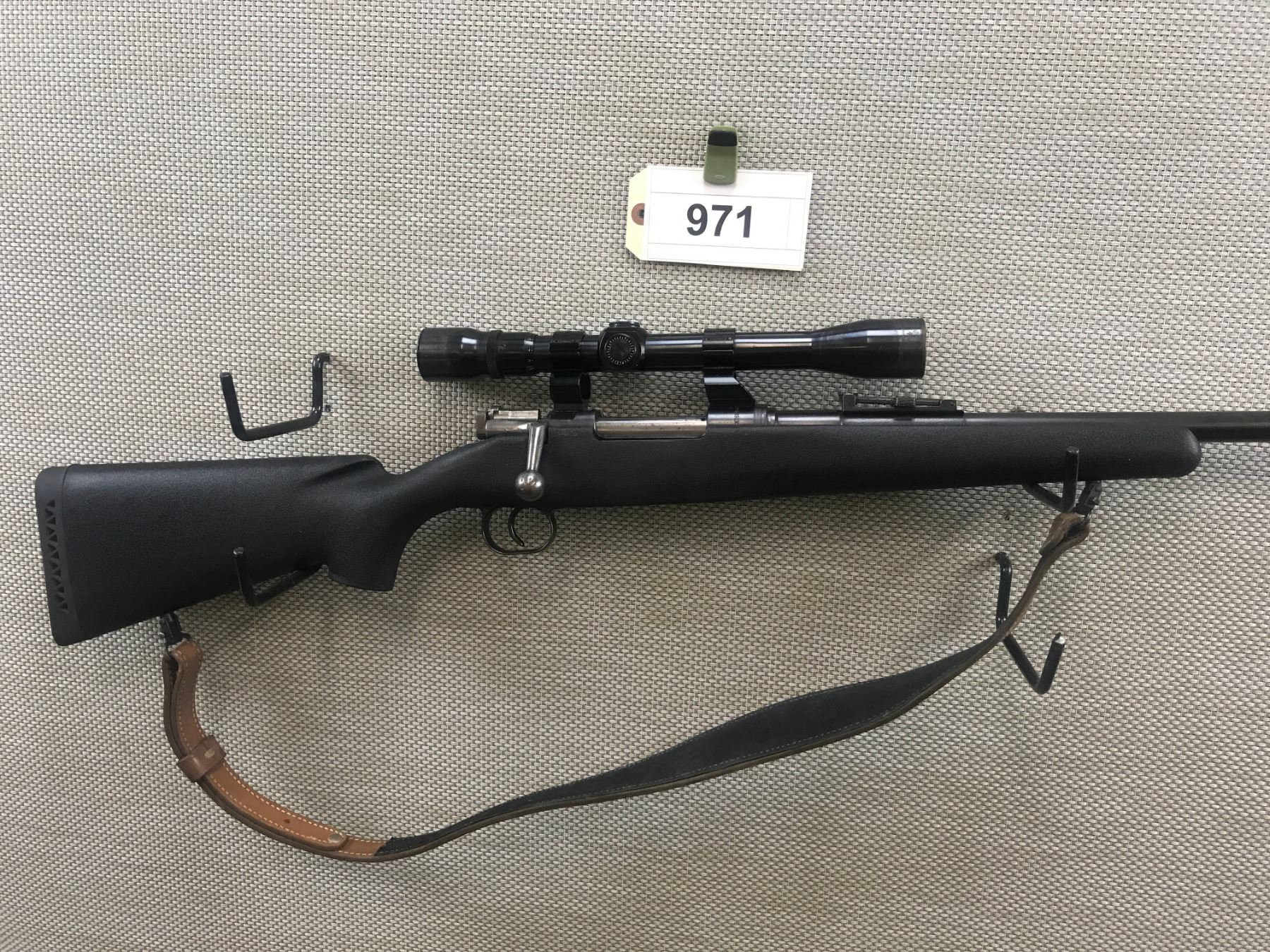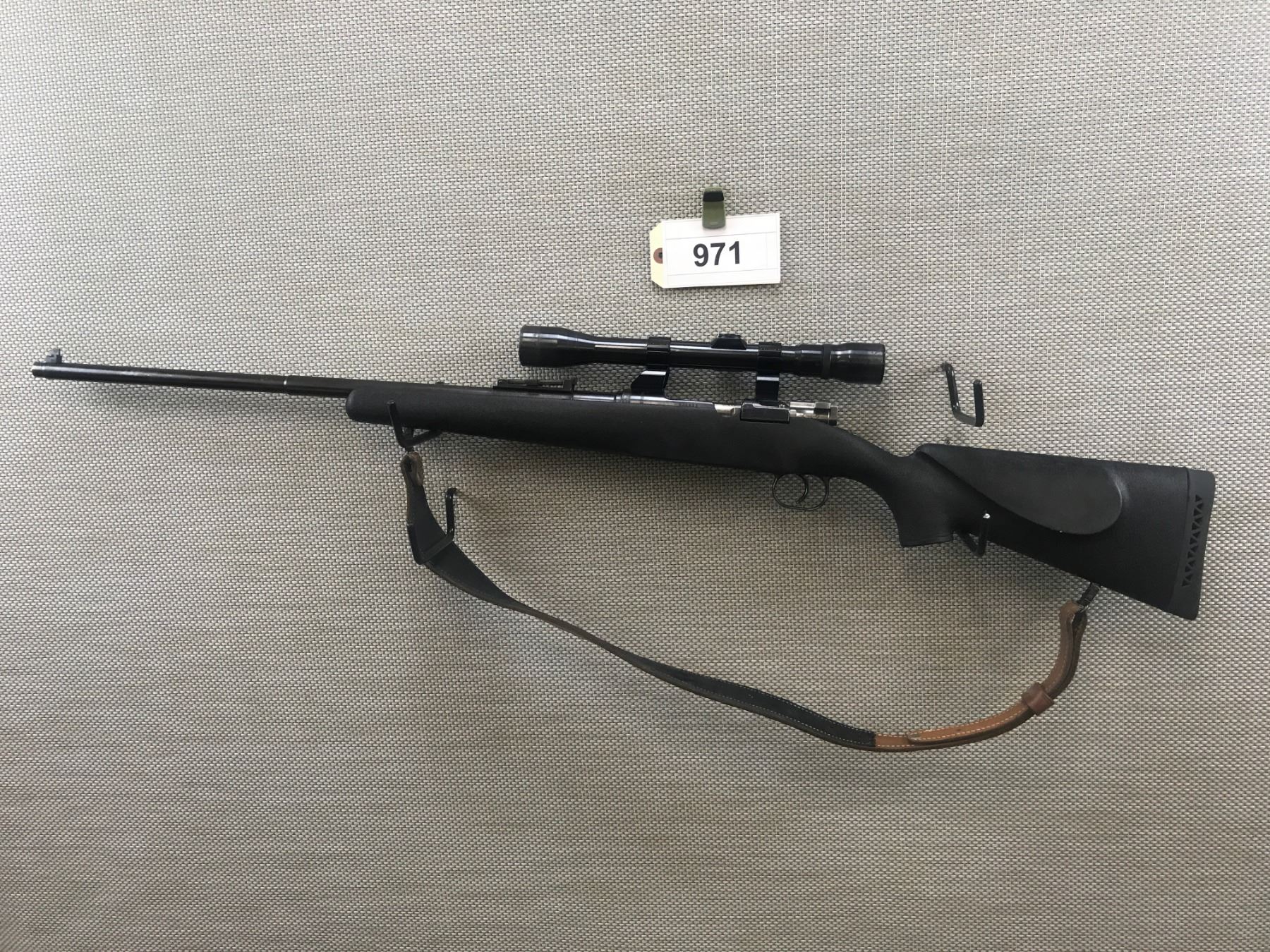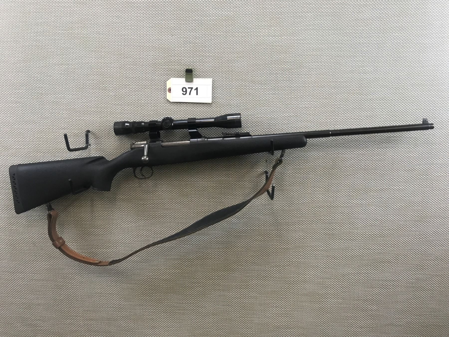 MAUSER/HUSQVARNA , MODEL: SPORTER , CALIBER: 6.5 X 55 SWEDISH MAUSER , VERY GOOD BORE, BOLT AND RECEIVER ARE MATCHING, RAMP FRONT AND ADJUSTABLE REAR SIGHT, MARKSMAN 3 - 9 SCOPE, REPLACED BLACK SYNTHETIC STOCK, HAS SLING SWIVEL LOOPS AND LEATHER SLING, VENTED RUBBER RECOIL PAD , BARREL LENGTH: 24" , SERIAL # 639632 , STOCK # 8340 , CONDITION: 6/10 , CLASS: CANADIAN NON RESTRICTED CLASS
