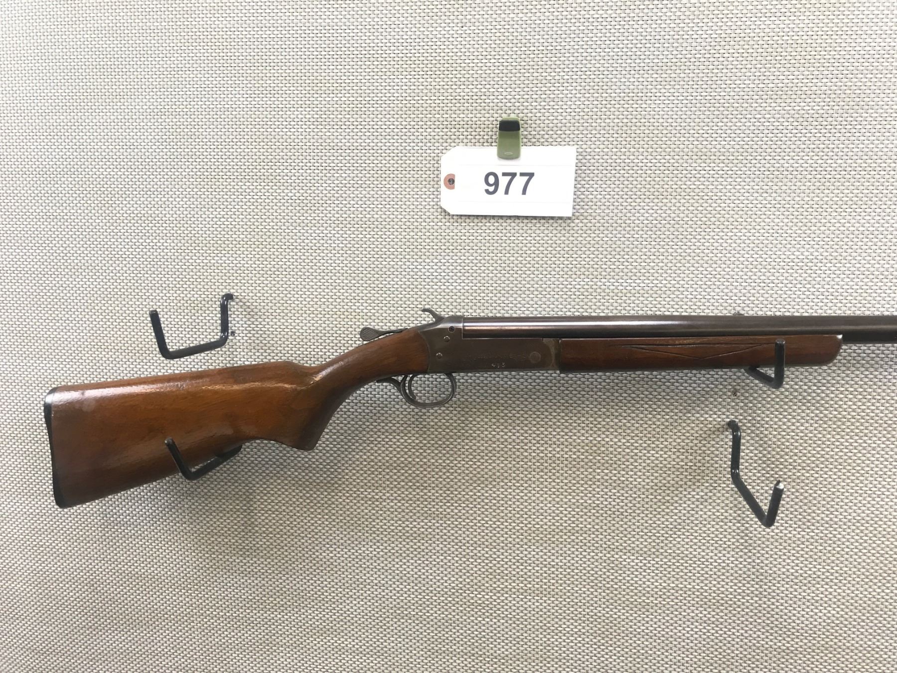 COOEY , MODEL: 84 , CALIBER: 12GA X 3" , FIXED FULL CHOKE, BORE IS EXCELLENT, TIGHT ACTION, BEAD FRONT SIGHT, STOCK HAS BEEN CHECKERED AFTERMARKET, SHOWS SOME HANDLING MARKS, PLASTIC BUTT PLATE , BARREL LENGTH: 30" , SERIAL # 413 , STOCK # 8346 , CONDITION: 6/10 , CLASS: CANADIAN NON RESTRICTED CLASS