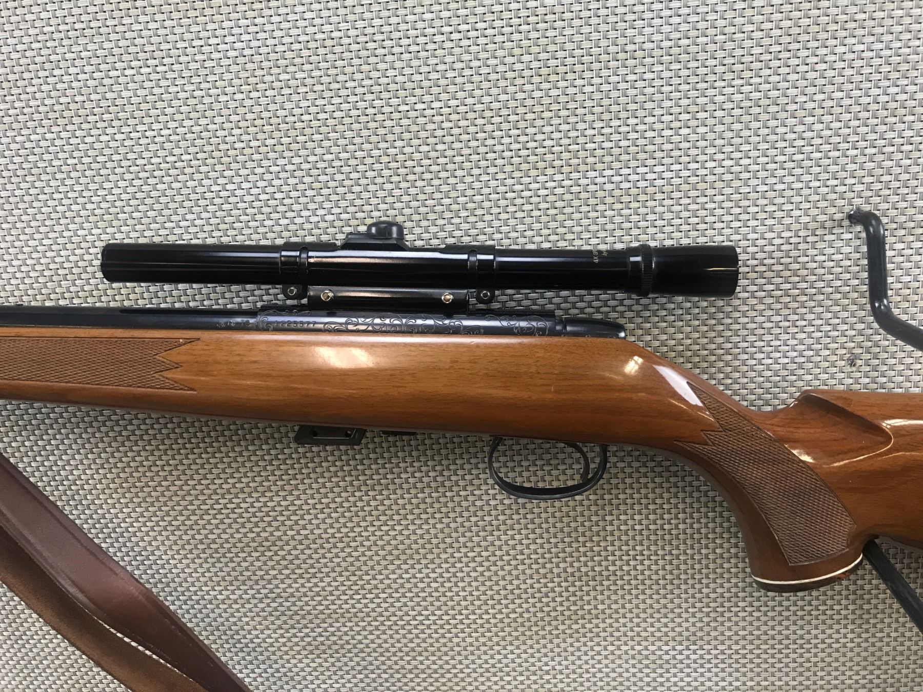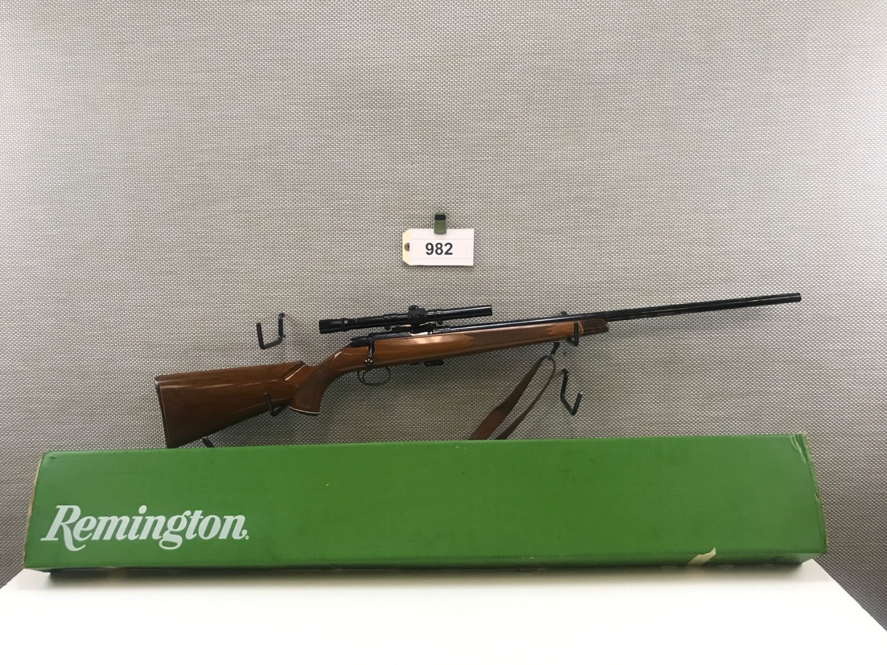 REMINGTON , MODEL: 541-S CUSTOM SPORTER , CALIBER: 22LR , COMES WITH BOX AND MAGAZINE, EXCELLENT BORE, ENGRAVED RECEIVER, CAPPED FOREND AND PISTOL GRIP BUTT STOCK WITH PLASTIC BUTT PLATE, SLING SWIVELS WITH LEATHER SLING, 4 POWER BUSHNELL SPORTVIEW SCOPE, ORIGINAL SIGHTS REMOVED, SHOWS VERY LITTLE HANDLING MARKS , BARREL LENGTH: 24" , SERIAL # 1225577 , STOCK # 8351 , CONDITION: 8/10 , CLASS: CANADIAN NON RESTRICTED CLASS