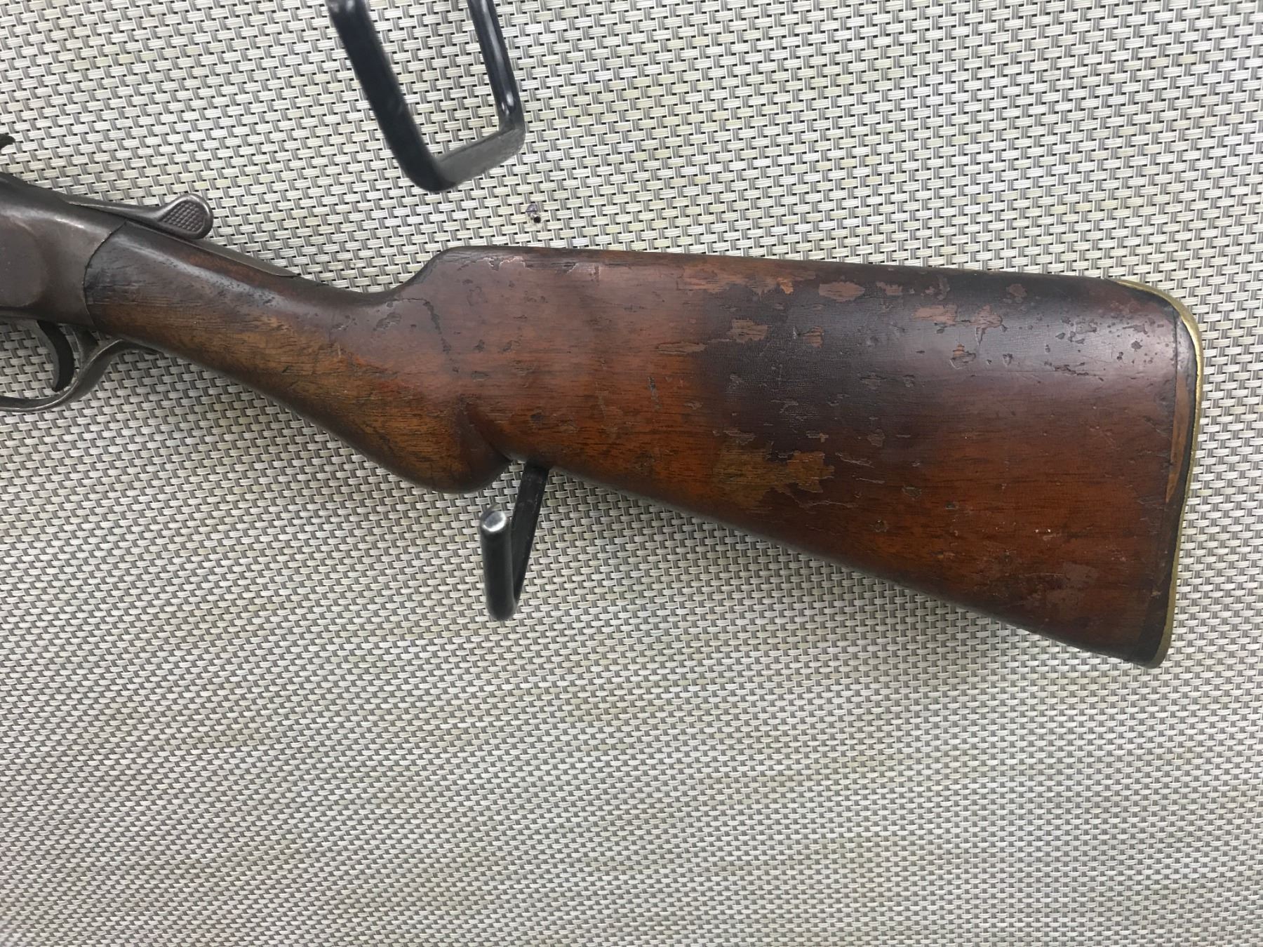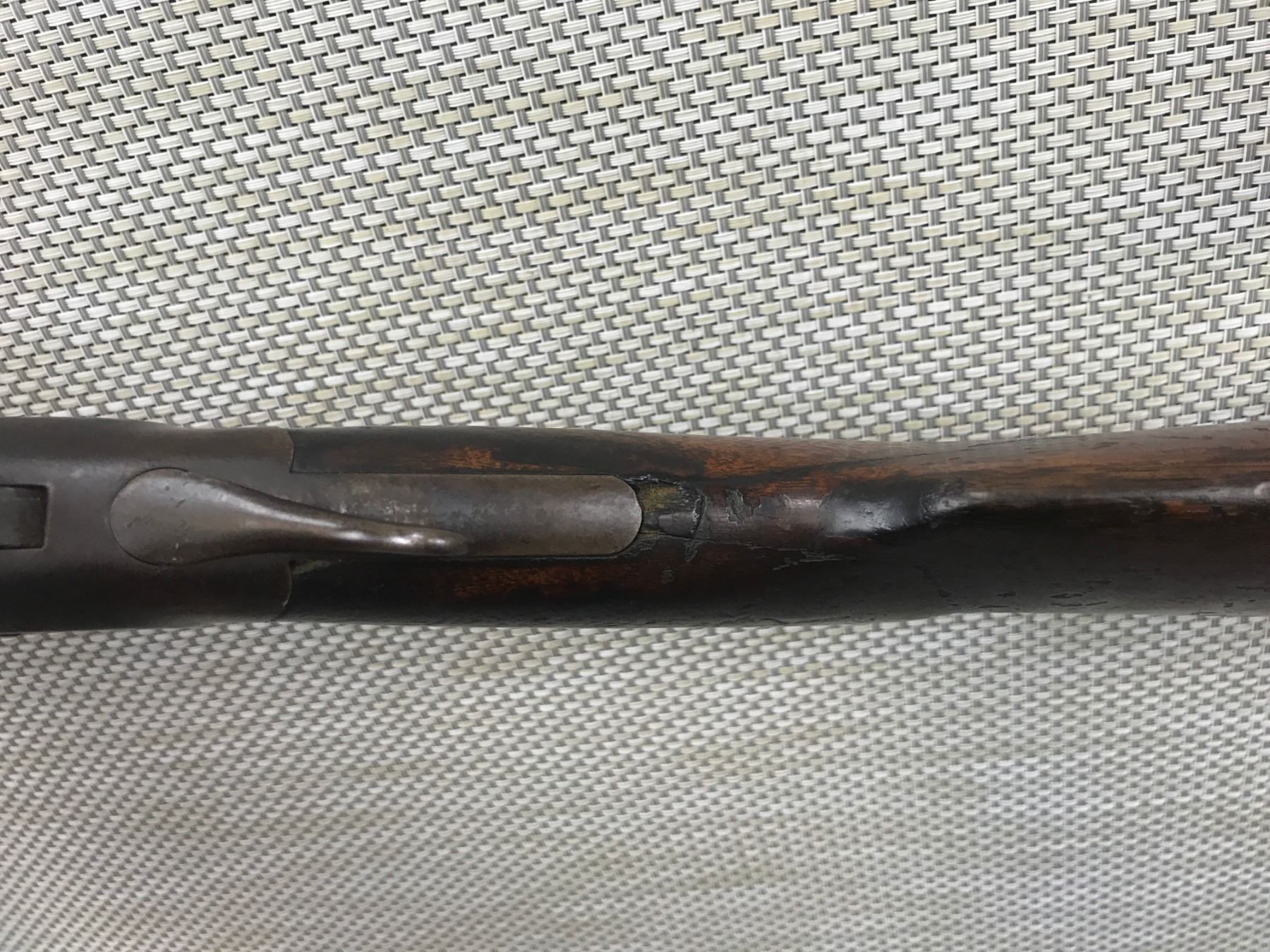 IVER JOHNSON , MODEL: CHAMPION , CALIBER: 16GA X 2 3/4" , PITTED BORE, LOOSE ACTION, CYLINDER BORE, SHOWS SOME HANDLING MARKS , CHIPPED FOREND, HOME MADE BRASS BUTT PLATE, BEAD FRONT SIGHT , BARREL LENGTH: 29" , SERIAL # 9843L , STOCK # 8464 , CONDITION: 3/10 , CLASS: CANADIAN NON RESTRICTED CLASS