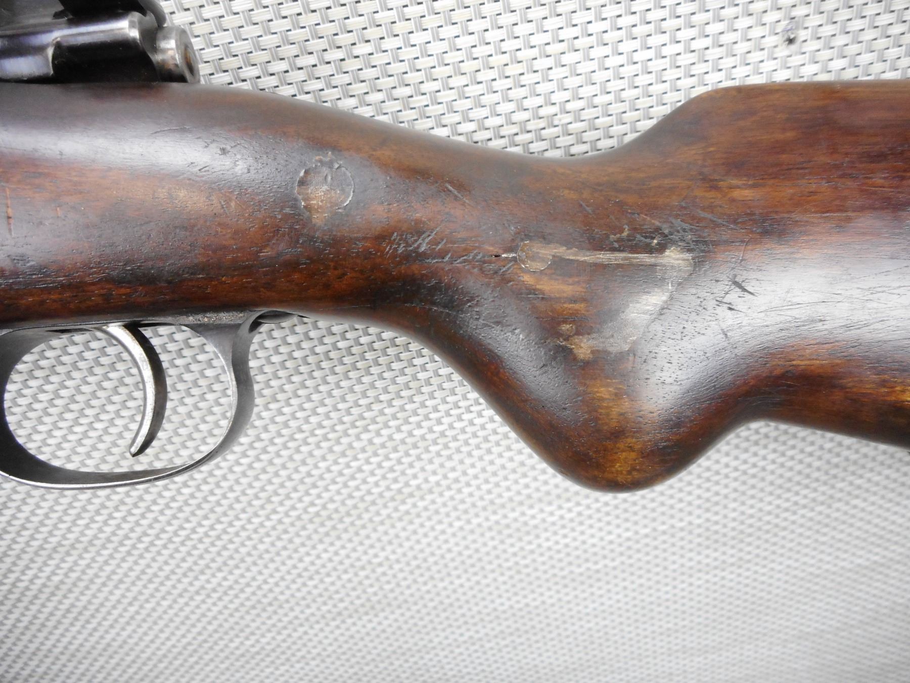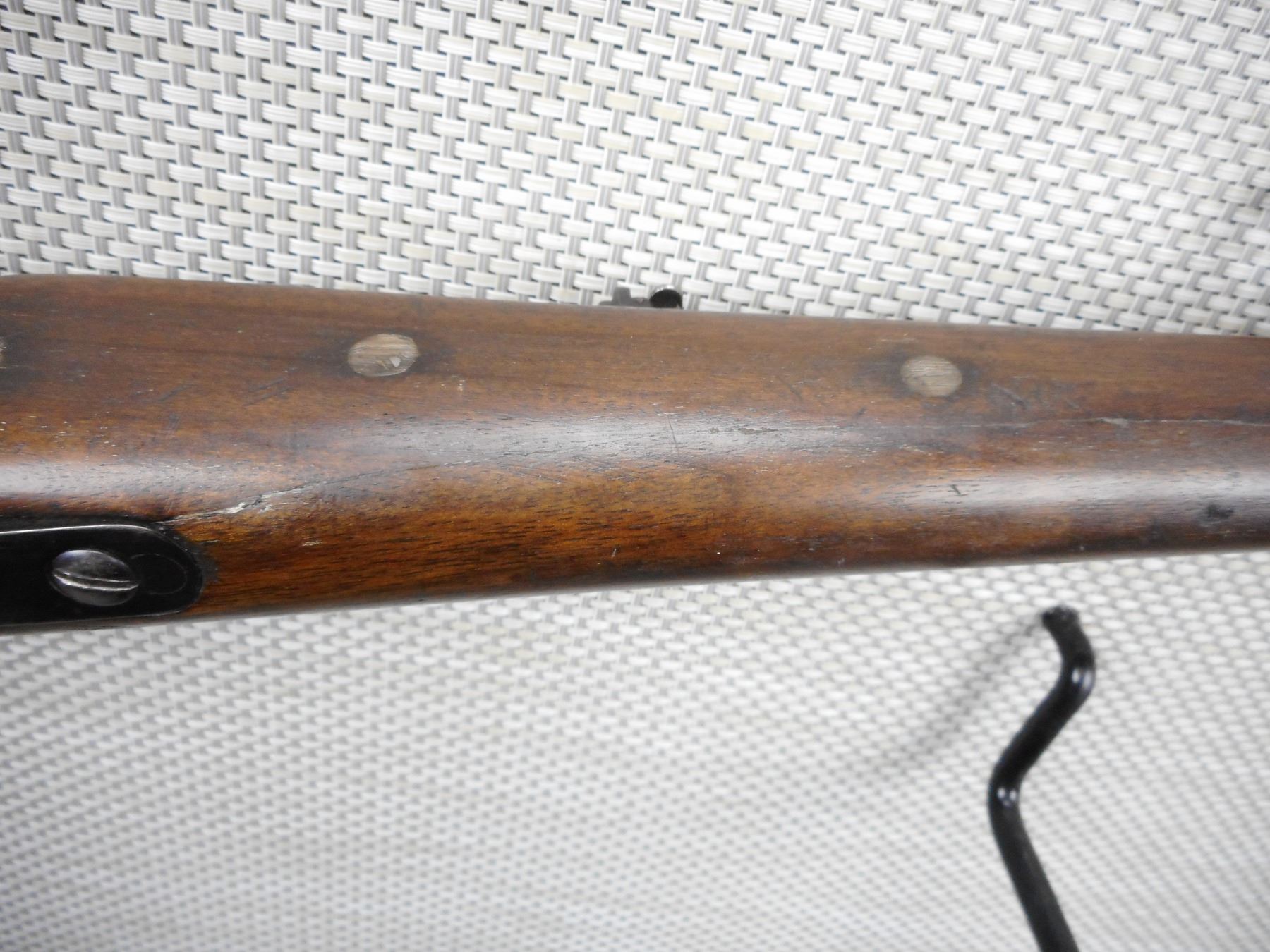GECO , MODEL: M98 SPORTER , CALIBER: 8 X 57 , GOOD BORE, CRACKED AND REPAIRED STOCK AT THE FOREND, RAMP FRONT AND FLIP ADJUSTABLE REAR SIGHT, SHOWS SOME HANDLING MARKS, SLING SWIVEL STUDS, STEEL BUTT PLATE , BARREL LENGTH: 21" , SERIAL # 3348 , STOCK # 8496 , CONDITION: 4/10 , CLASS: CANADIAN NON RESTRICTED CLASS
