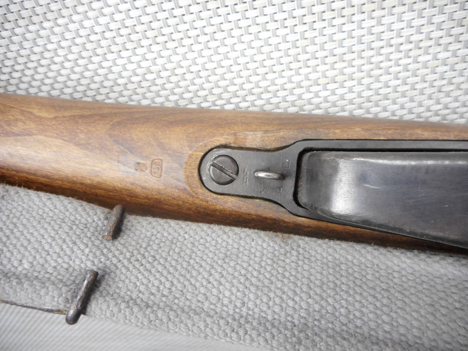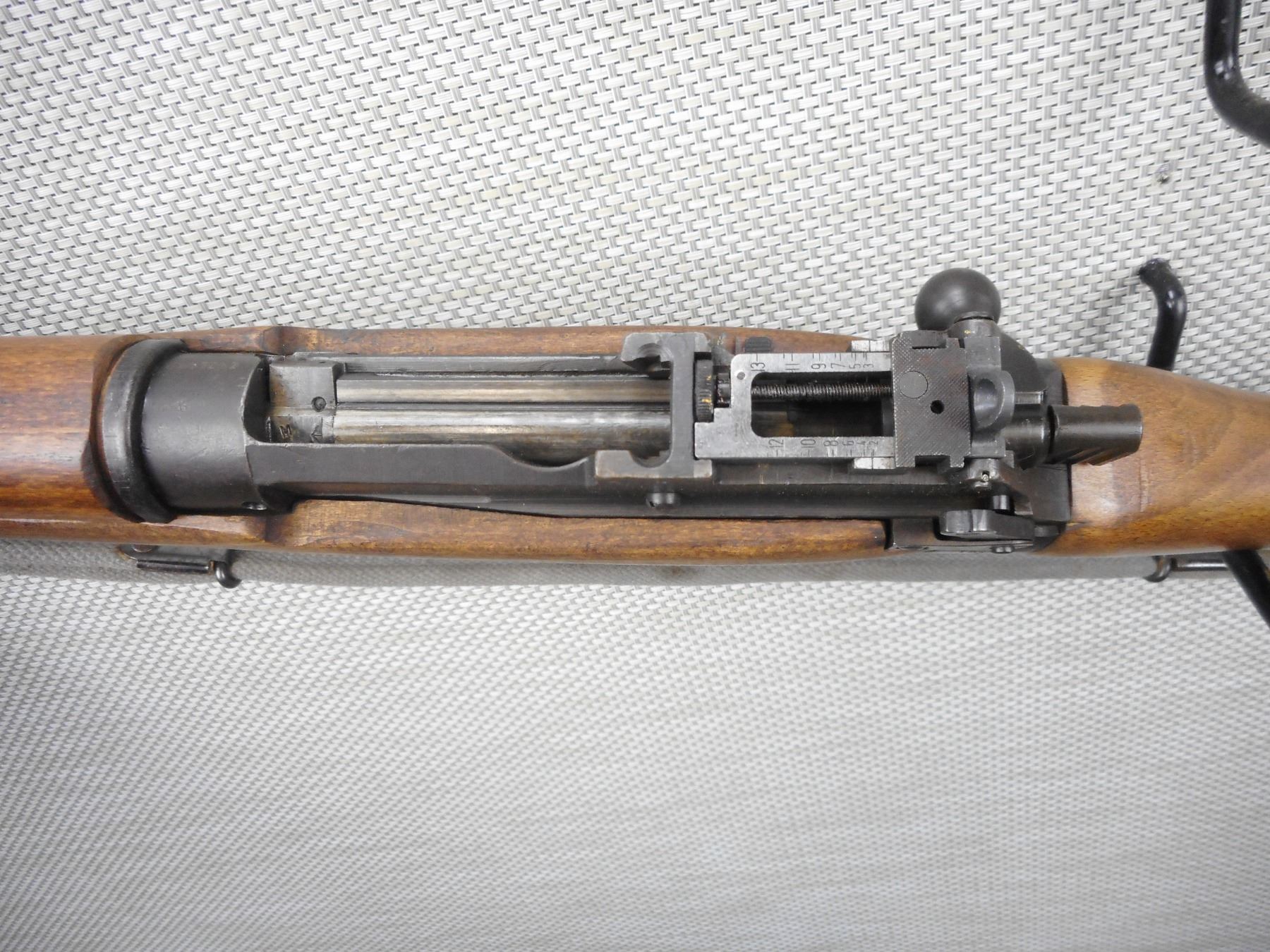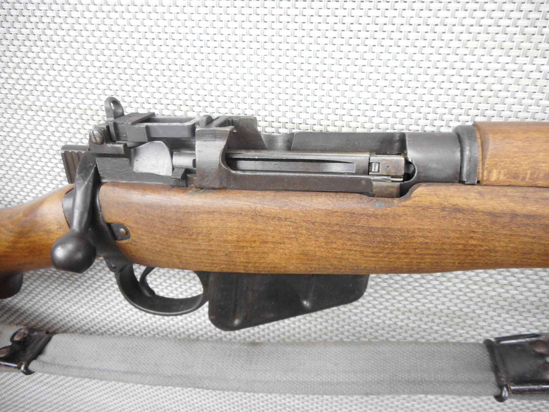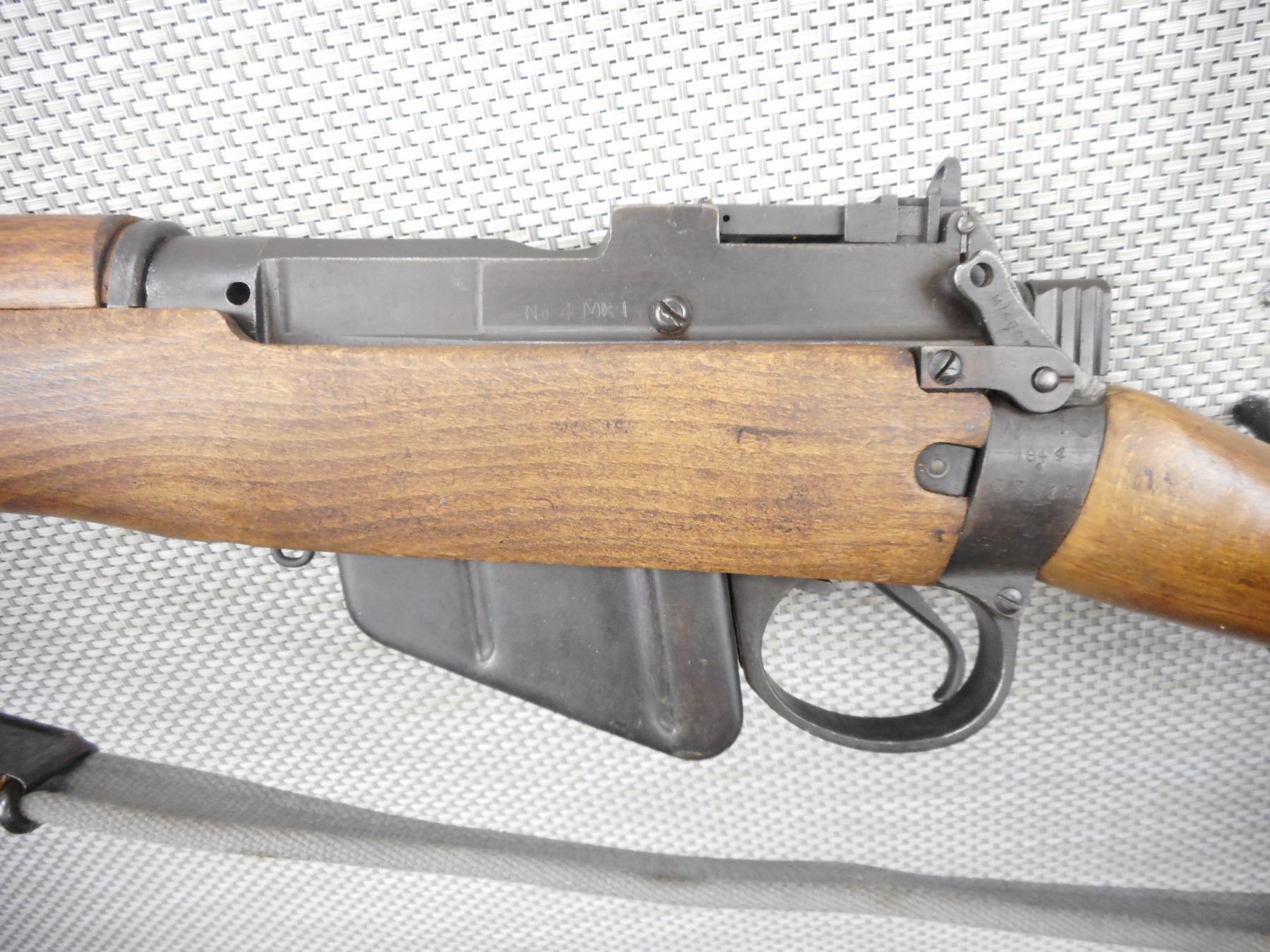 WWII ERA, LEE ENFIELD , MODEL: NO 4 MKI , CALIBER: 303 BR , COMES WITH MAGAZINE, DATED 1944, MISMATCHED BOLT AND RECEIVER BY SERIAL # , BORE IS VERY GOOD, RETAINS FULL MILITARY CONFIGURATION, BARLEY CORN FRONT AND PEEP APERTURE REAR SIGHT, ORIGINAL CANVAS SLING, SHOWS SOME HANDLING MARKS , BARREL LENGTH: 25" , SERIAL # 33813 , STOCK # 8540 , CONDITION: 8/10 , CLASS: CANADIAN NON RESTRICTED CLASS