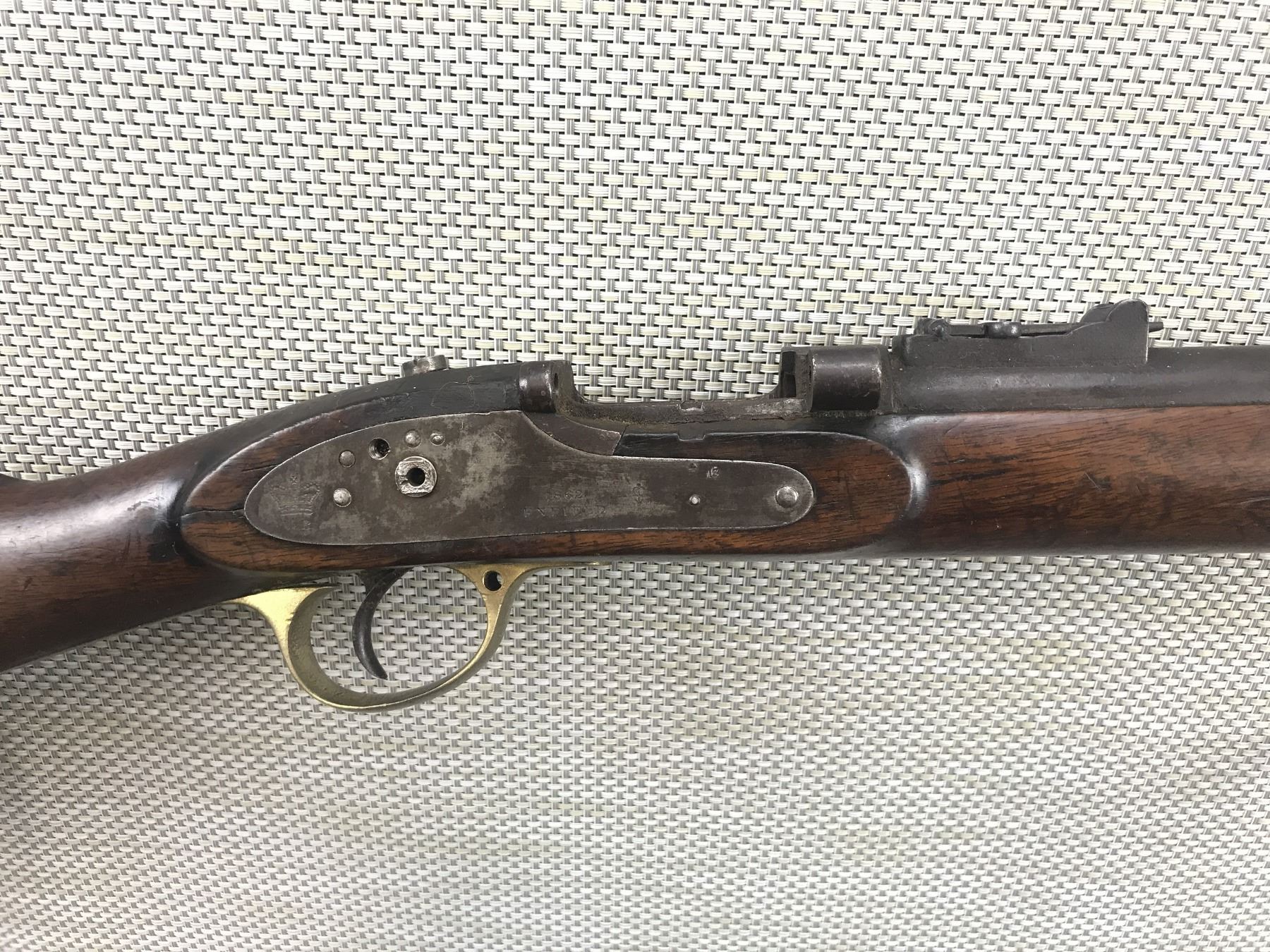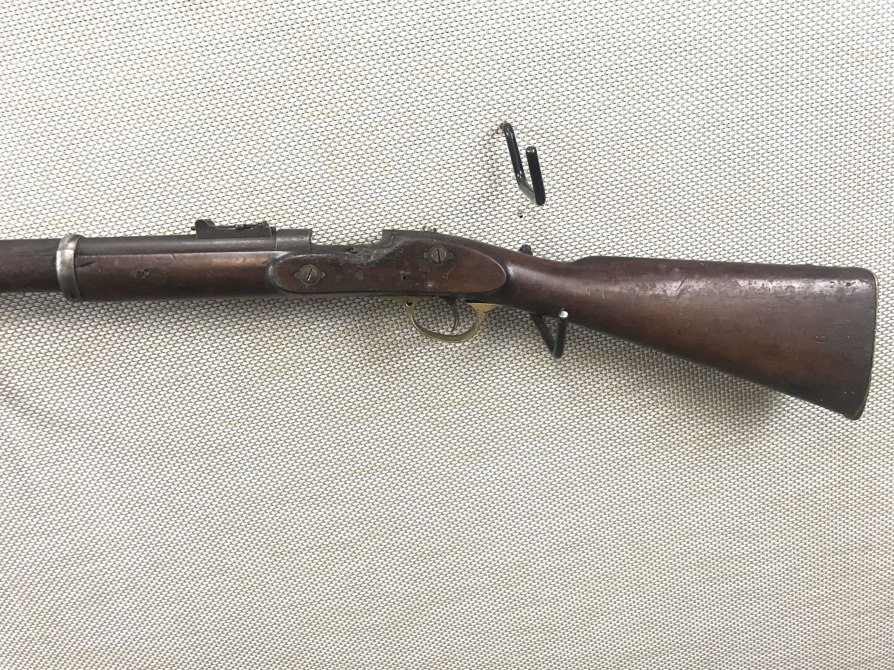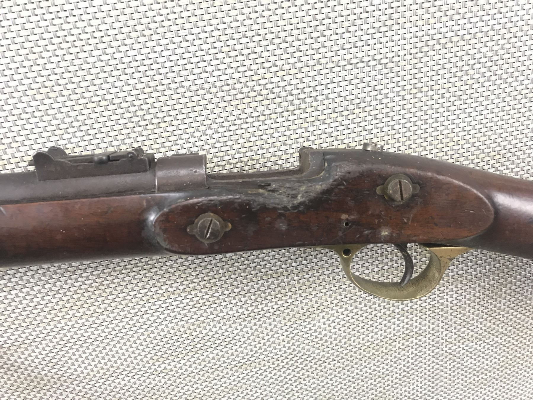 SNIDER ENFIELD , MODEL: MK II* III BAND , CALIBER: 577 SNIDER , MISSING THE BREACH BLOCK ASSEMBLY, HAMMER, AND THE FOREND CAP , DARK BORE, ORIGINAL SIGHTS, STOCK SHOWS EXCESSIVE HANDLING AT THE BREECH, AND IS POSSIBLE CHARRED FROM HEAT , BARREL LENGTH: 39" , SERIAL # N/A , , CONDITION: ANTIQUE PARTS GUN , CLASS: CANADIAN ANTIQUE CLASS