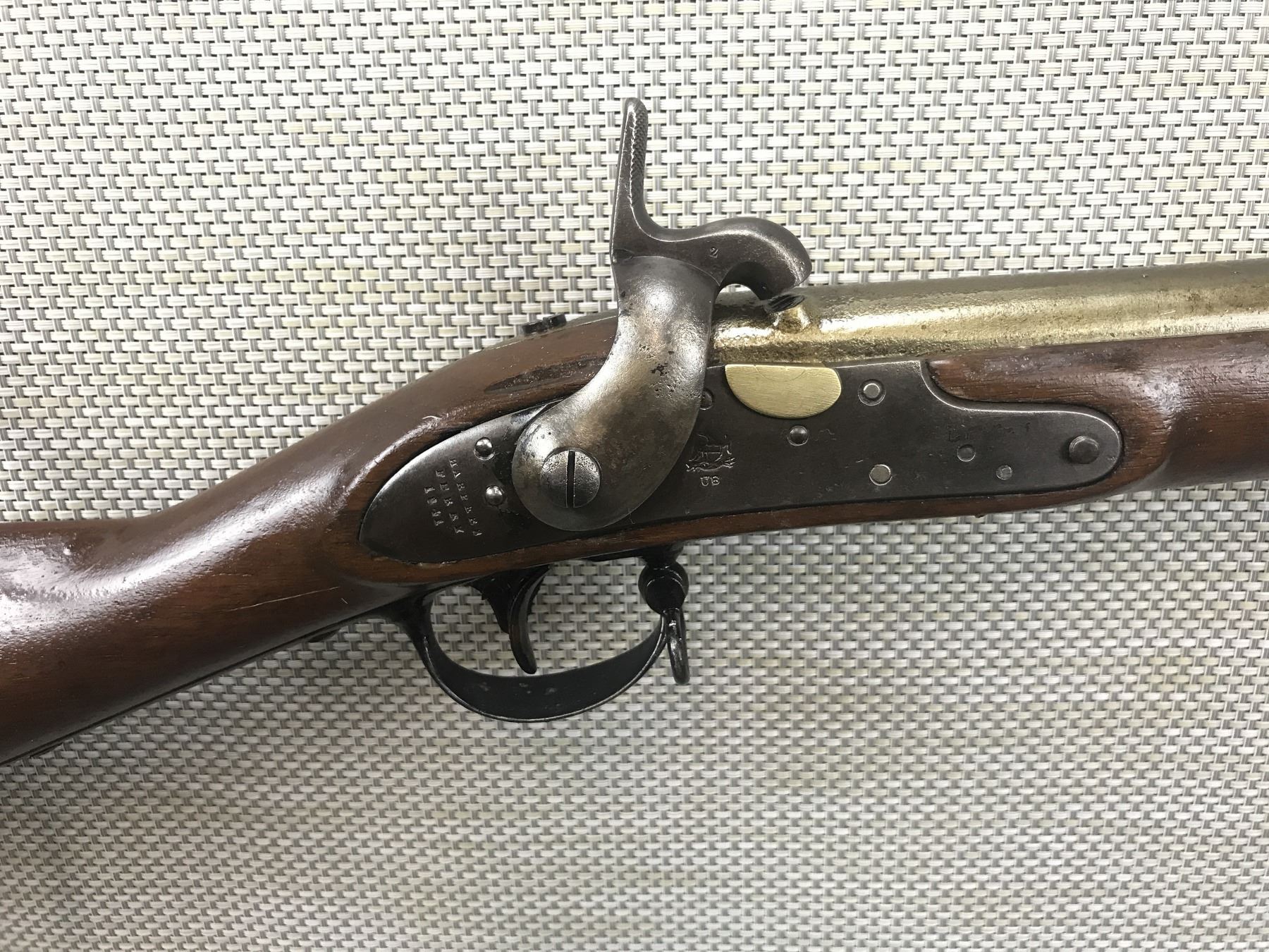 PERCUSSION , MODEL: FOWLING GUN , CALIBER: 69 CAL PERC , ORIGINALLY A HARPERS FAIRY DATED 1841 US MARKED THAT IS CONVERTED FROM FLINTLOCK TO PERCUSSION, TOTAL FIREARM IS VARNISHED AND THE LOCK IS PAINTED, MISSING THE NIPPLE, SMOOTH BORE, GOOD BORE, NO SIGHTS, MISSING THE RAM ROD, SHOWS EXTENSIVE HANDLING MARKS , BARREL LENGTH: 32" , SERIAL # N/A , , CONDITION: ANTIQUE 4/10 , CLASS: CANADIAN ANTIQUE CLASS