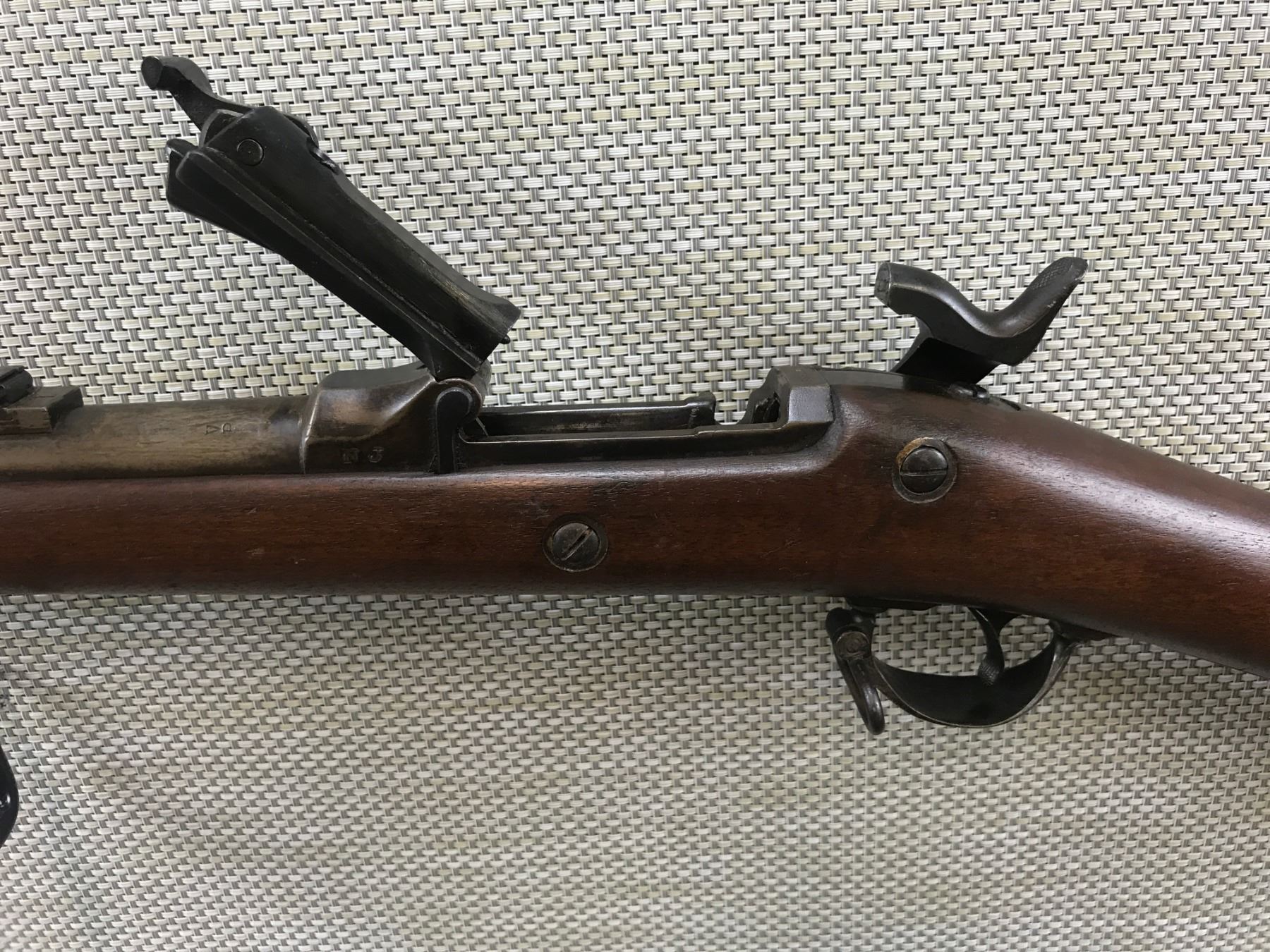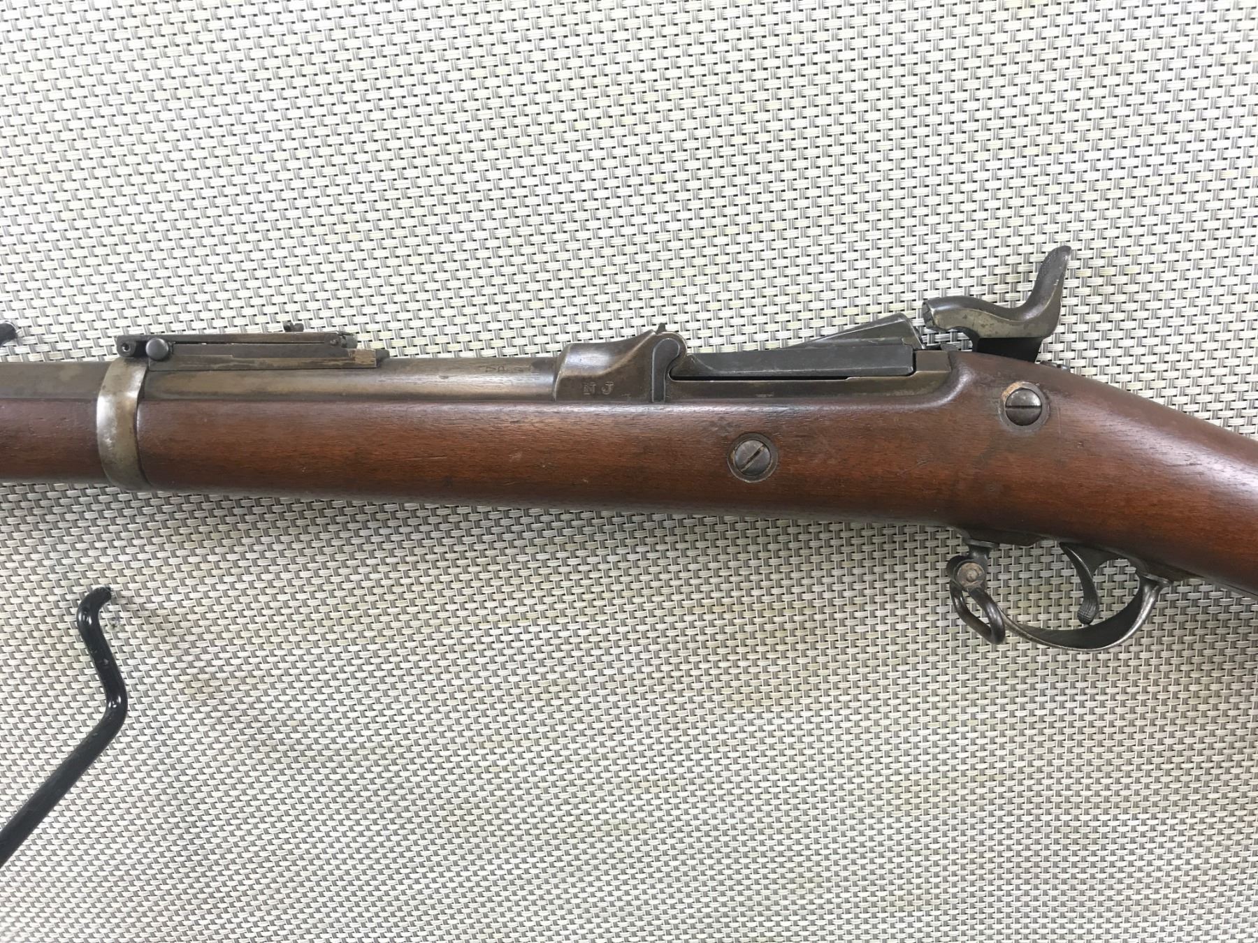 US SPRINGFIELD , MODEL: 1884 TRAP DOOR , CALIBER: 45-70 GOVT , GOOD BORE HAS MINOR TO MEDIUM SCATTERED PITTING, BLOCK FRONT AND FULLY ADJUSTABLE BUFFINGTON REAR SIGHTS, MARKED NJ FOR NEW JERSEY, SLING LOOPS, RETAINS FULL MILITARY CONFIGURATION, REPLACED RAM ROD, SHOWS SOME HANDLING MARKS , BARREL LENGTH: 32" , SERIAL # 365120 , , CONDITION: ANTIQUE 6/10 , CLASS: CANADIAN ANTIQUE CLASS