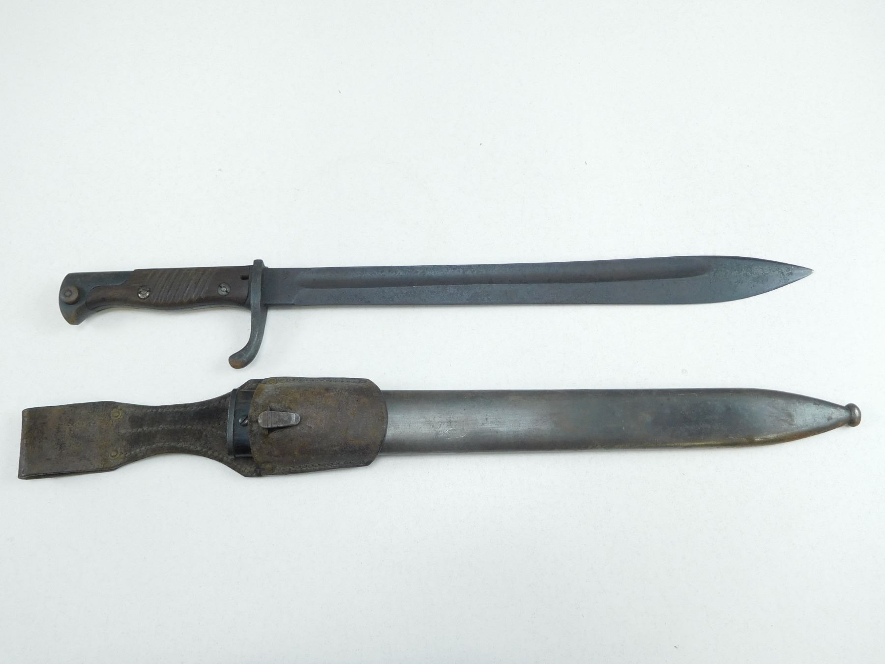 GERMAN 98/05 BUTCHER BAYONET, WITH SCABBARD , METAL SCABBARD, LEATHER FROG