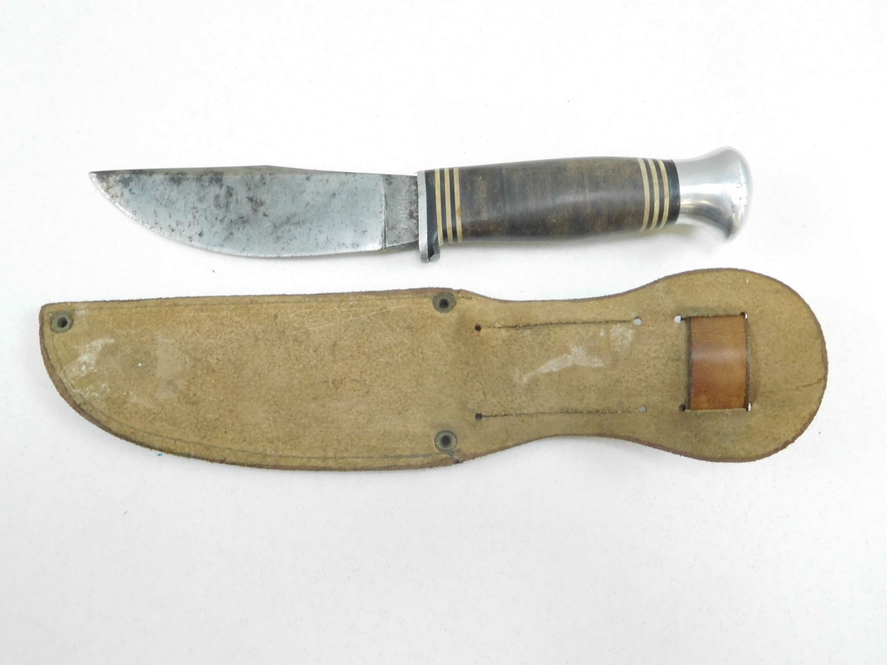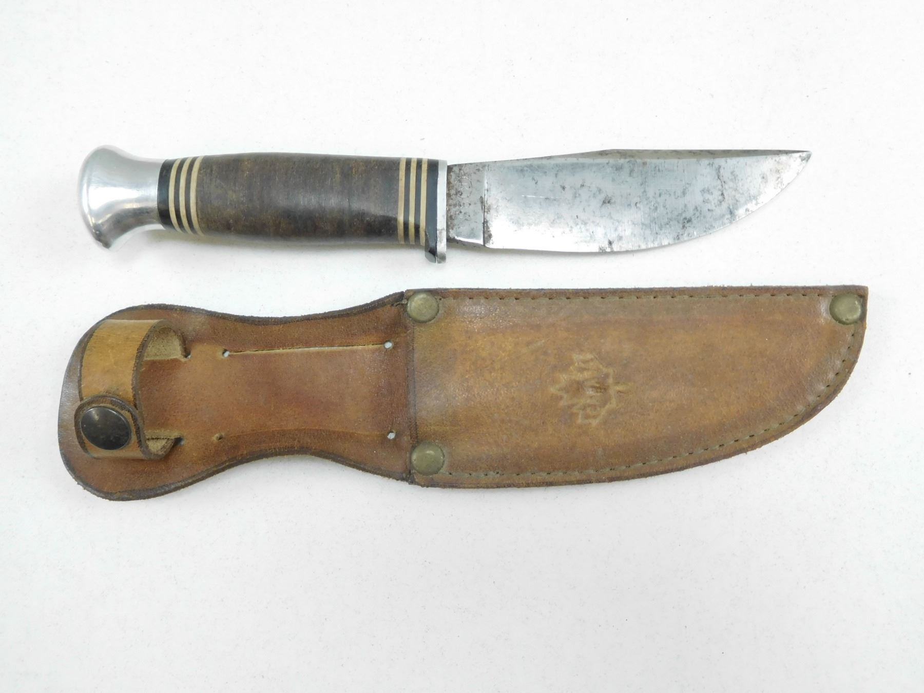 KINFOLKS K380 HUNTING/SKINNING KNIFE WITH SHEATH , LEATHER SHEATH STAMPED CANADA