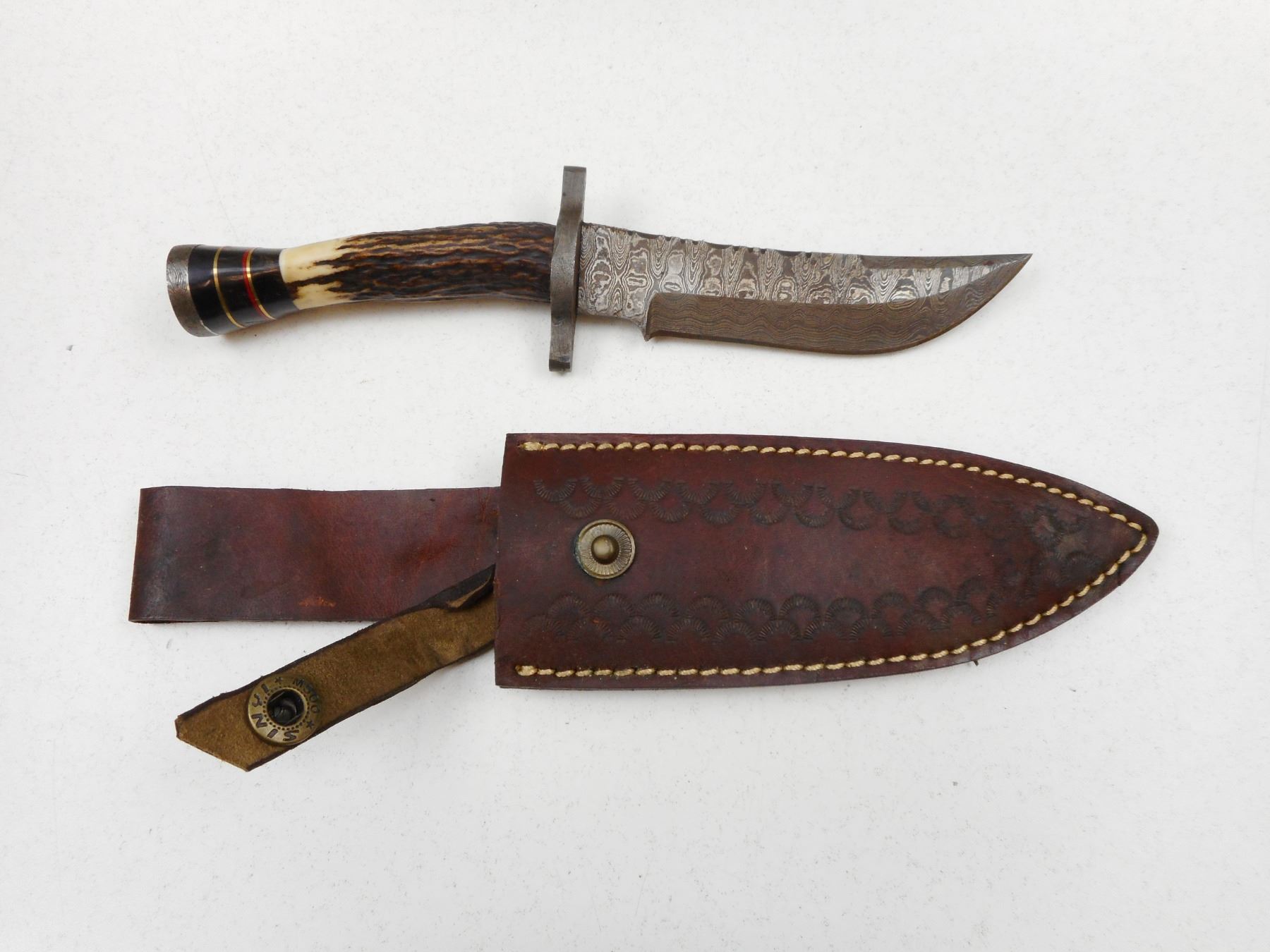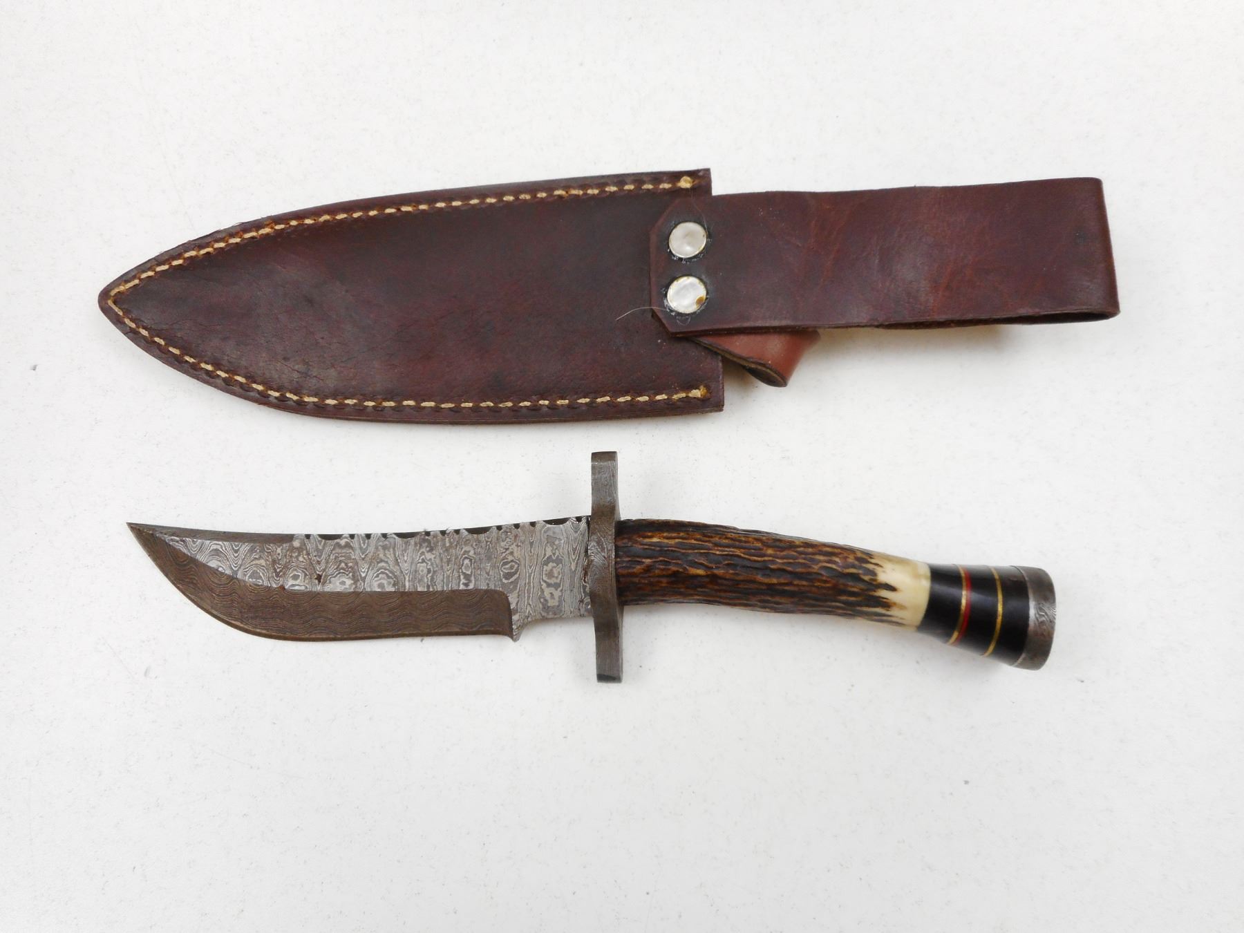 Lot 1638 DAMASCUS BLADE HUNTING KNIFE WITH SHEATH