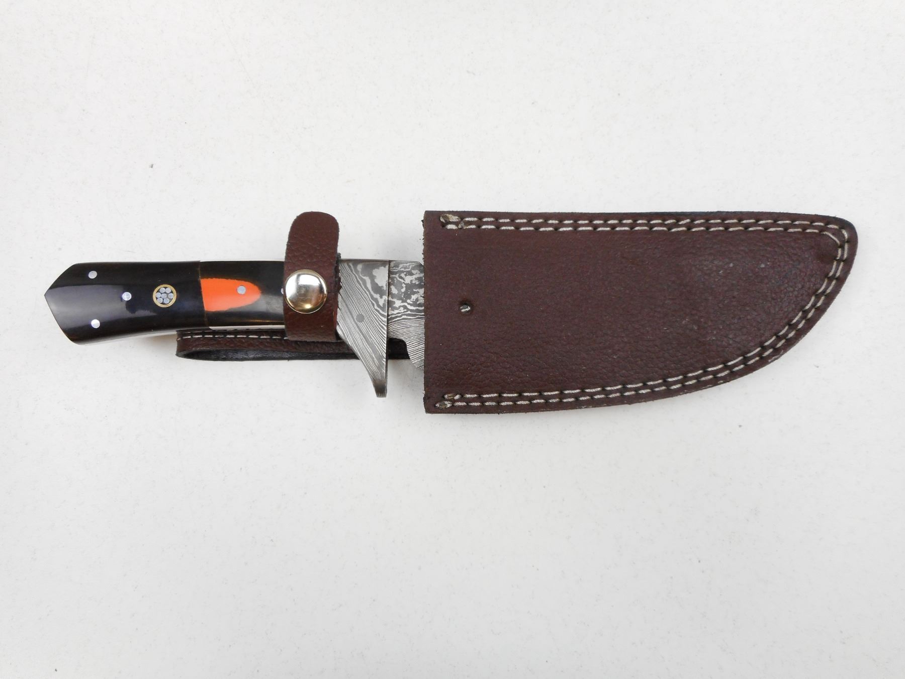 DAMASCUS BLADE HUNTING KNIFE WITH SHEATH , FIXED BLADE WITH LEATHER SHEATH