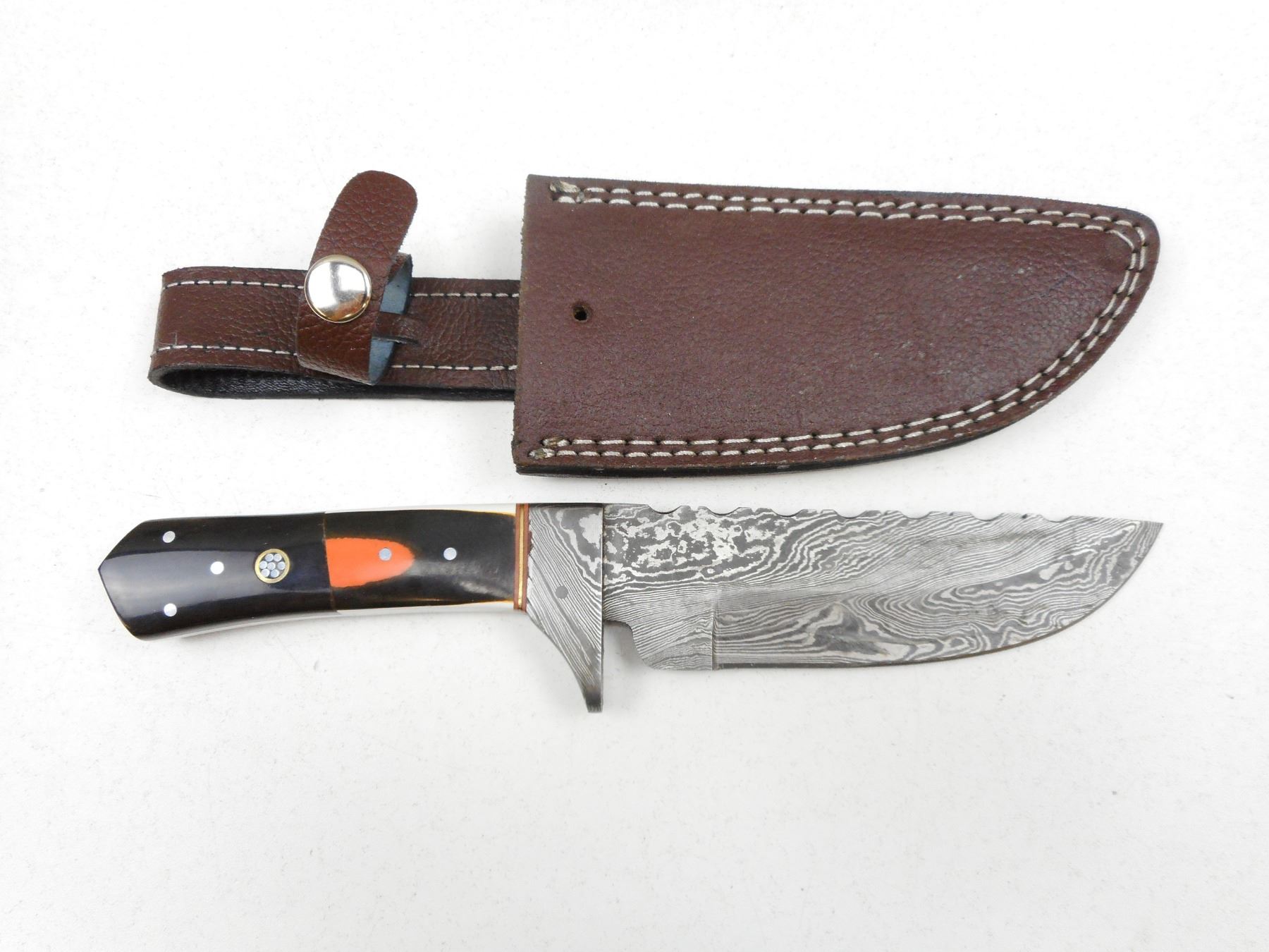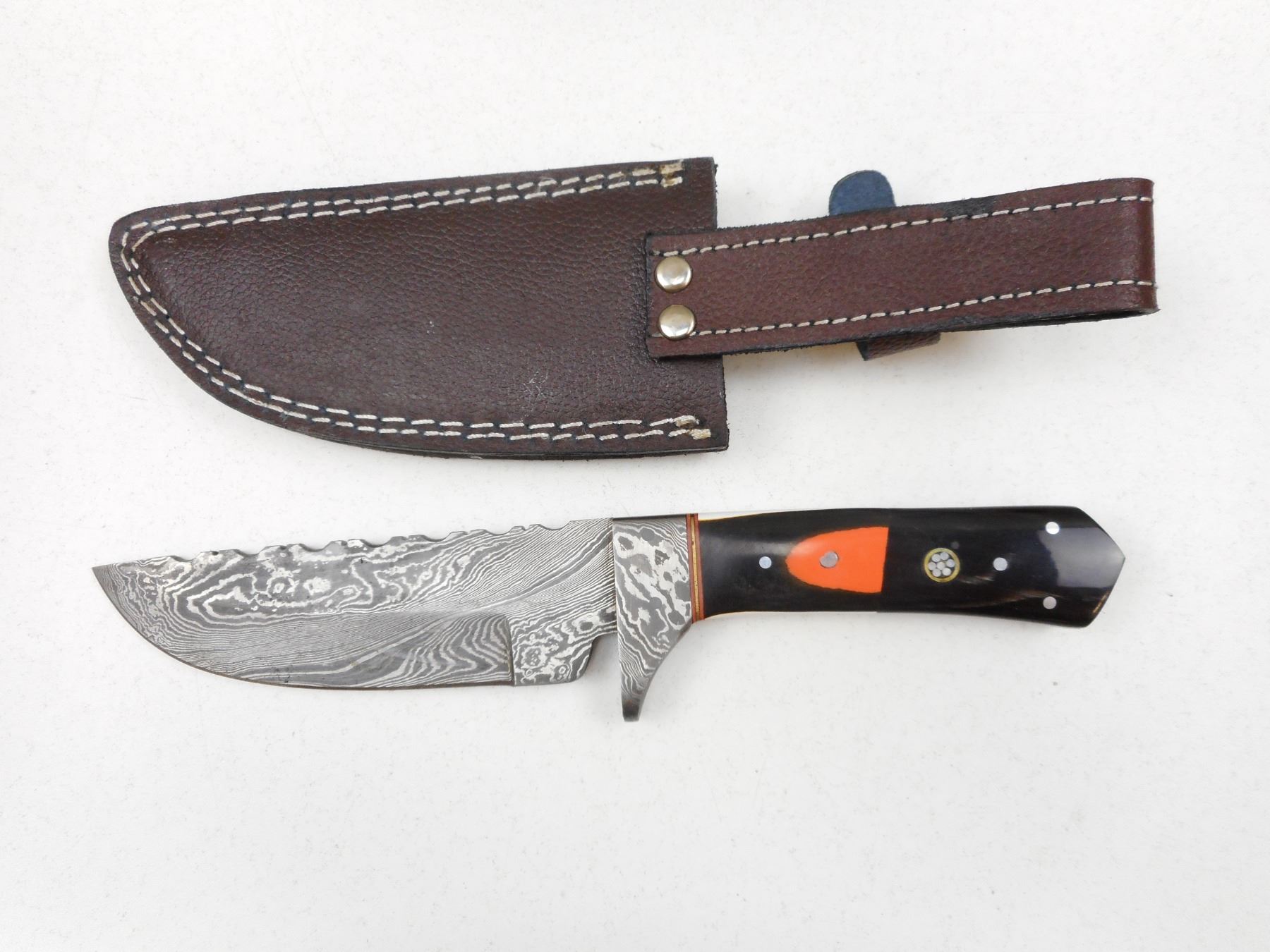 Lot 1640 DAMASCUS BLADE HUNTING KNIFE WITH SHEATH