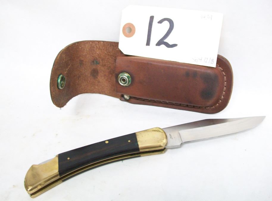 Lock blade, 3 3/4"blade, 8 5/6" overall length Leather case