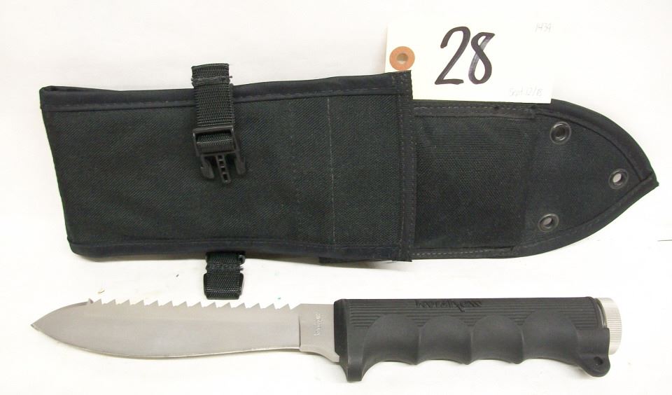 Task Force Series (1005) Double crosscut blade (6 3/4"), Non-reflective Overall length 12 5/8" With compass, and waterproof survival guide Cordura sheath