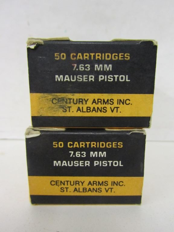 Two 50 round boxes of Century Arms 7.63MM Mauser pistol ammo 100 rounds total