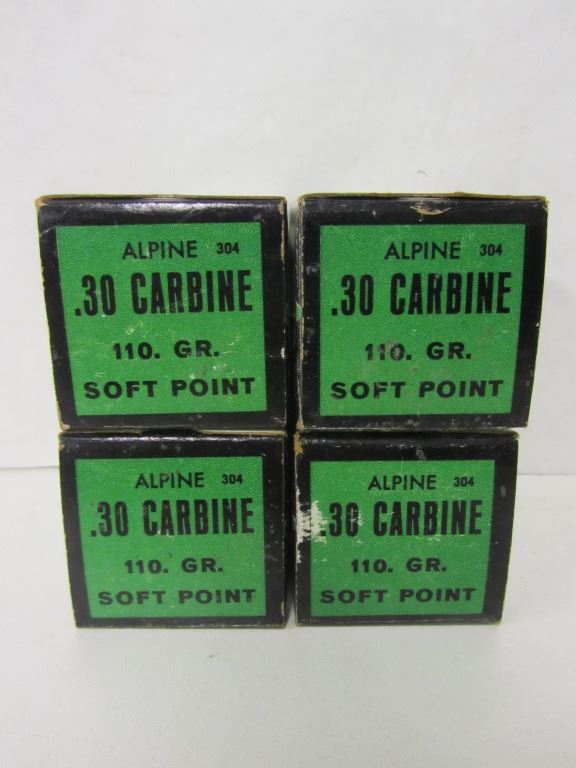 Three 50 round boxes of Alpine 30 Carbine and one 16 round box of Alpine 30 Carbine 166 Rounds total