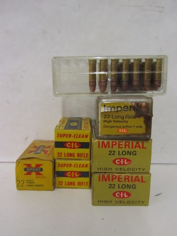 Three 50 round boxes of C-I-L Imperial 22LR, Two 50 round boxes of C-I-L 22LR Super-Clean, One 42 round box of Winchester XPERT 22LR, One 32 round box of unmarked 22LR.
