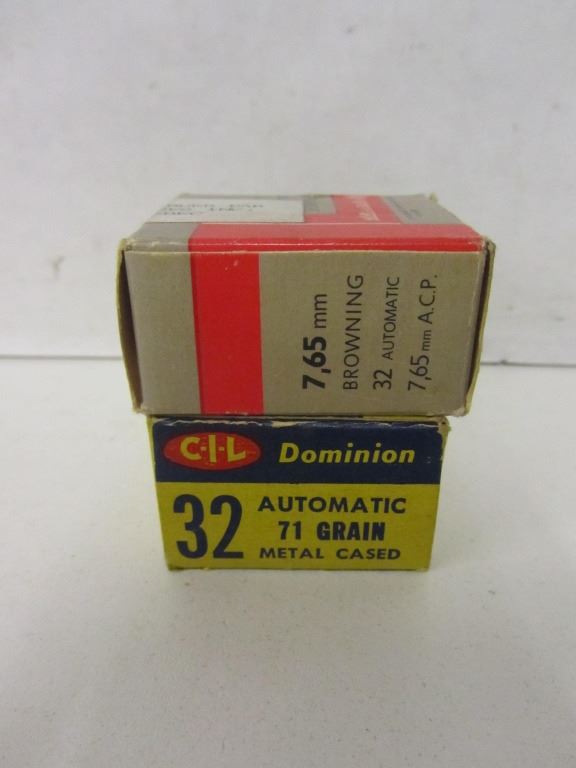 One box of C-I-L Dominion 32 Auto 71gr Metal Cased, One 25 round box of Sellier & Bellot 32 Auto