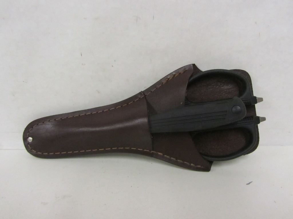 Kershaw model 1120 and 1017 combination scissors and knife with brown leather belt holster