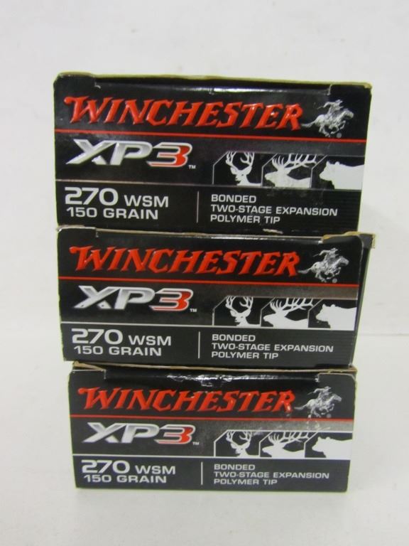 Three 20 round boxes of Winchester XP3 270 WSM 150gr Bonded Two Stage Expansion Polymer Tip