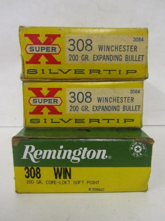Two 20 round boxes of Winchester 308 Win 200gr Expanding Bullet, One 20 round box of Remington 308 Win 180gr Core-Lokt Soft Point.