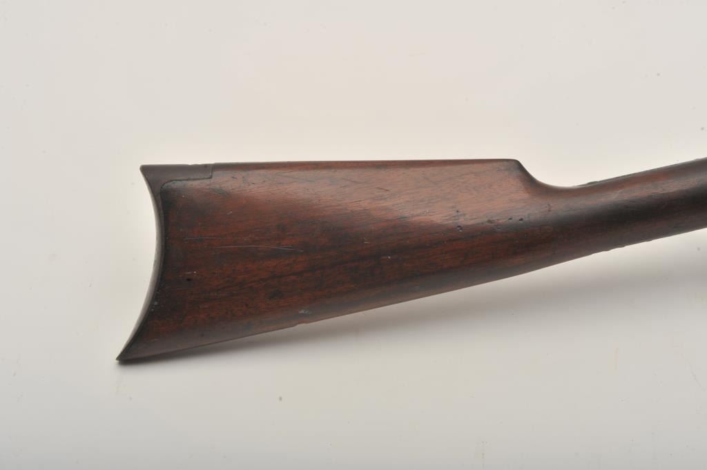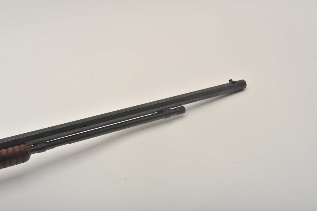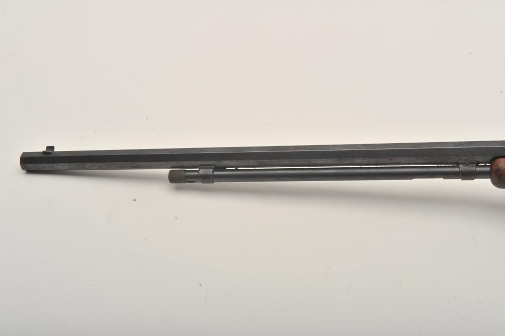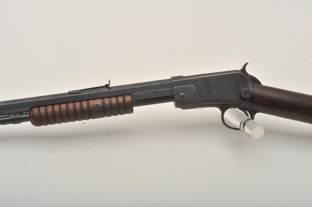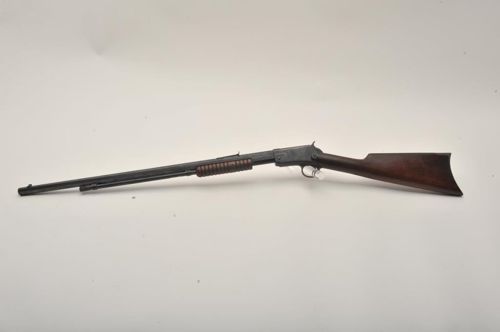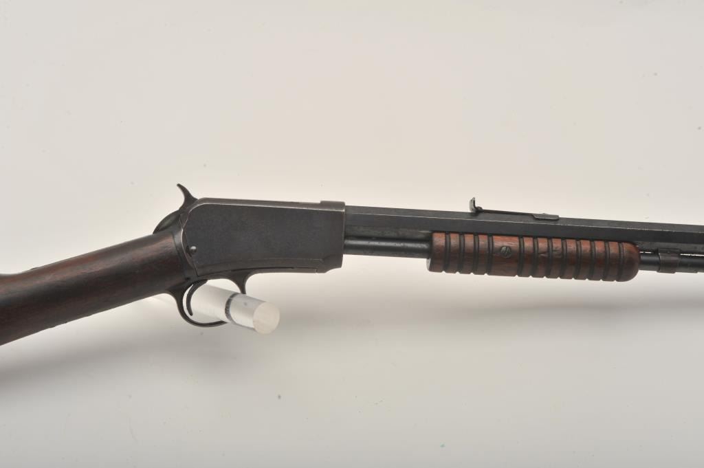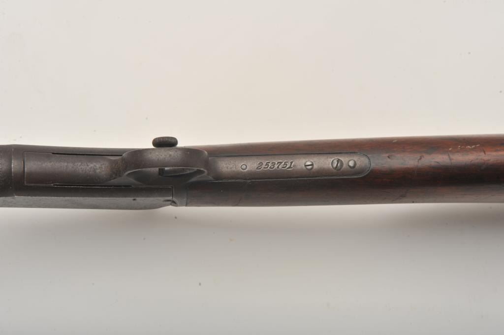 Winchester Model 1890 pump action rifle, .22 Long caliber, 24” octagon barrel, blued finish, wood stocks, S/N 253751, in overall good to very good condition displaying the majority of its original muted blued finishwith scattered pinprick pitting, good bore, crisp action, good markings and good to very good wood with some scattered minor mars and scratches from carry and storage. (C&R). Est.: $260-$520.