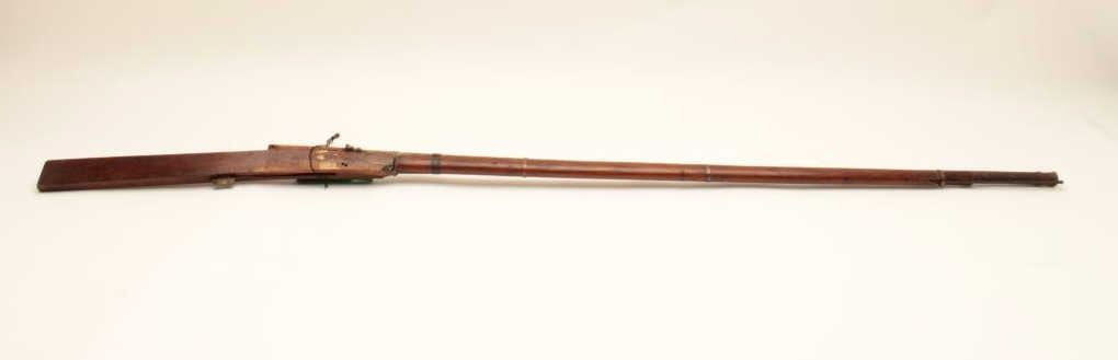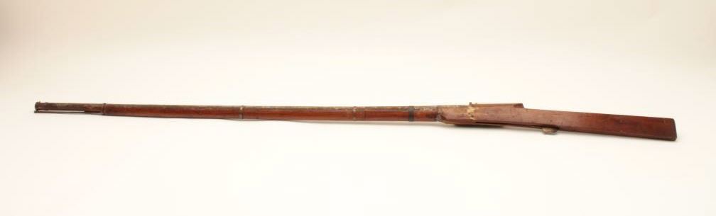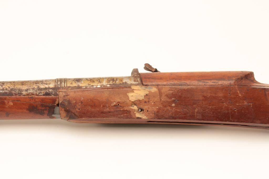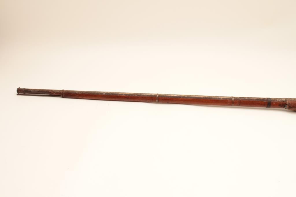 Very long Indian matchlock musket measuring approximately 5’9” in fine to excellent condition. Minor breaks to the wood and aging. (Antique) Est.: $250-$500