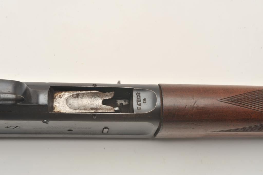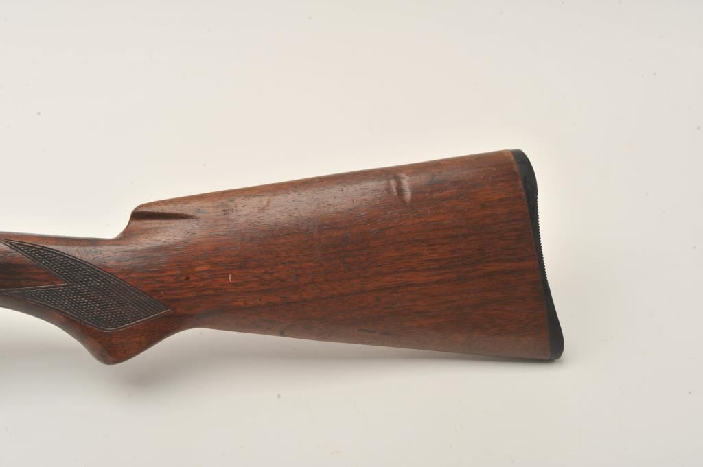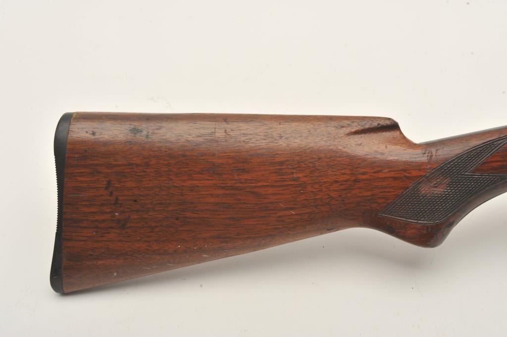 Savage semi-automatic shotgun, 16 gauge, 30” barrel, blued finish, checkered wood stocks, S/N 16-85176, in overall good condition with considerable muted original blued finish, some light scattered surface erosion, good to very good bore, crisp action, good markings and good wood with some scattered old mars and scratches. (Modern). Est.: $150-$300.