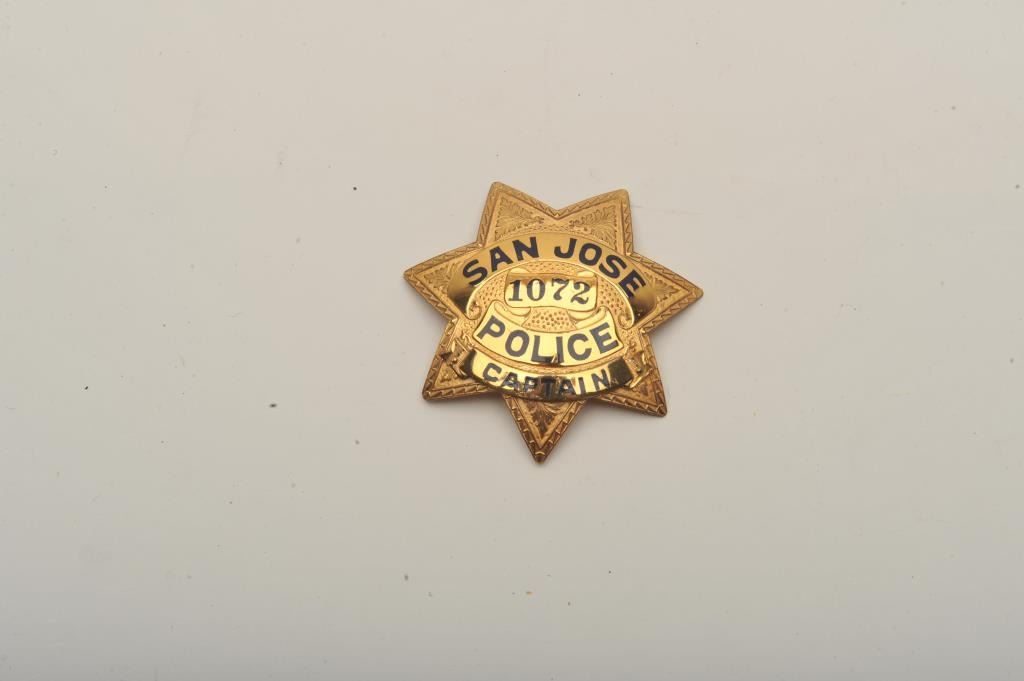 7-point pin star badge marked San Jose Police Captain #1072 (hallmark The Ed Jones Co./Oakland, CAL). Est.: $150-$300.