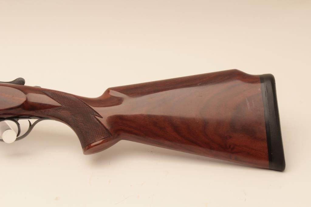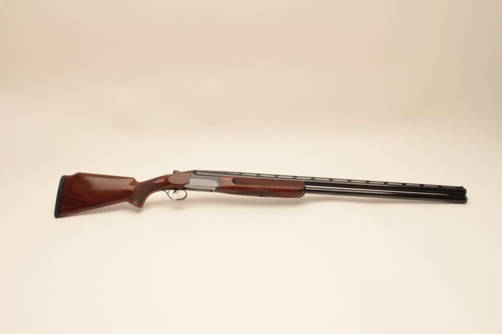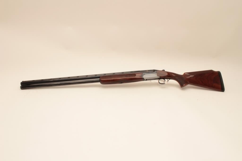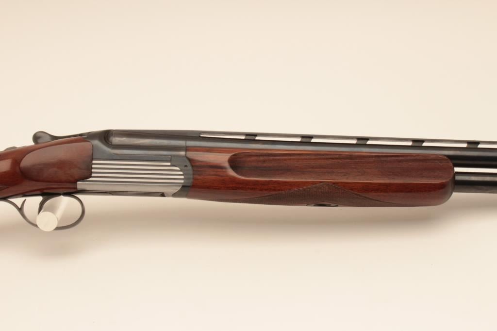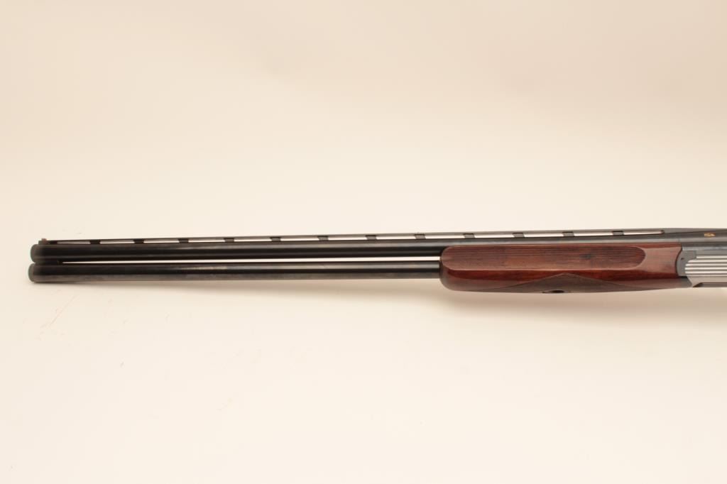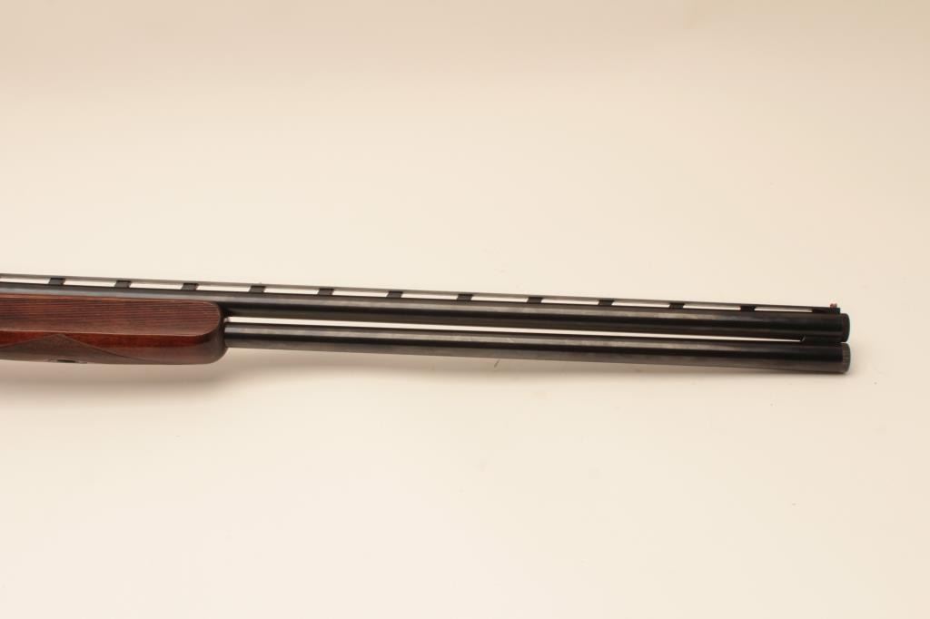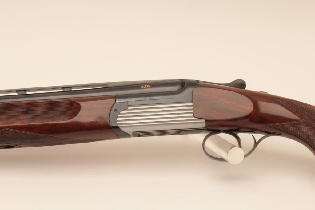 Perazzi MT-6 Over/Under Trap shotgun in 12GA with 31 ½” barrels, 9 screw in chokes and wrench. Near fine used condition 95%-98% overall. The wood shows minor marks and use. With luggage case and numbered certificate(Matching), S/N 102837. (Modern) Est.: $3000-$6000