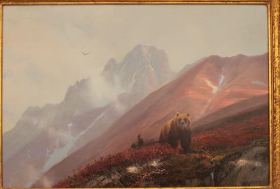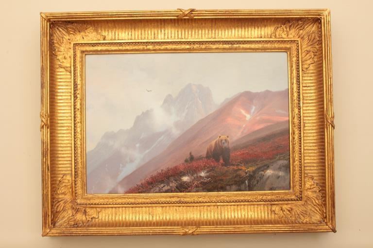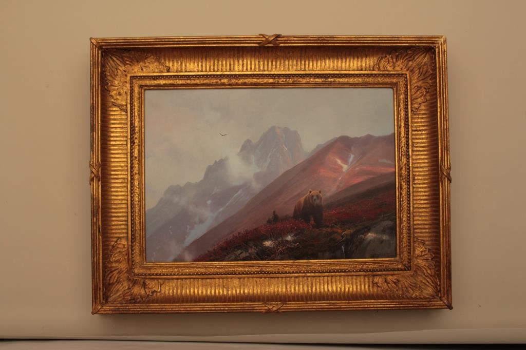 Original oil painting on board signed lower right Michael Coleman. Measures 13” x 19 3/8”. “Golden Bear in High Country”. Painted in 2000 for Las Vegas 1 man art show hosted by Little John’s. Excellent condition. Est.:$3000-$6000