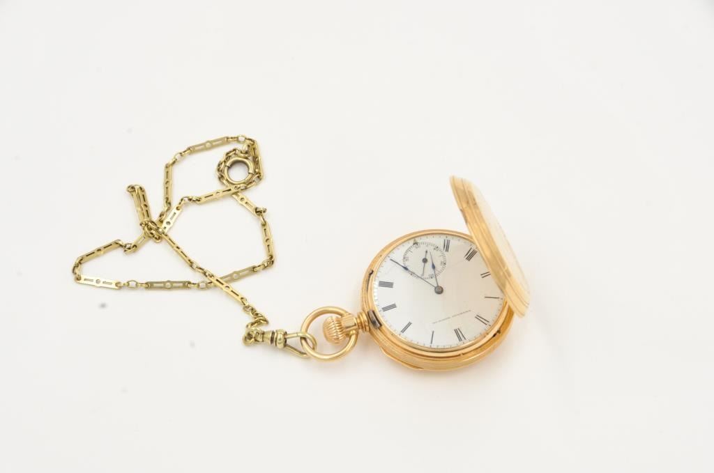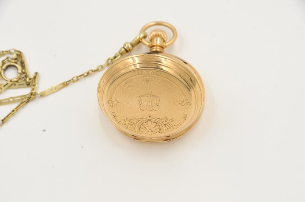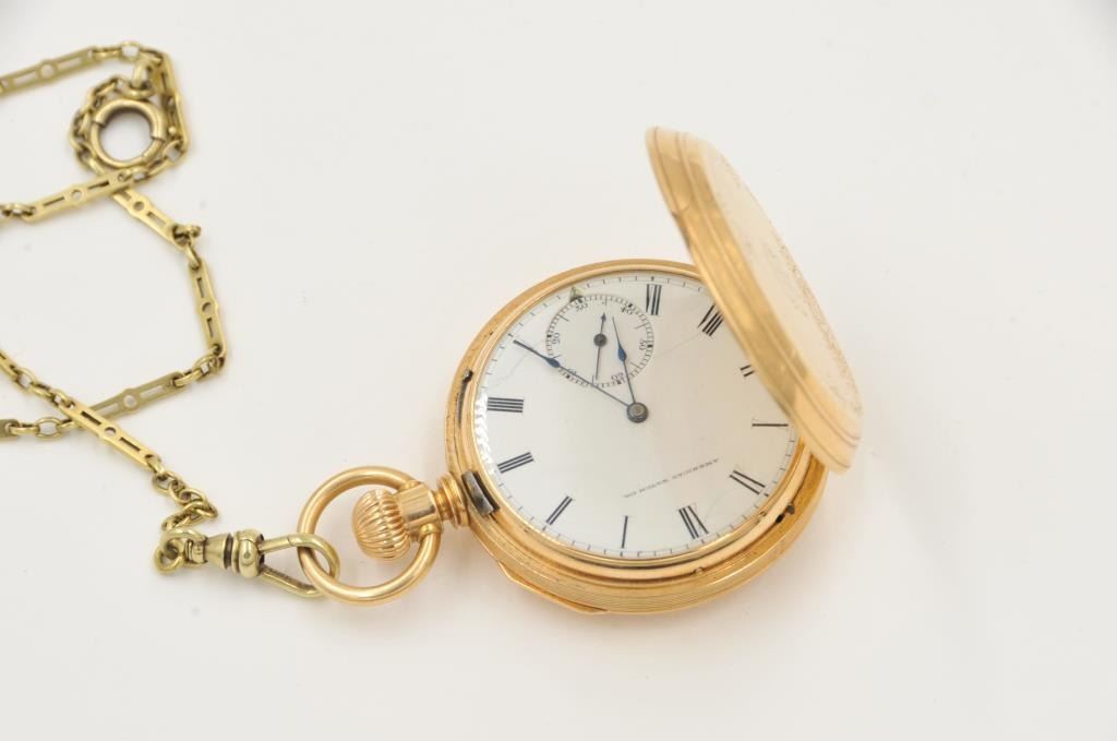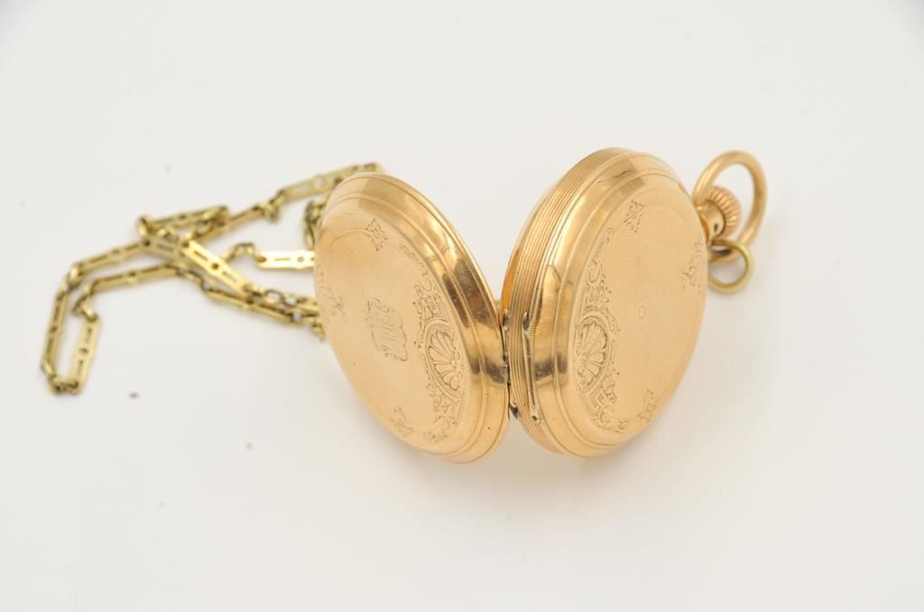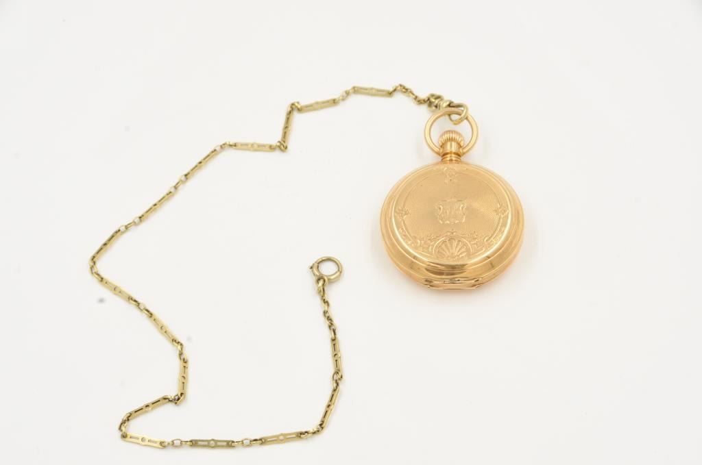 One solid gold pocket watch by American Waltham watch company, in fine working condition weighs 67gms with the movement. Est:$1000-1500