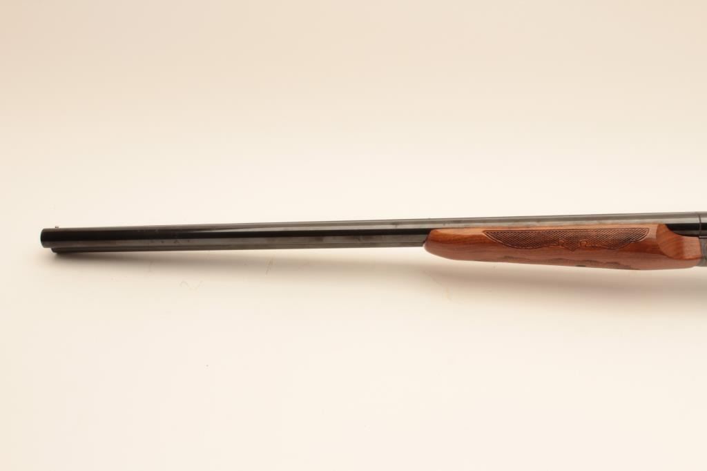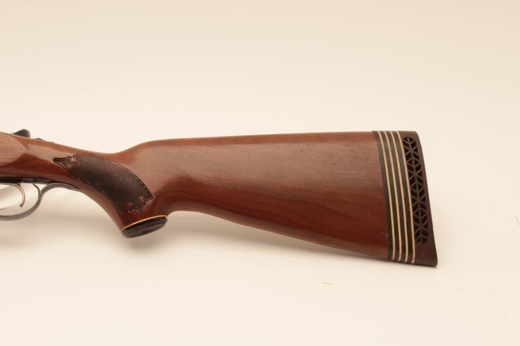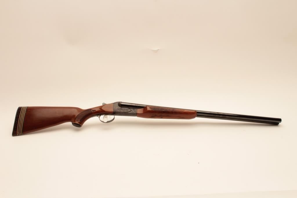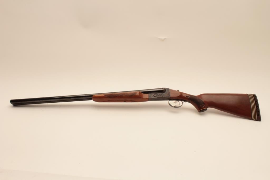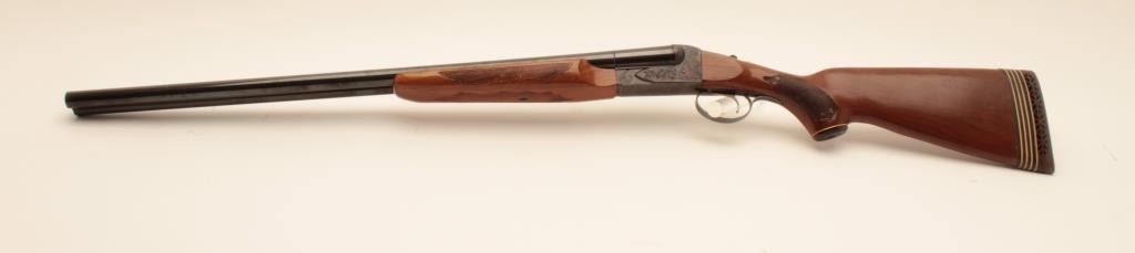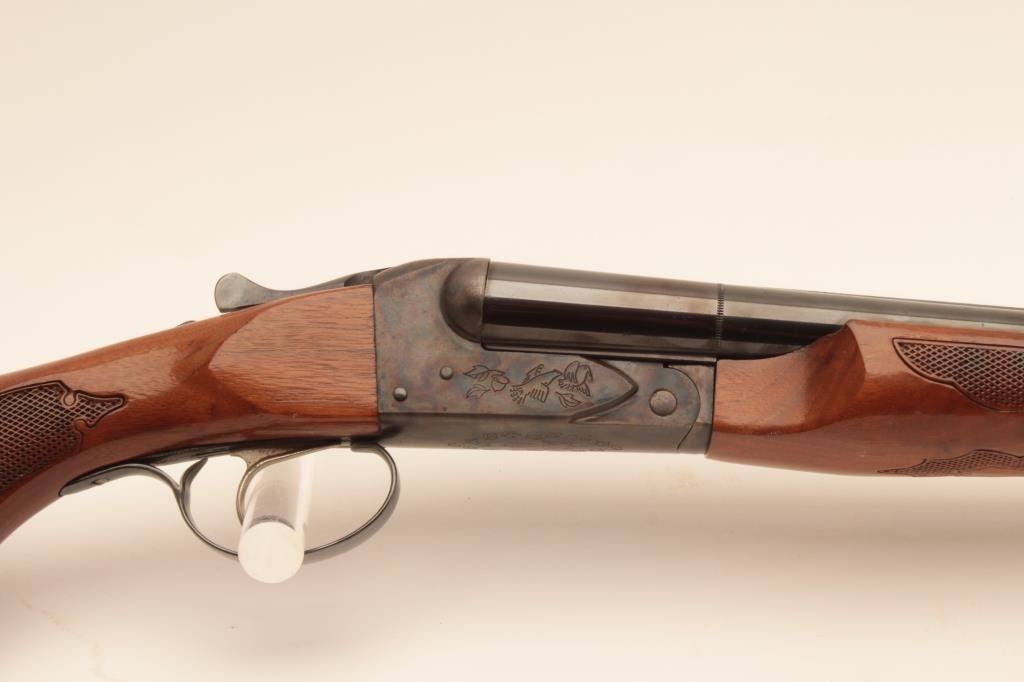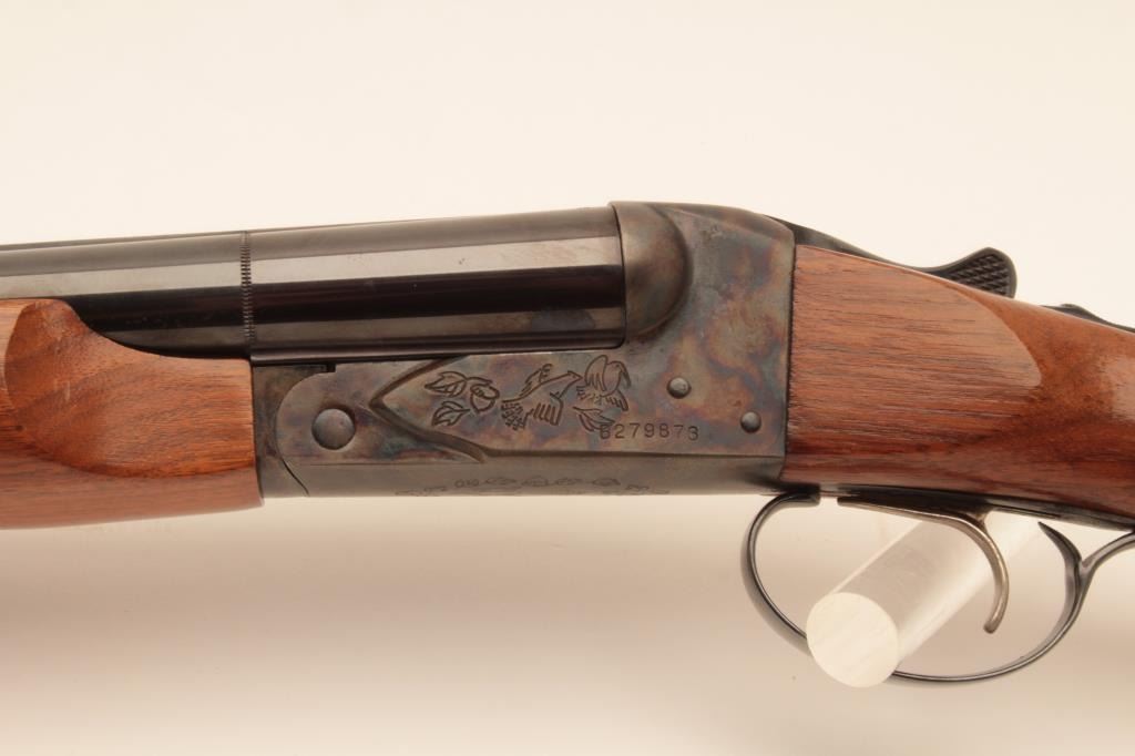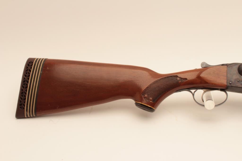 Savage Model 550 SxS shotgun, #B279873, 12 Ga, 28" vent rib barrels, single trigger, blued with case hardened frame, checkered stock with rubber buttpad, LOP is 15 1/4". Shotgun is in near fine condition, with justa few small spots of erosion on the left barrel, forend has a small chip in inside of right rear. Bores are excellent, action is crisp. (Modern) Est. $250-500