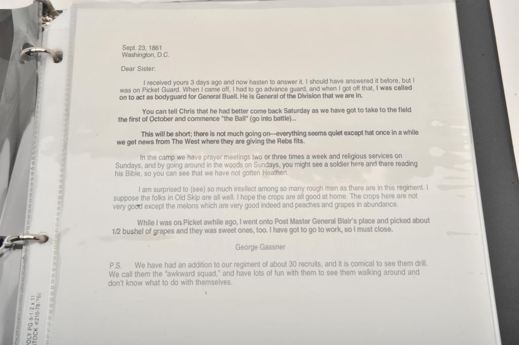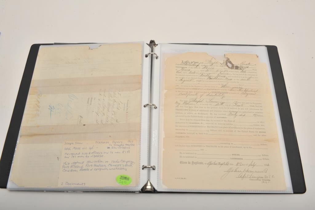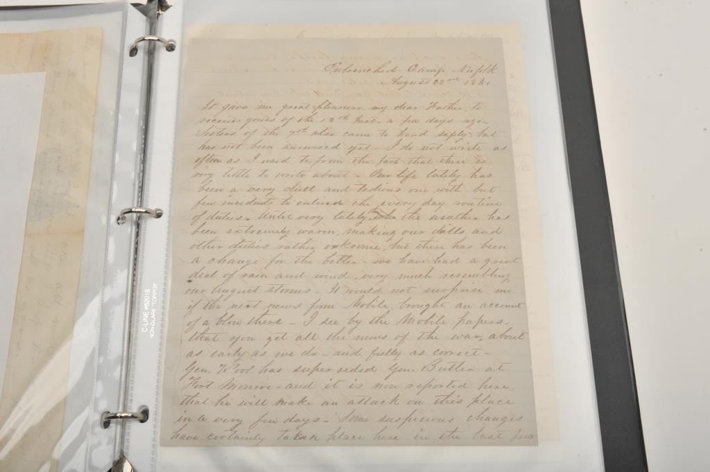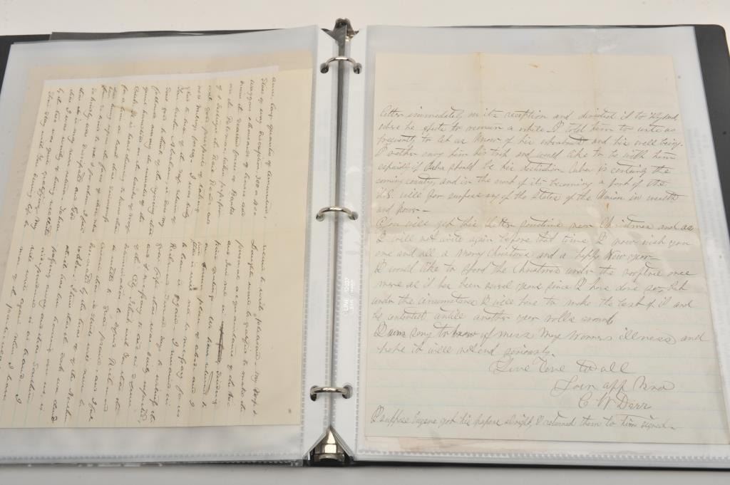 Three ring binder lot of Civil War documents and letters, mostly translated; great general information, battles, etc.; a collection-in-one! Est.: $300-$600.