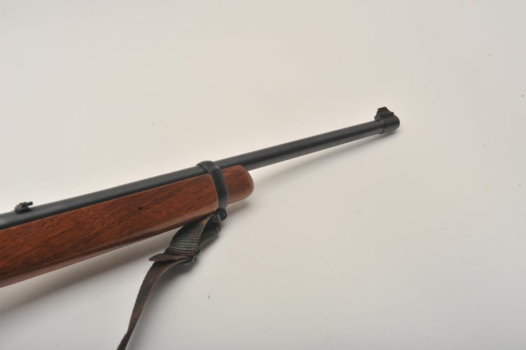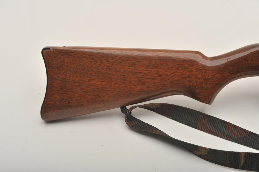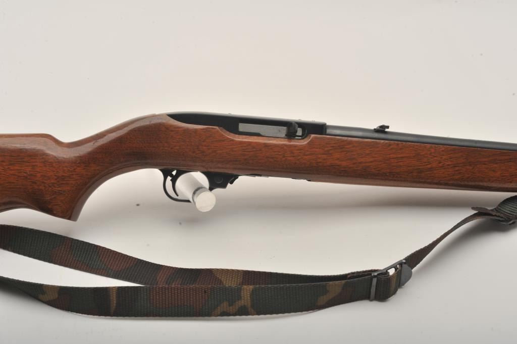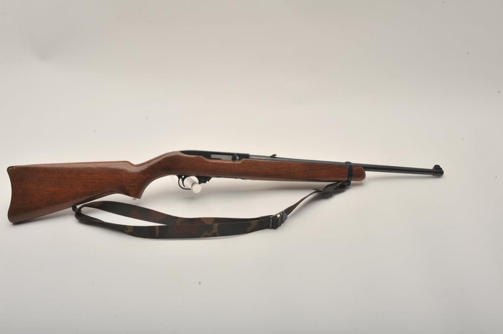 Early Ruger Model 10/22 semi-automatic carbine, .22LR caliber, 18.5” barrel, black finish, wood stock, camo woven sling, S/N 3089, in overall very good to fine condition displaying majority of original finish, verygood bore, crisp action and markings, near fine stock. (Modern). Est.: $175-$350.