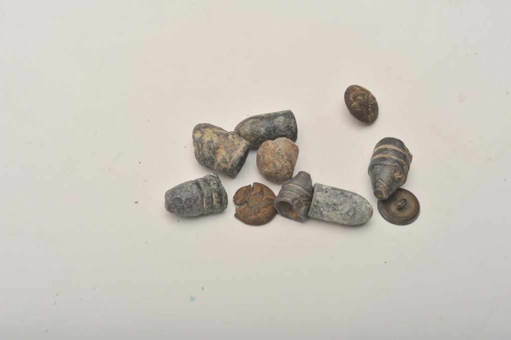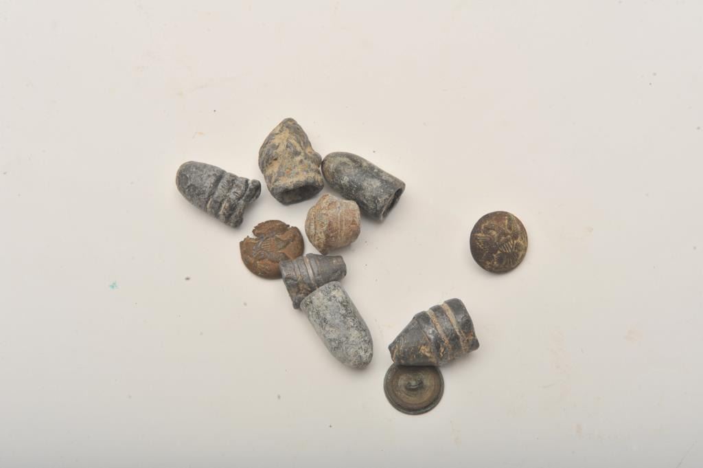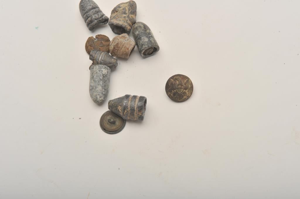 Small lot of Civil War era dug ups including lead bullets and brass buttons; per consignor, collected in Gettysburg. Est.: $50-$100.