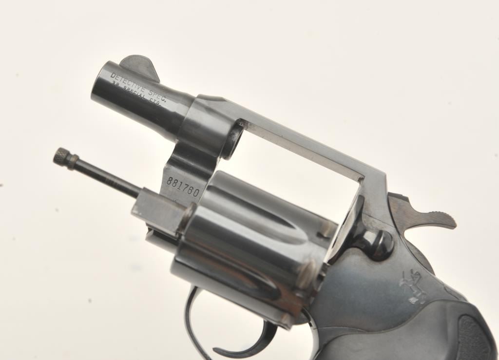 Colt Detective Special DA revolver, .38 Special caliber, 2” barrel, blued finish, checkered hard rubber Pachmayr grips, S/N 881760, in overall very good to near fine condition with majority of original finish,crisp action, sharp markings and very good + bore. (Modern/PPT). Est.: $300-$600.