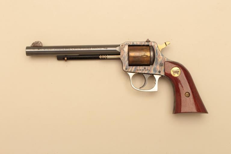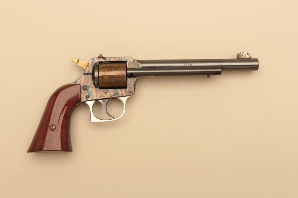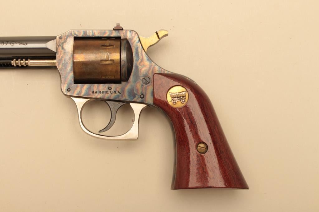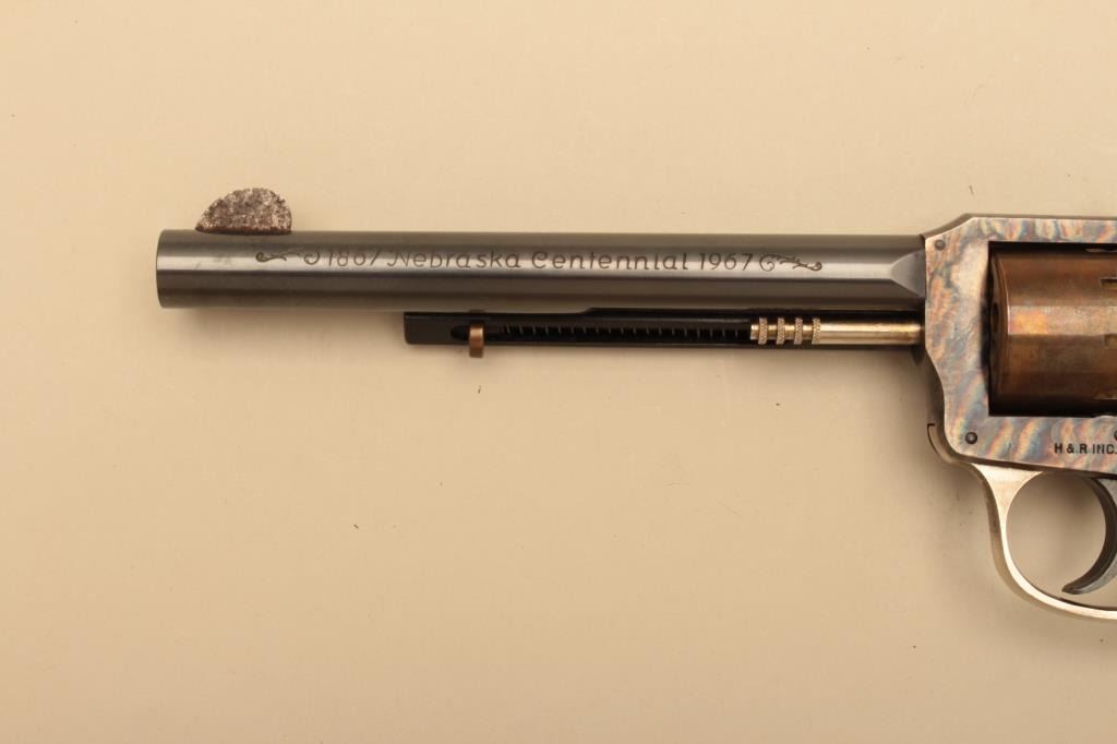 1867 Nebraska Centennial H&R revolver in .22 caliber with fancy finish and Conestoga wagon in the grip, S/N NC18. Fine to excellent condition with erosion on the front sight from case. Very limited edition. (C&R/No PPT) Est.: $250-$500