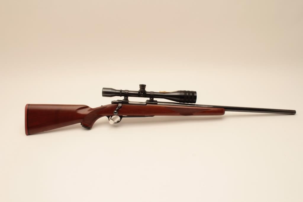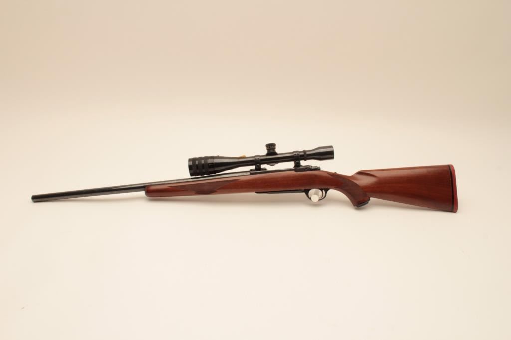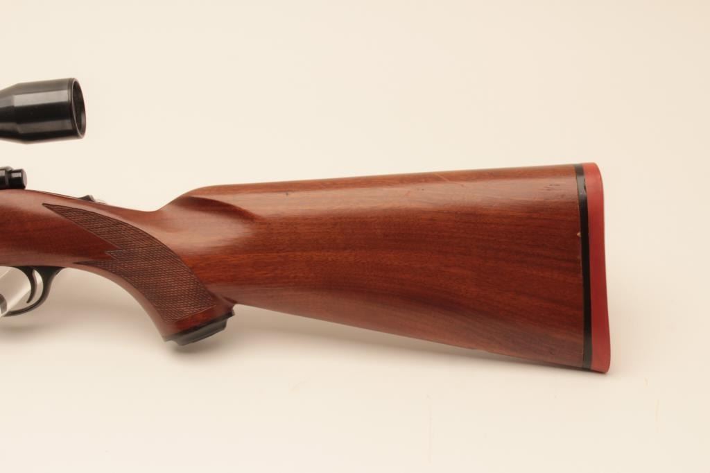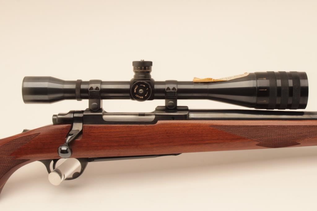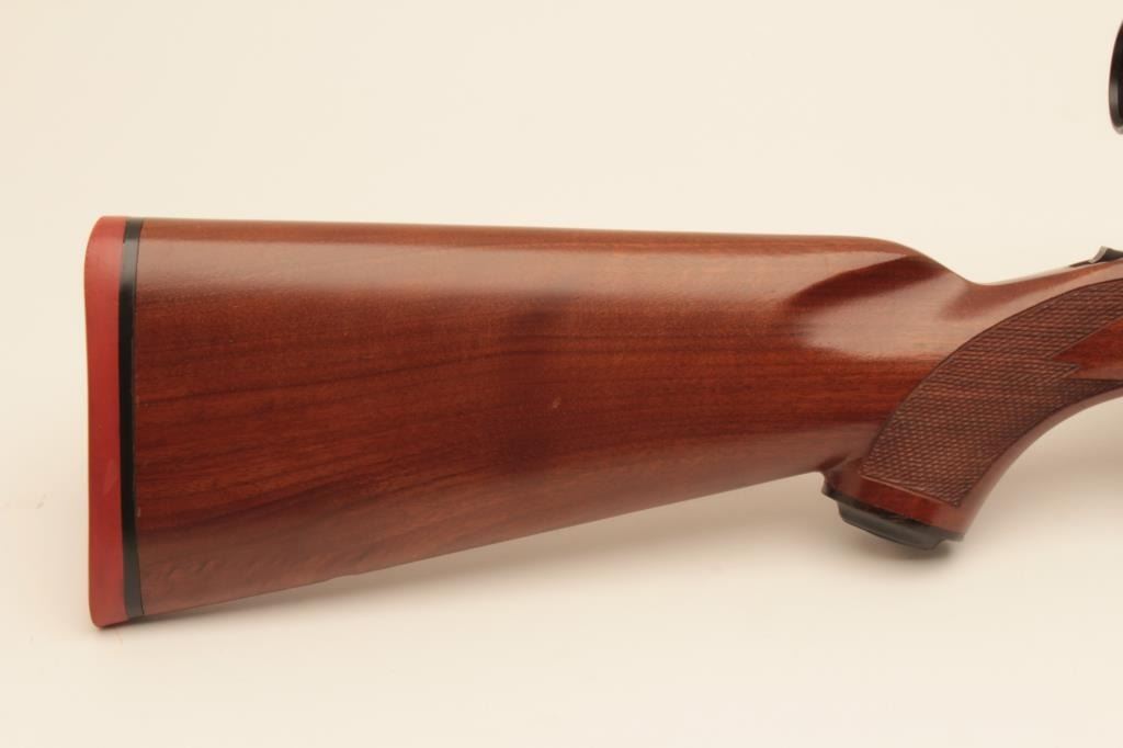 Ruger M77 factory 24” heavy barrel bolt action rifle in .308 Win caliber mounted with Micro Trac Weaver scope on factory mounts. “Made in 200 year of American Liberty” marking (1976). Ruger recoil pad. Fine toexcellent used condition. 95%-98% overall with some minor evidence of storage and use. S/N 72-08339. (Modern) Est.: $600-$1200