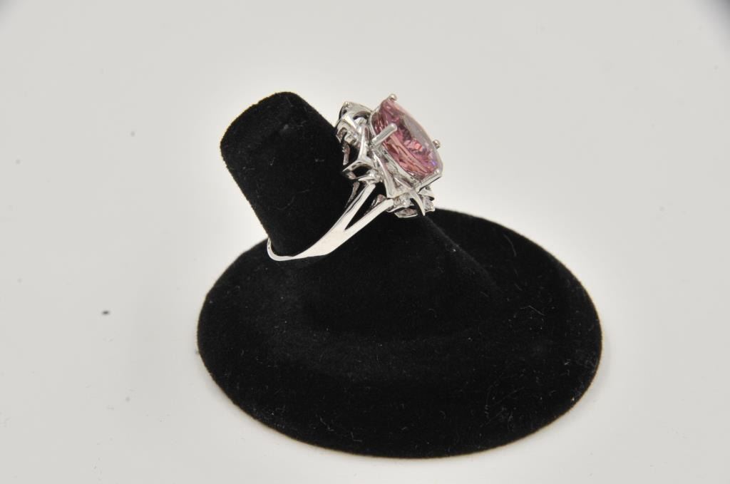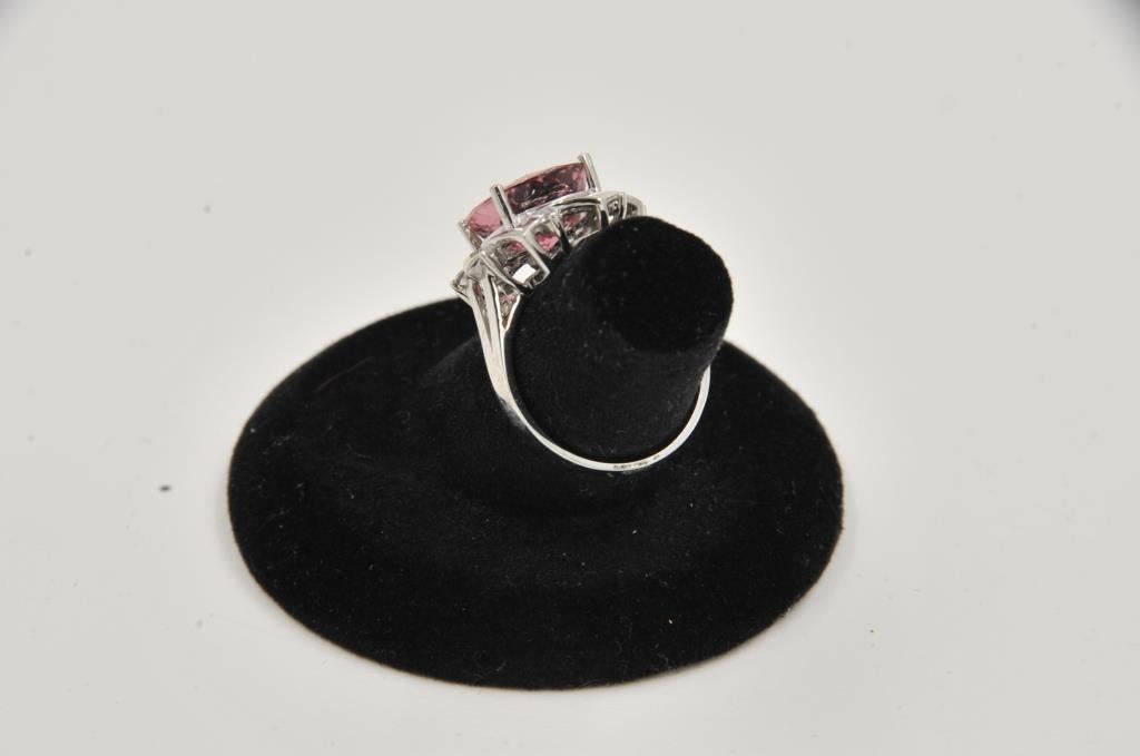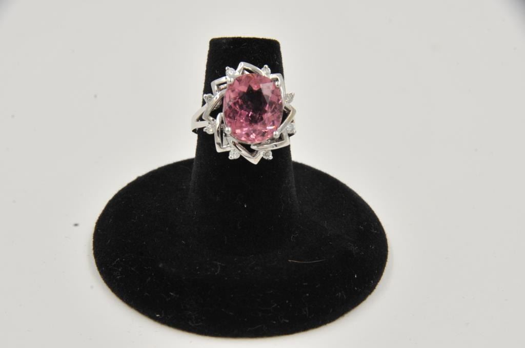 One beautiful ladies ring made in 14k white gold set with a 5ct hot pink oval cut tourmaline and diamonds Est:$1500-2000