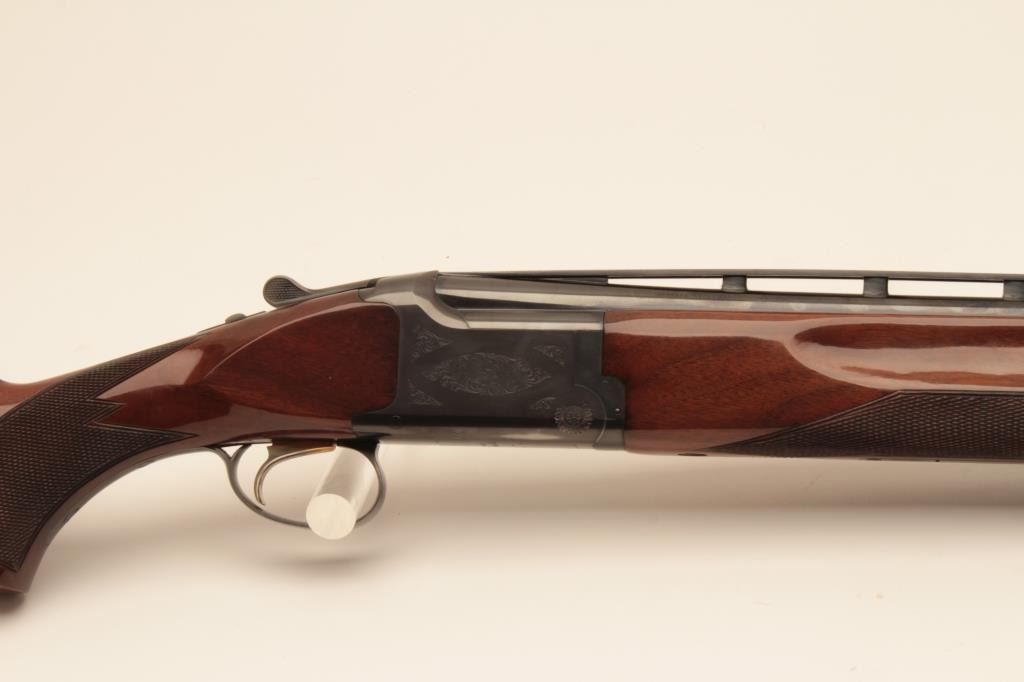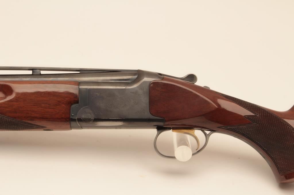Browning Citori 12GA Over/Under shotgun with 28” barrels choked skeet and skeet with single trigger and auto ejectors. Measures 14 ¼” to the end of the rubber pad. Very good plus to almost fine used condition. 90%-95%original blue. Some minor use marks to finish on wood. Excellent bores. (Modern) Est.: $600-$1200